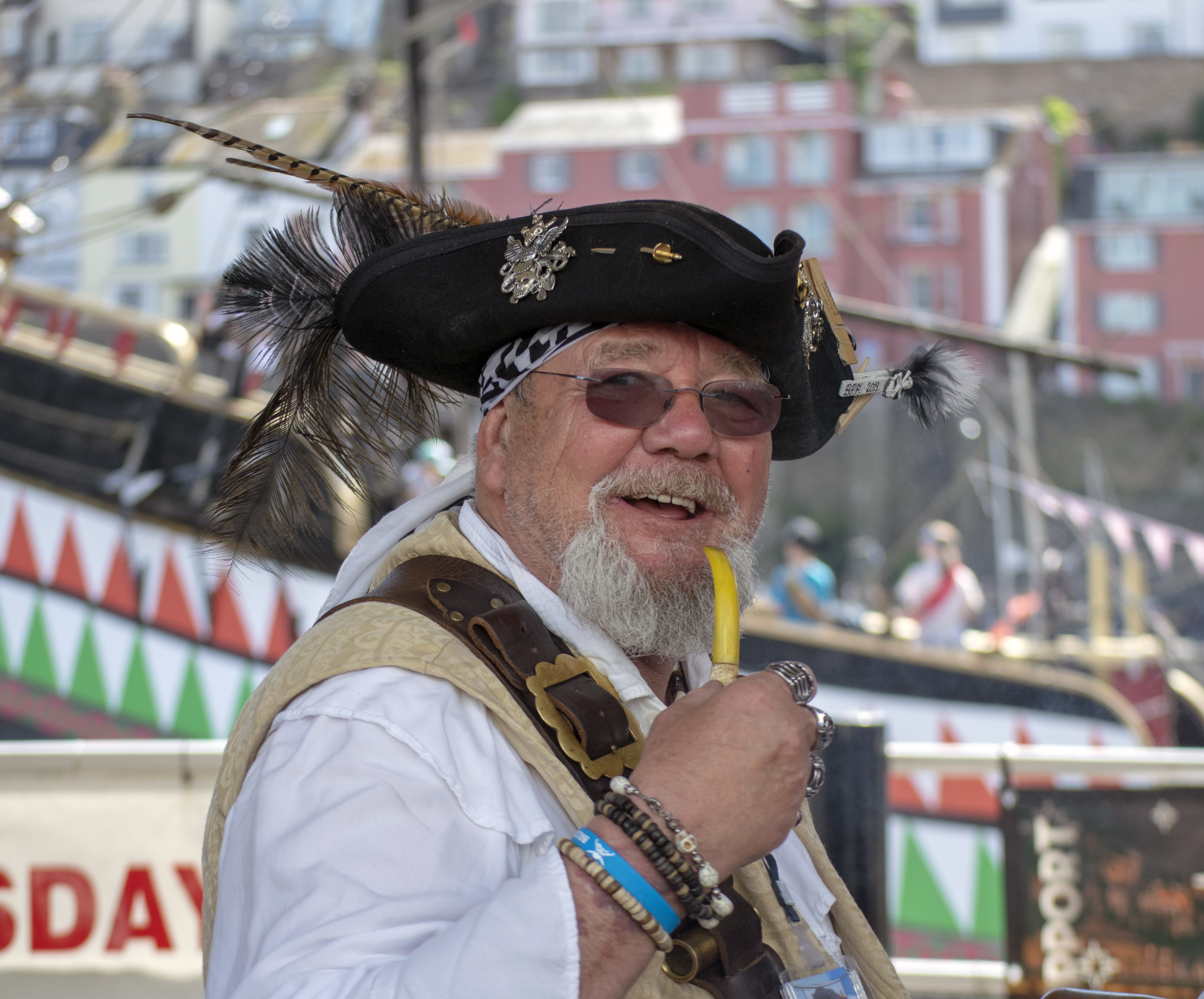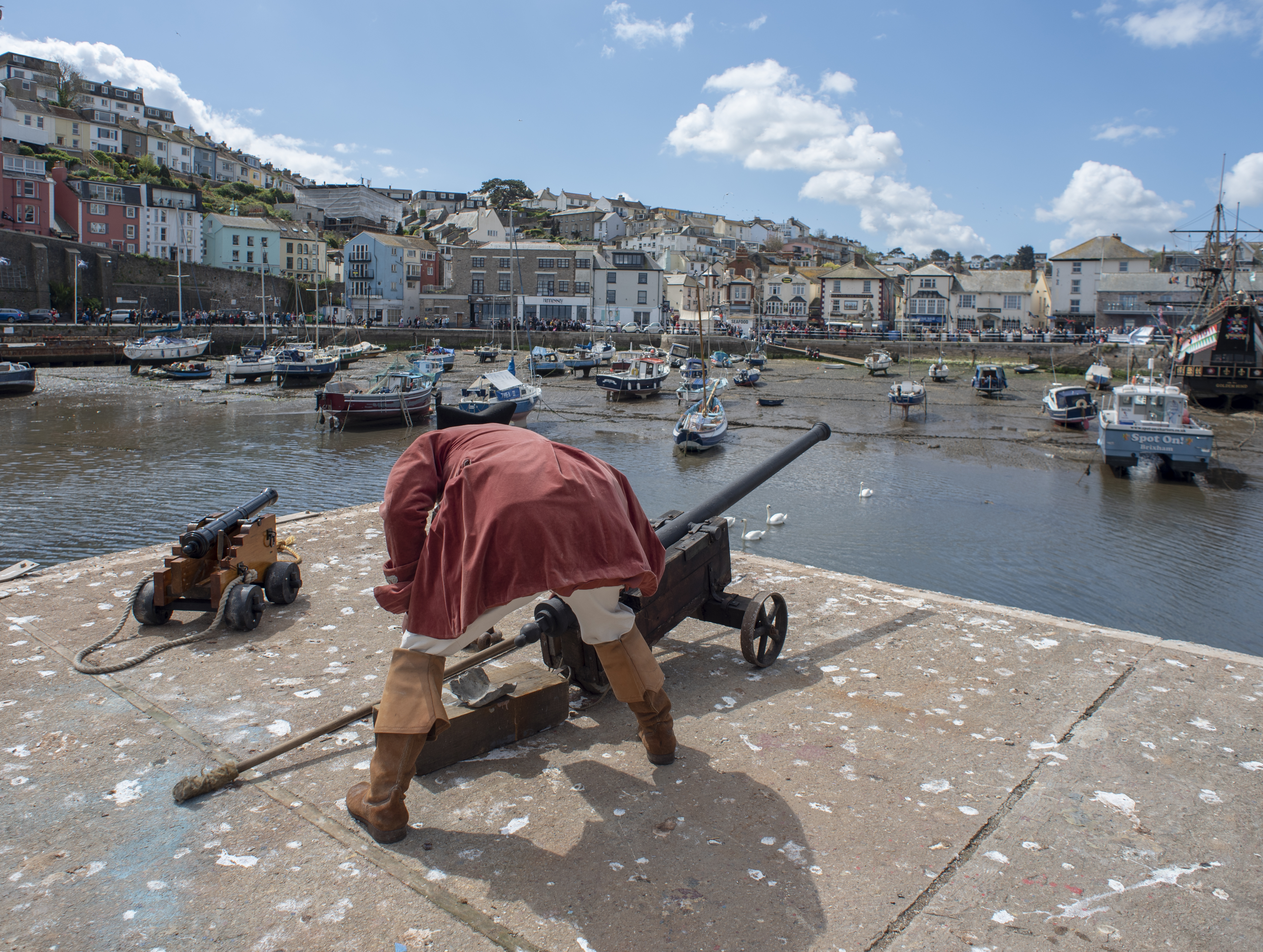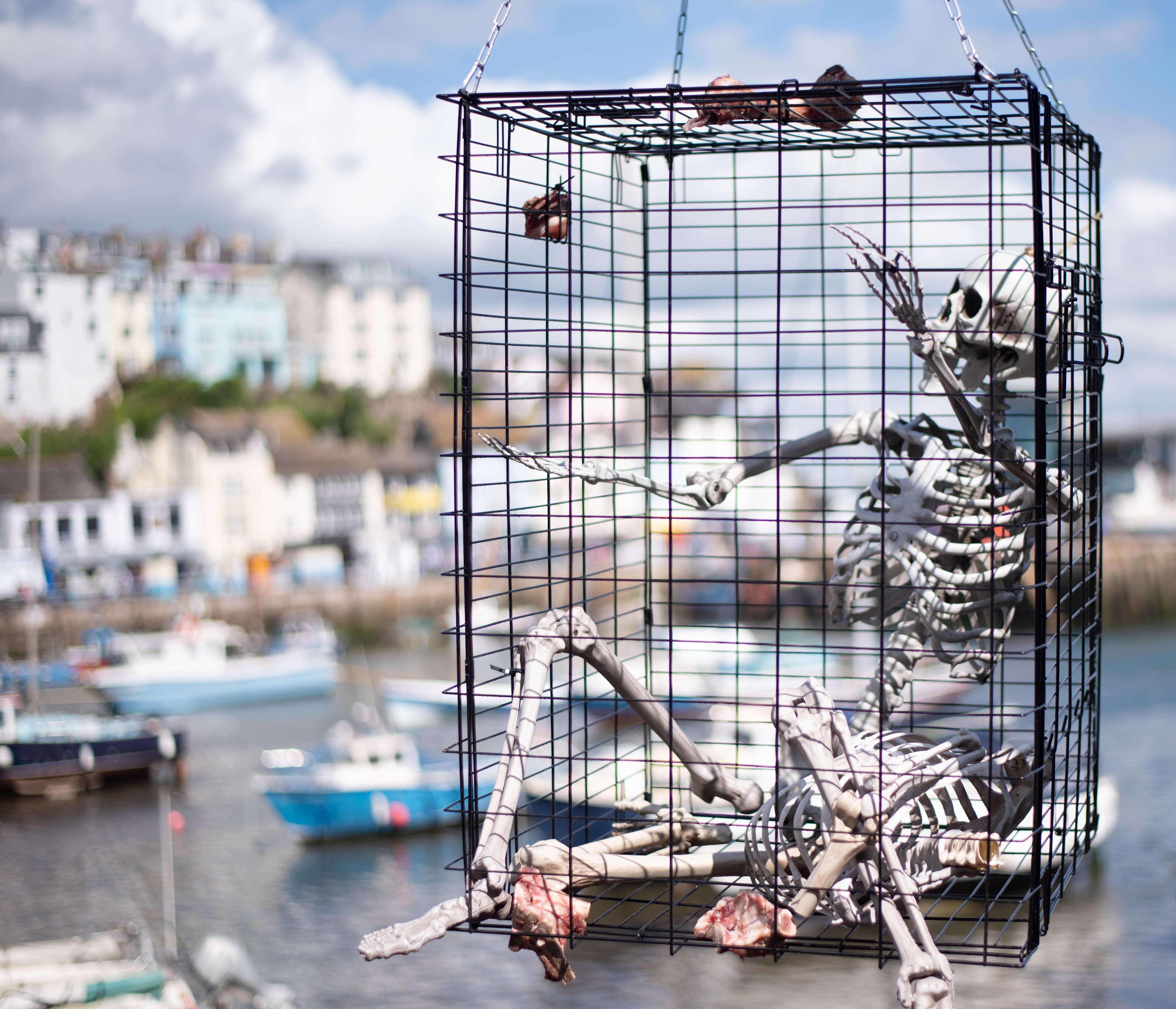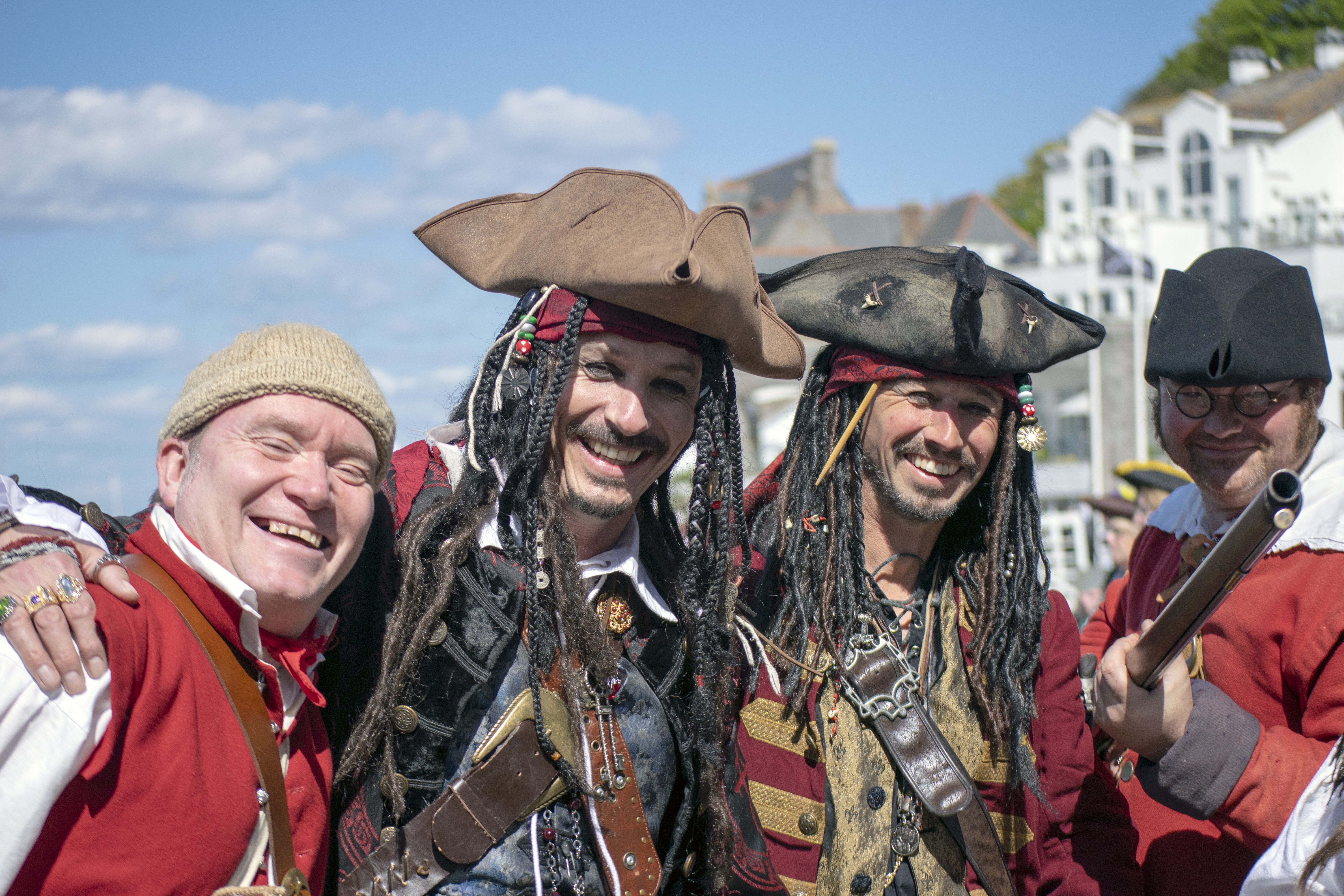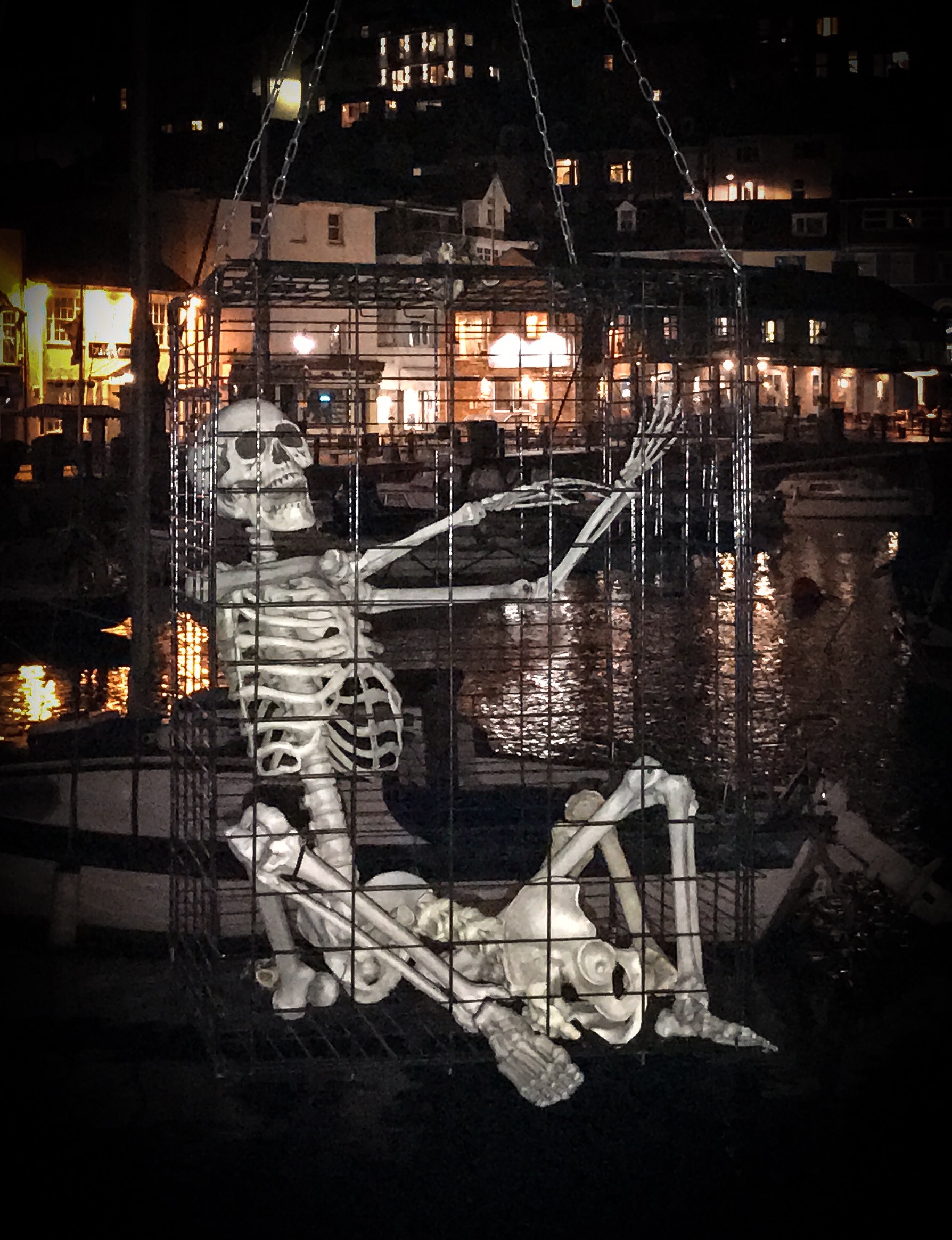 Here we are again this year with another round up in pictures of a fantastic 2019 Brixham Pirate Festival! However it was looking touch and go for a while when Bob and Brenda the Festivals’s very own pirate skeletons decided to go on strike for constantly having to work ‘out of hours’. Yes it’s true in fact, indeed here’s Bob starting his shift early Saturday morning and still working late into the evening Monday night. And all without a lunch break!