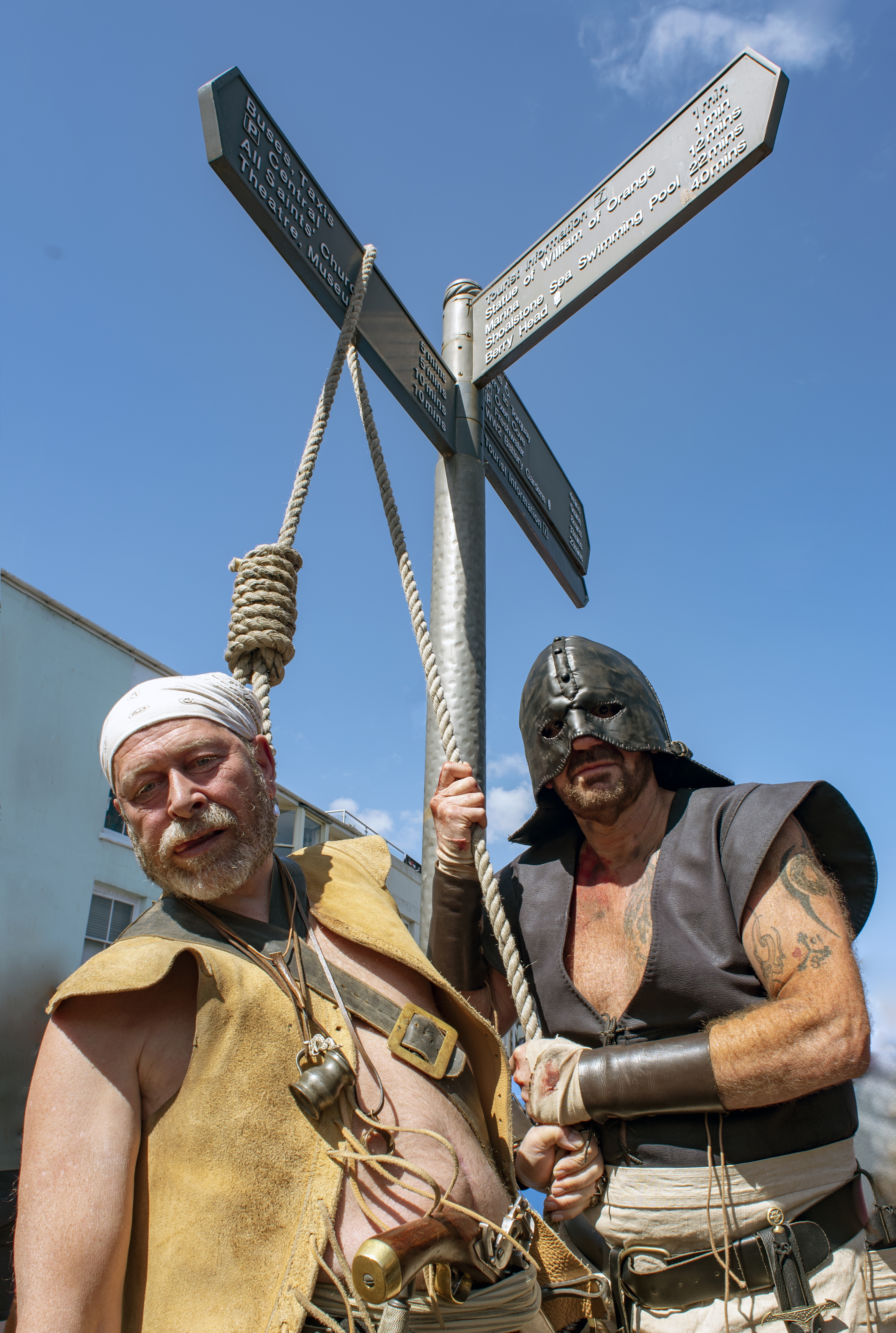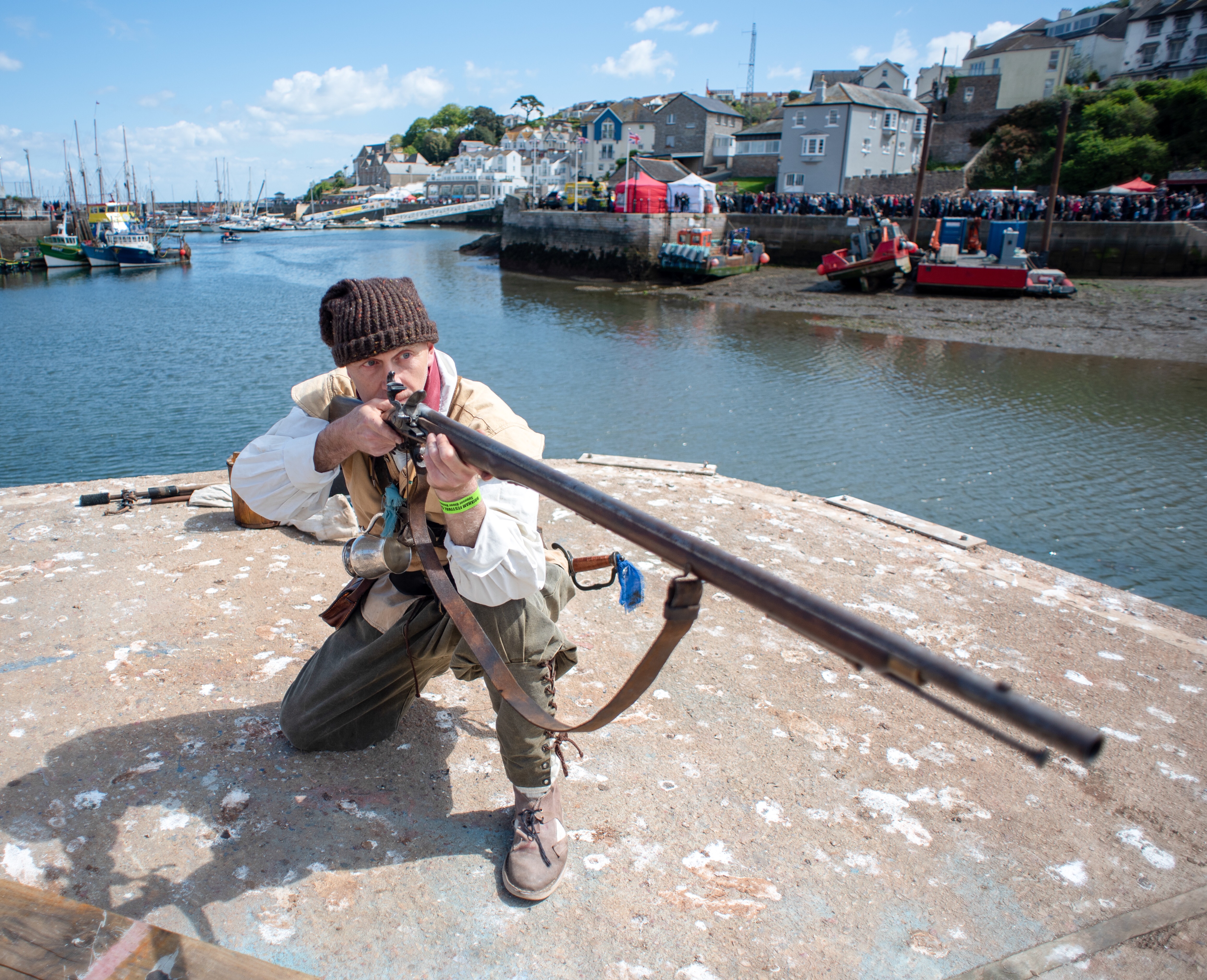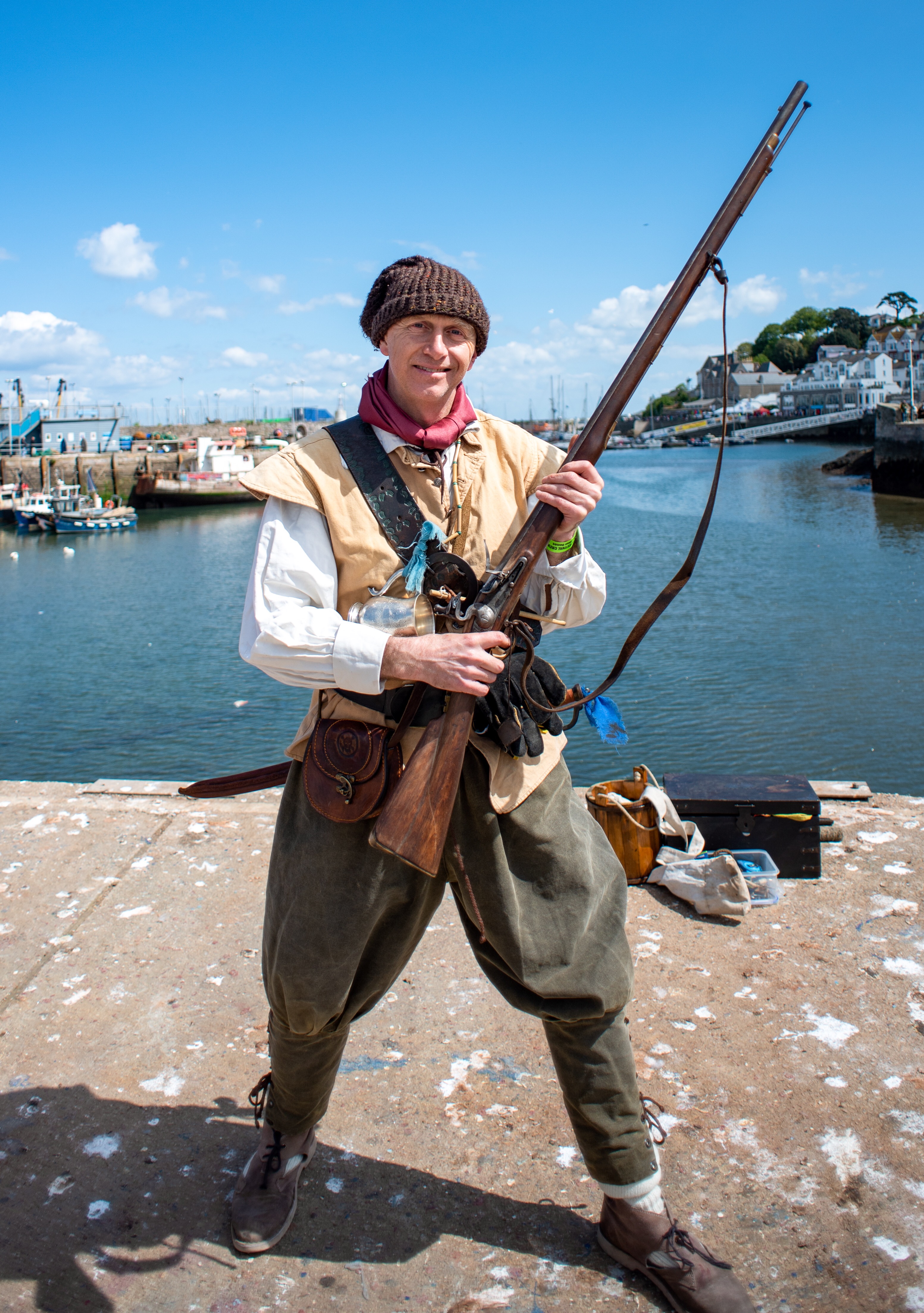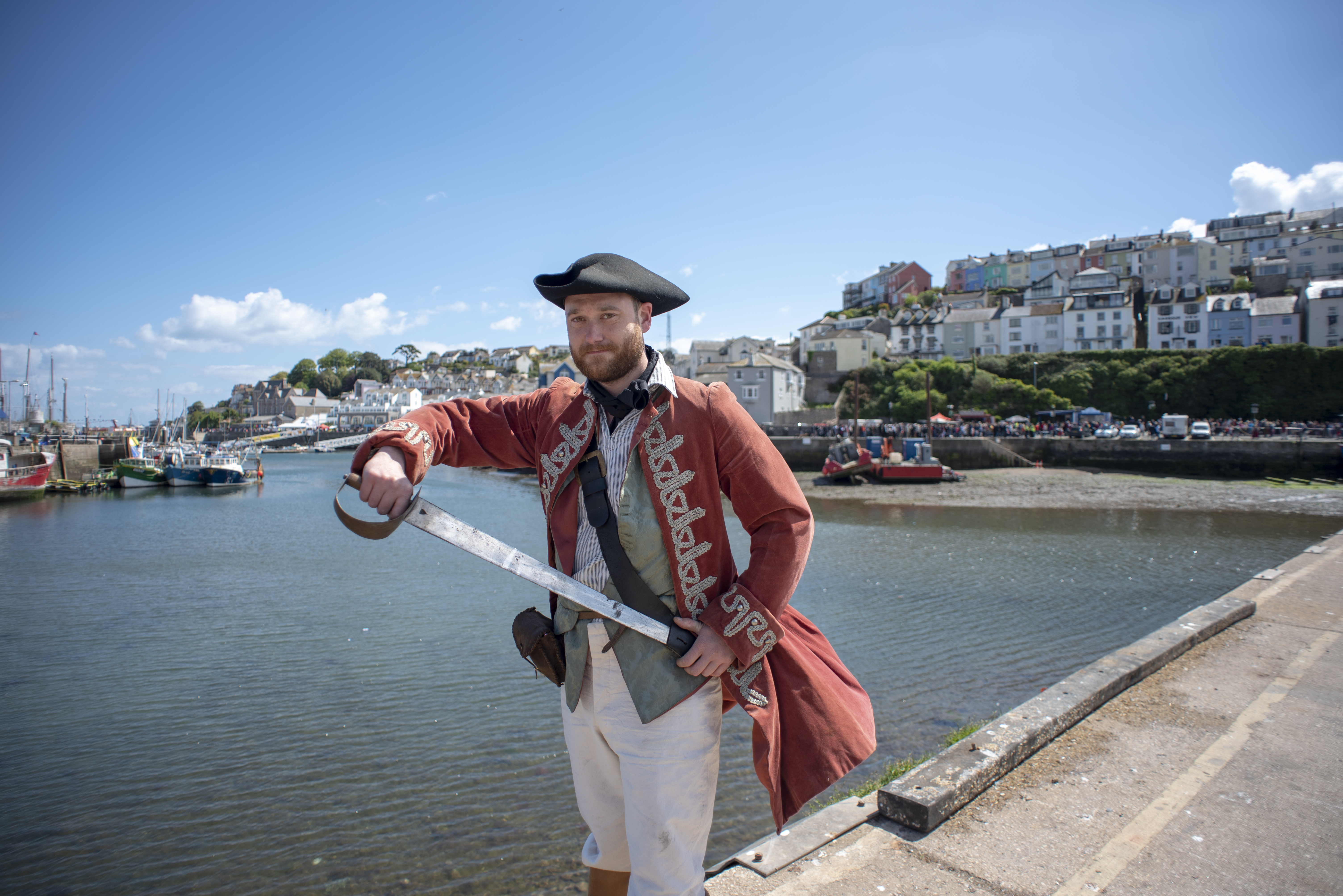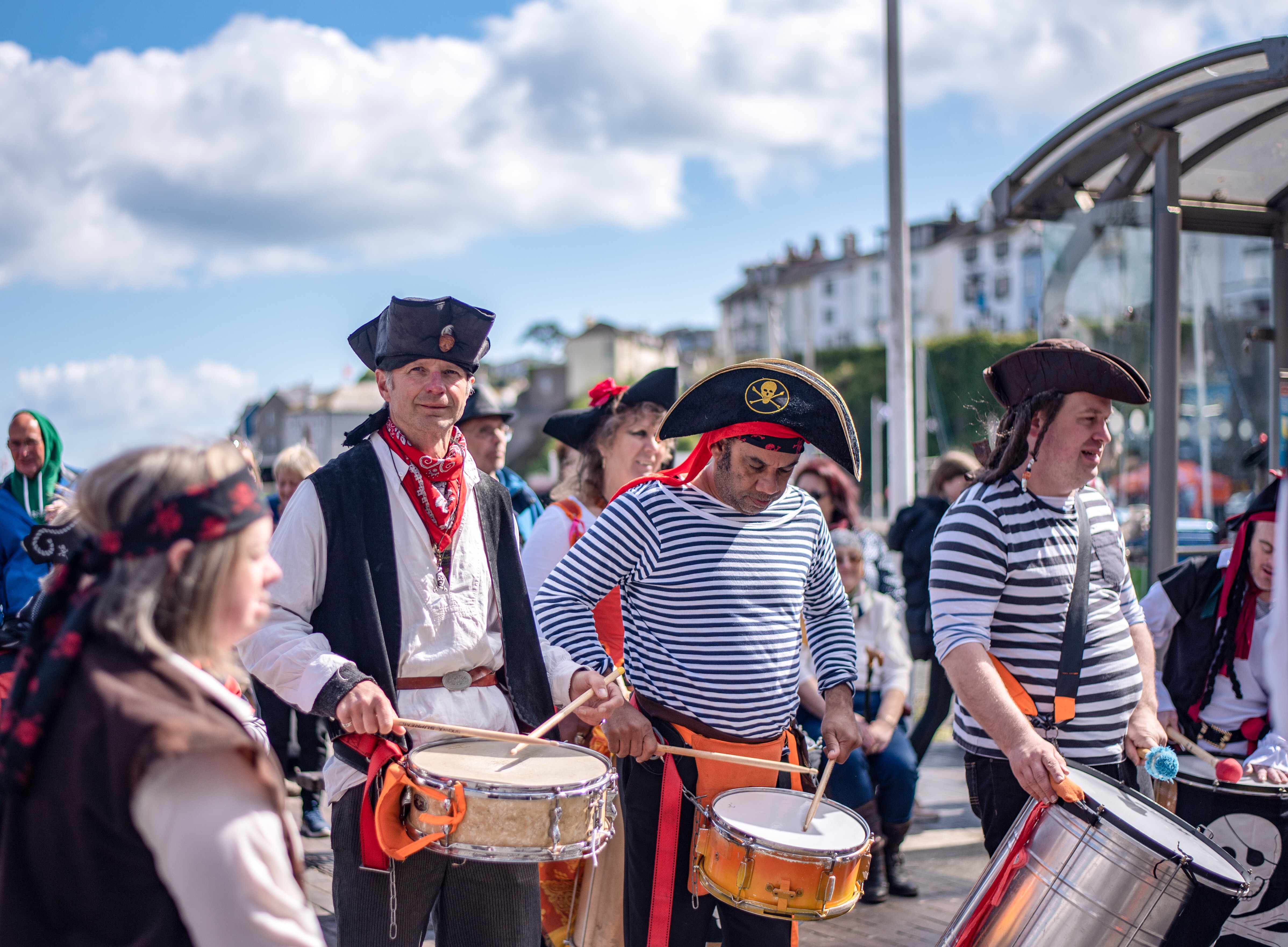Here we are again this year with another round up in pictures of a fantastic 2019 Brixham Pirate Festival! However it was looking touch and go for a while when Bob and Brenda the Festivals’s very own pirate skeletons decided to go on strike for constantly having to work ‘out of hours’. Yes it’s true in fact, indeed here’s Bob starting his shift early Saturday morning and still working late into the evening Monday night. And all without a lunch break!