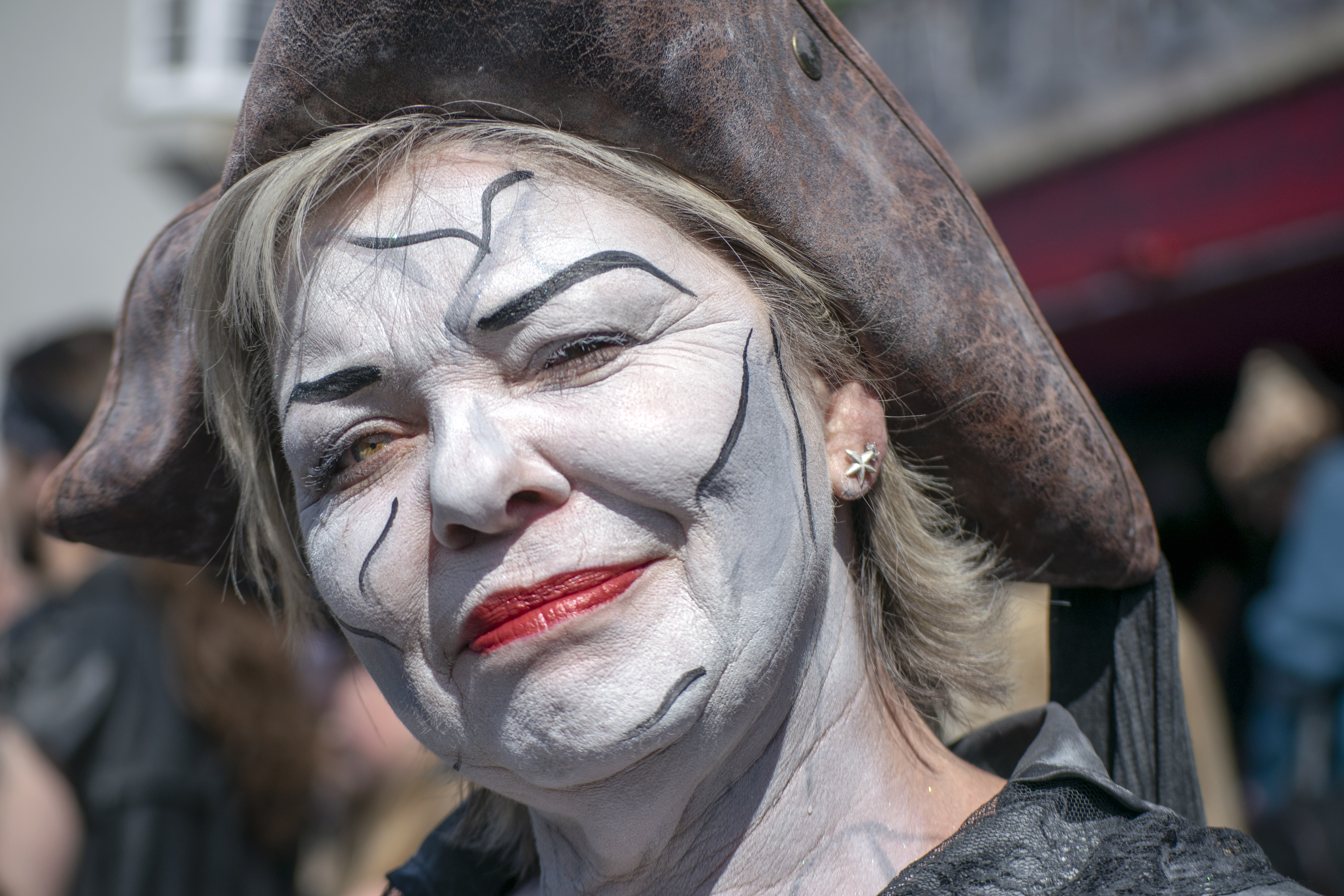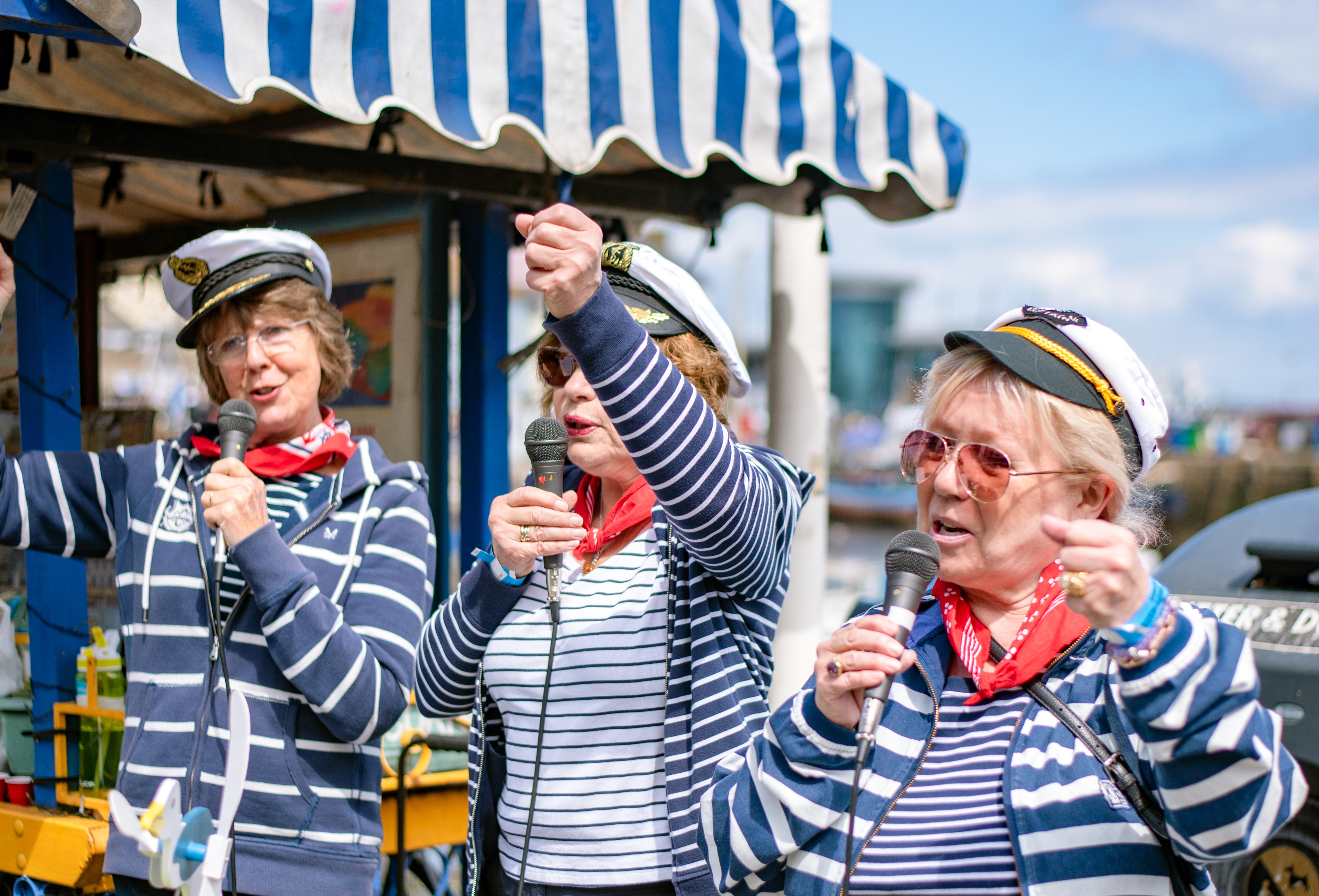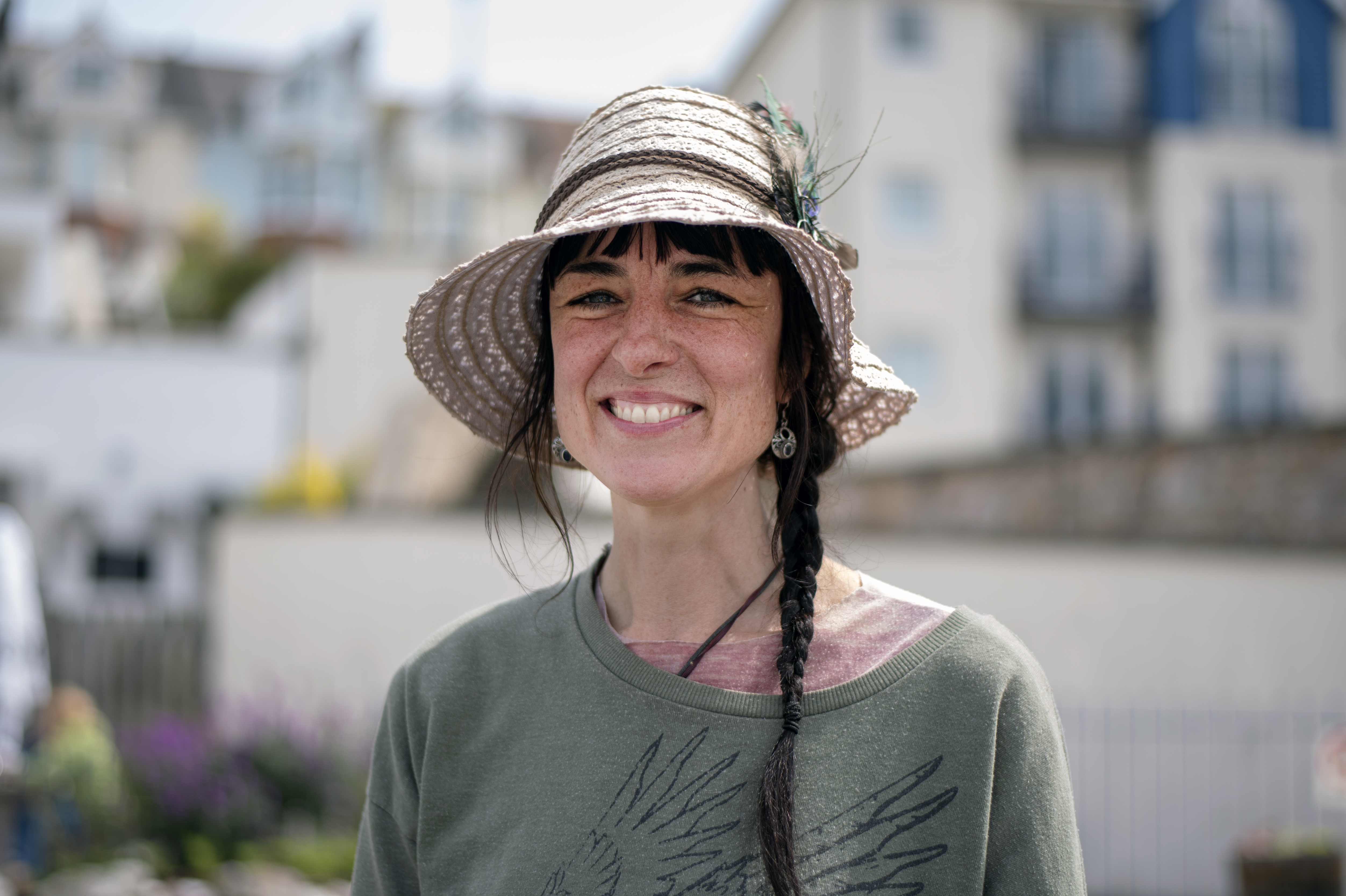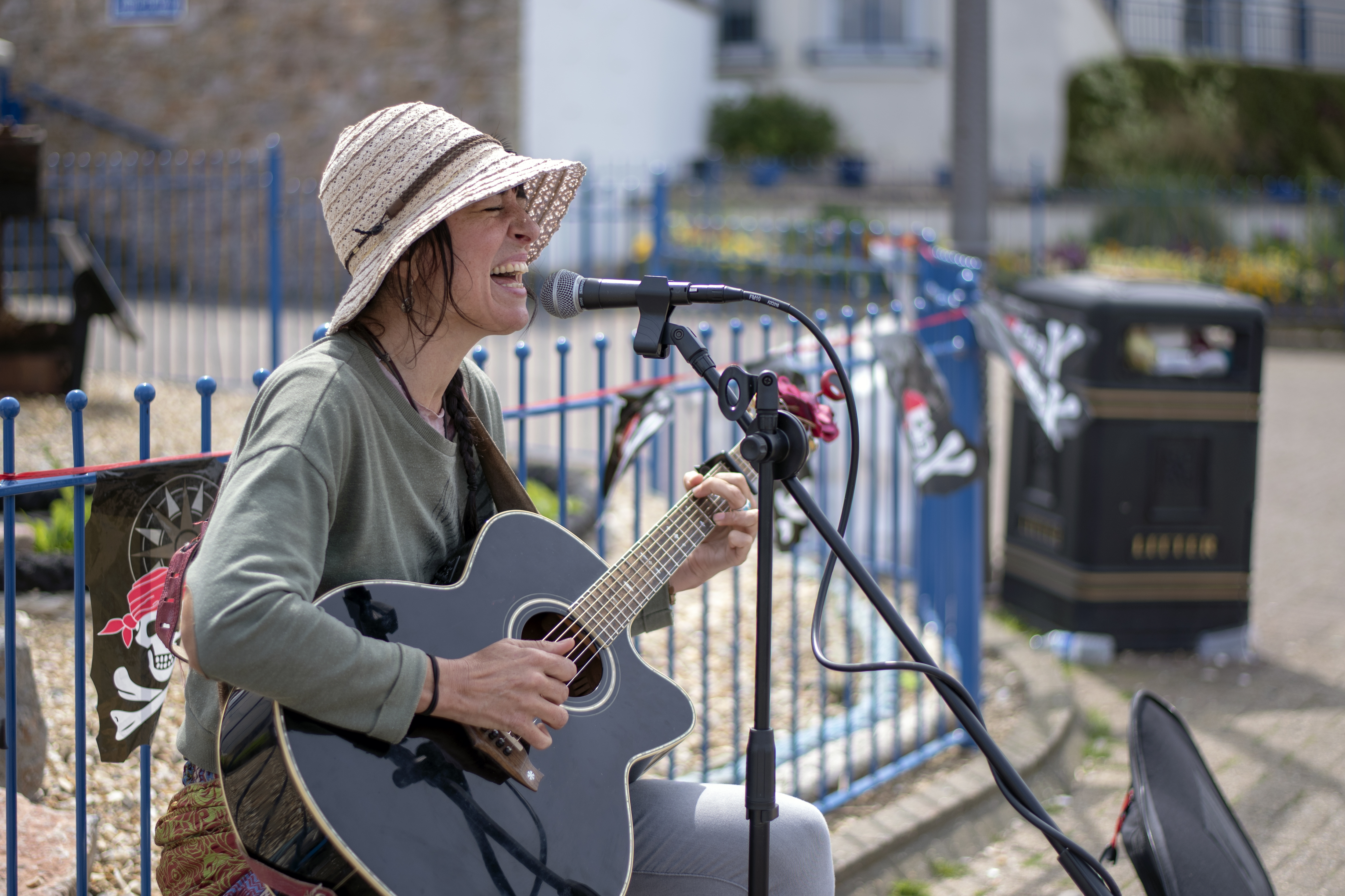 This lady was spotted singing down near the harbour. But who is under her hat?