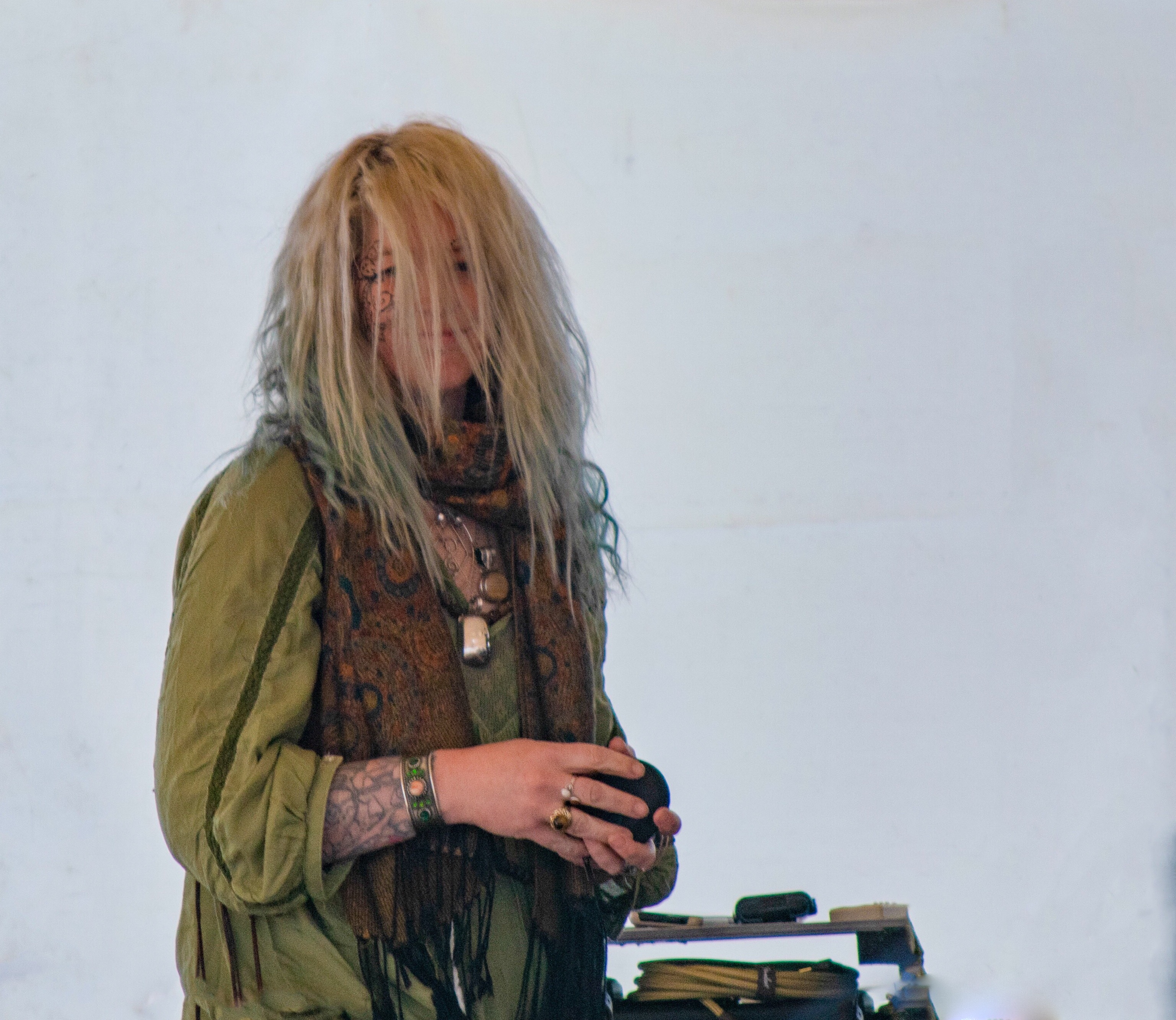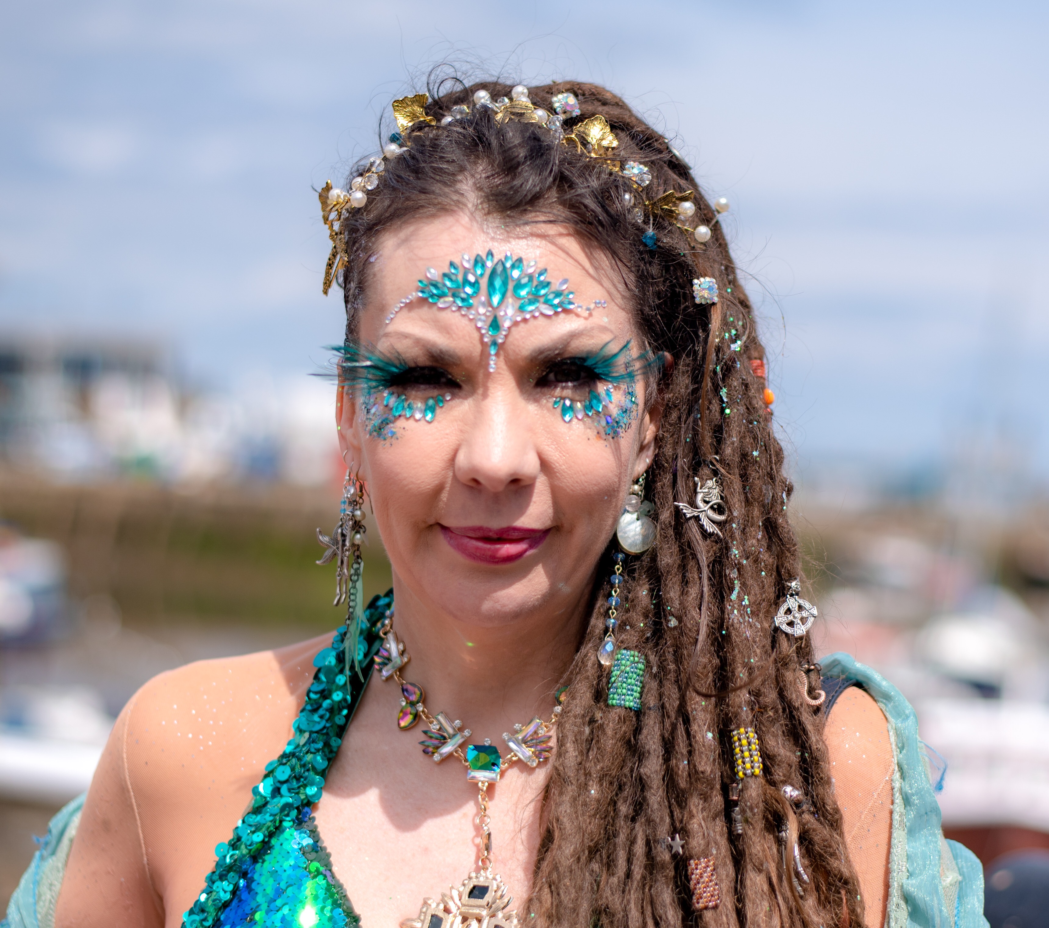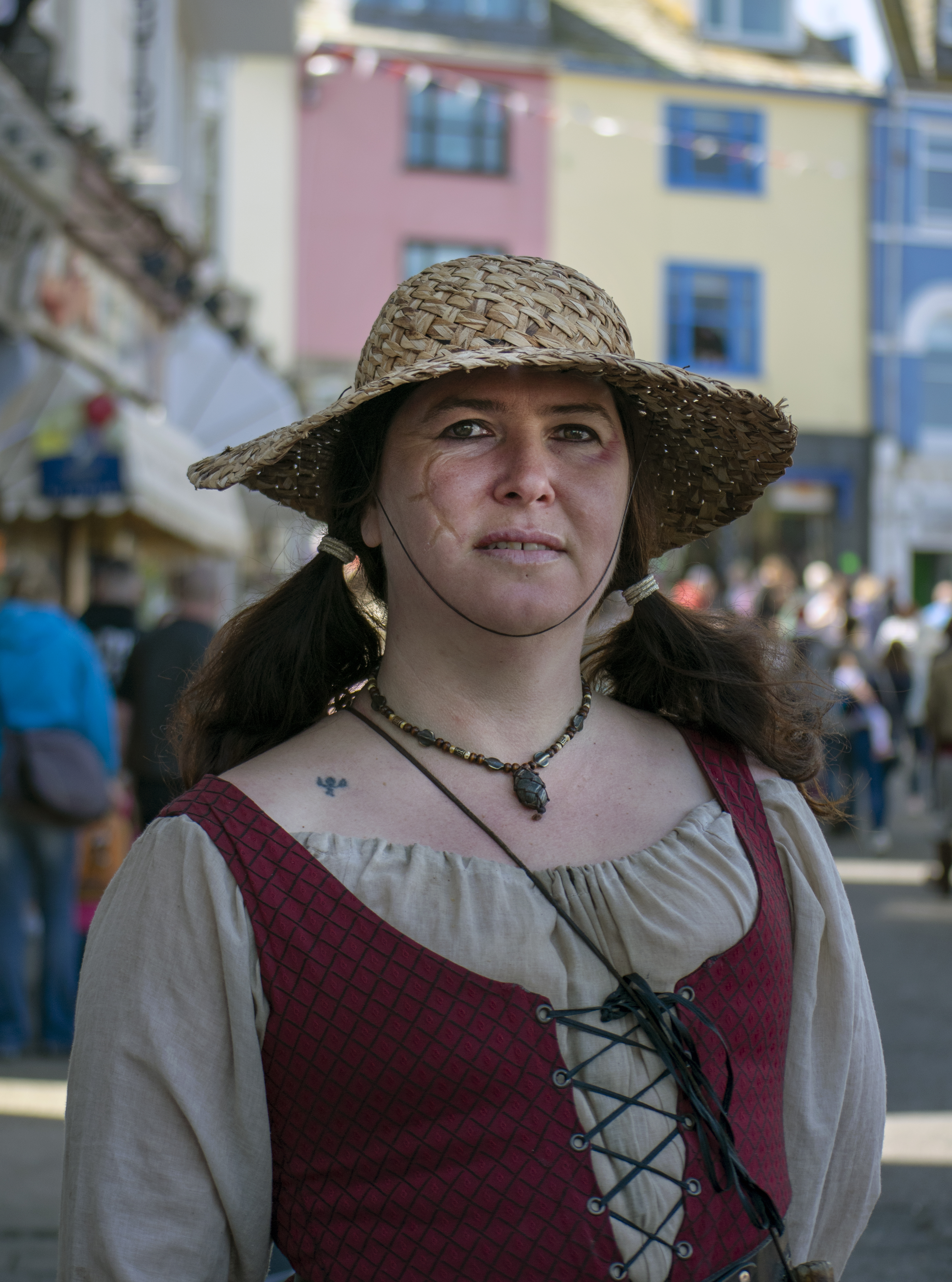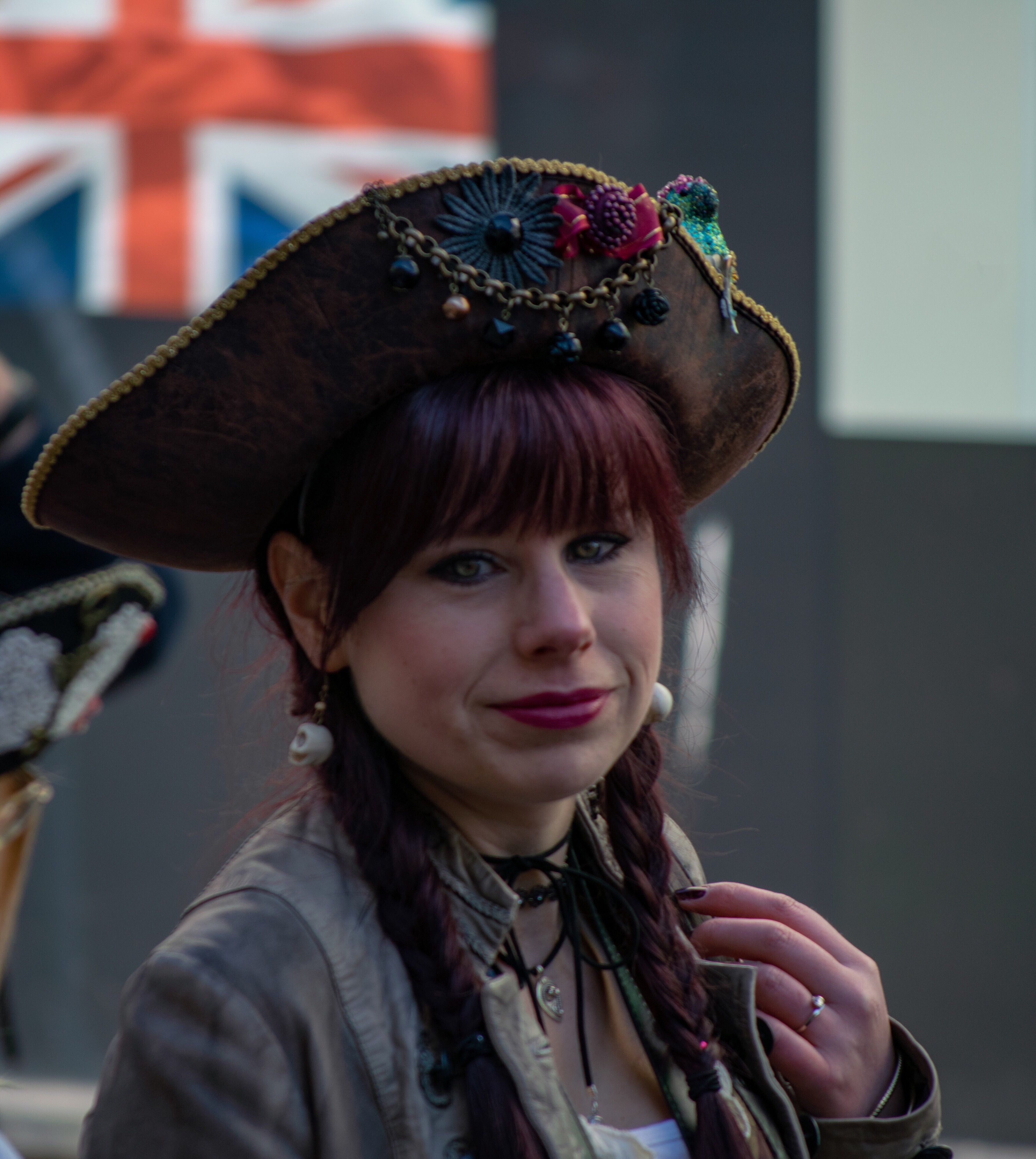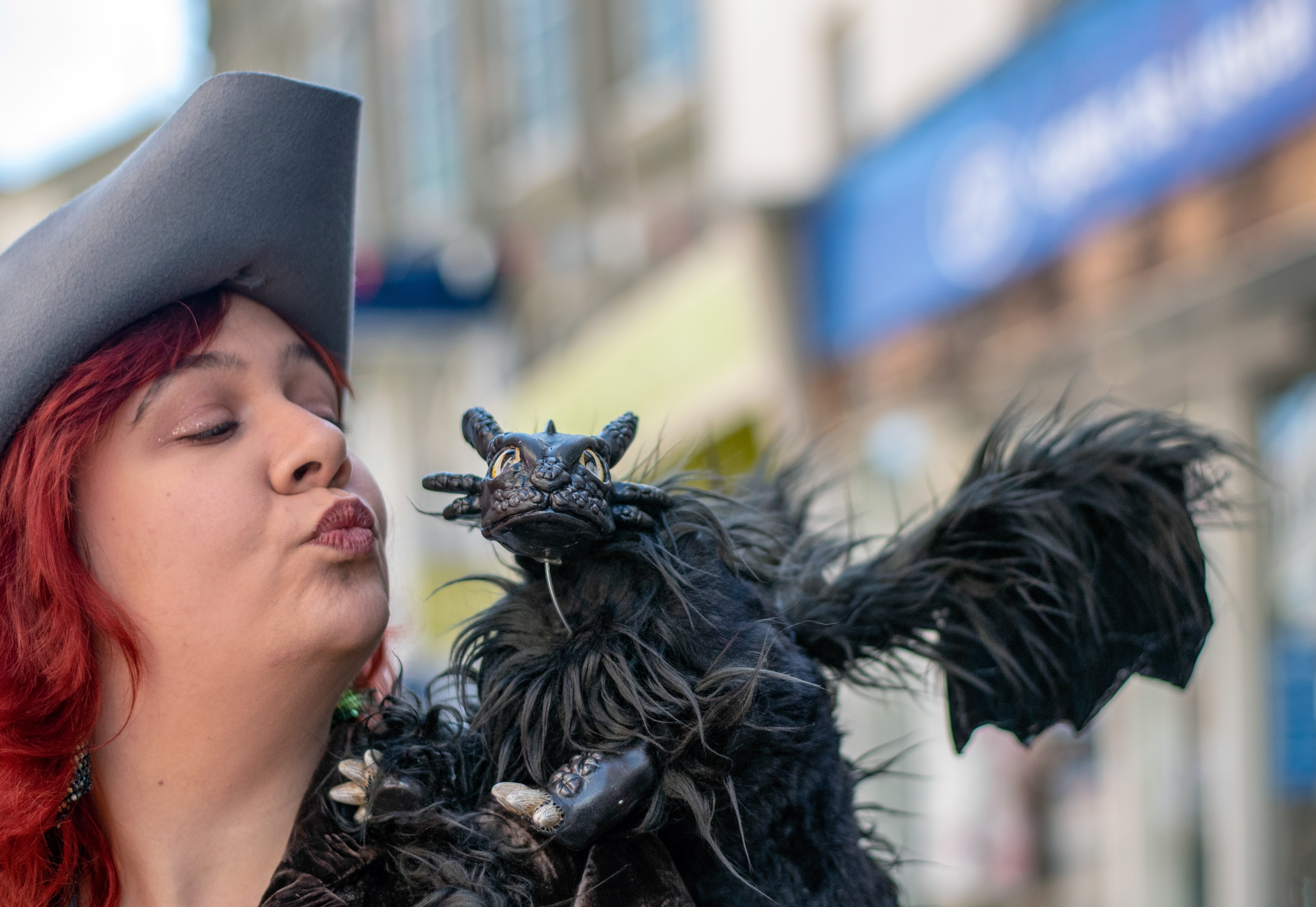 This lady was spotted singing down near the harbour. But who is under her hat?