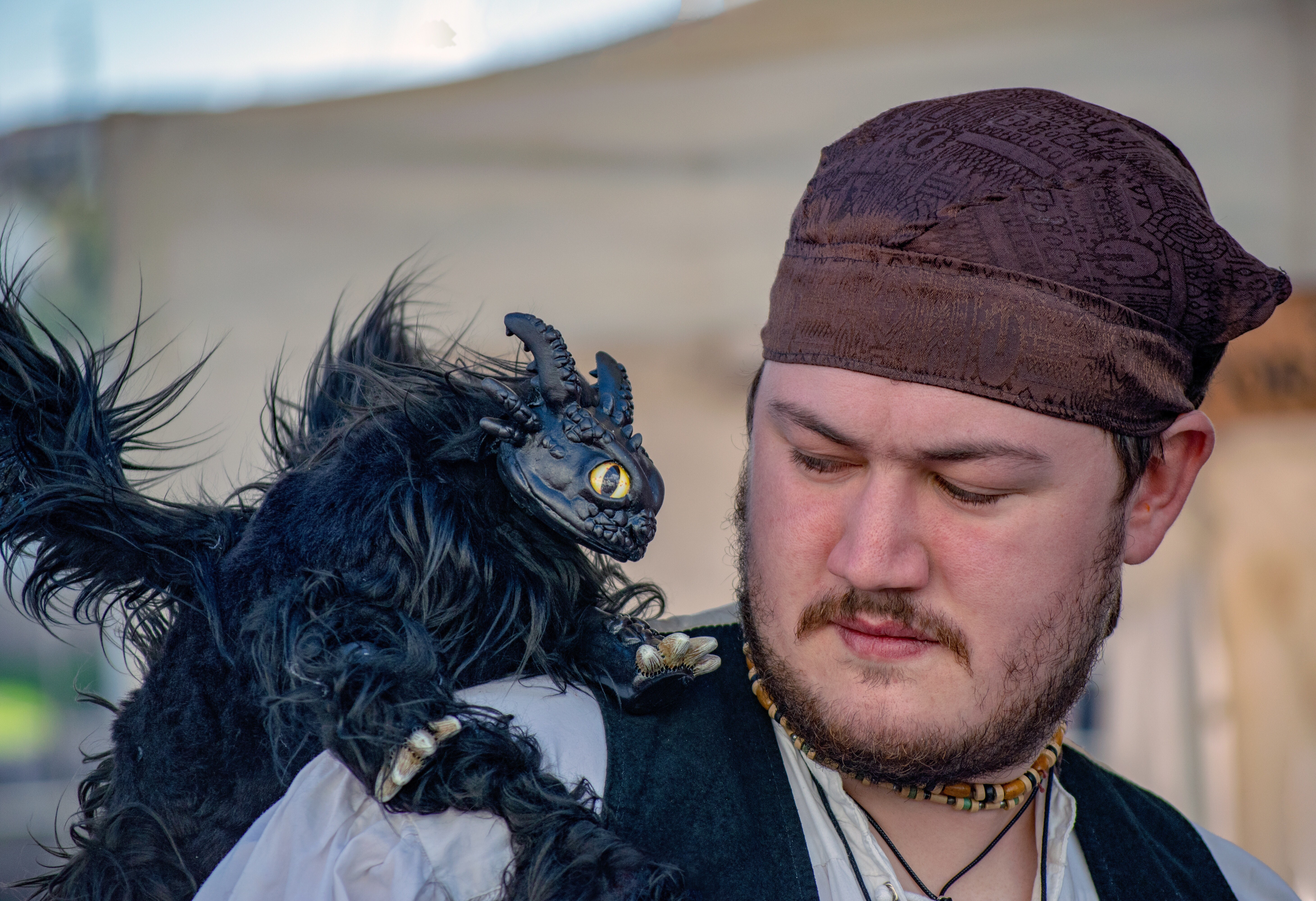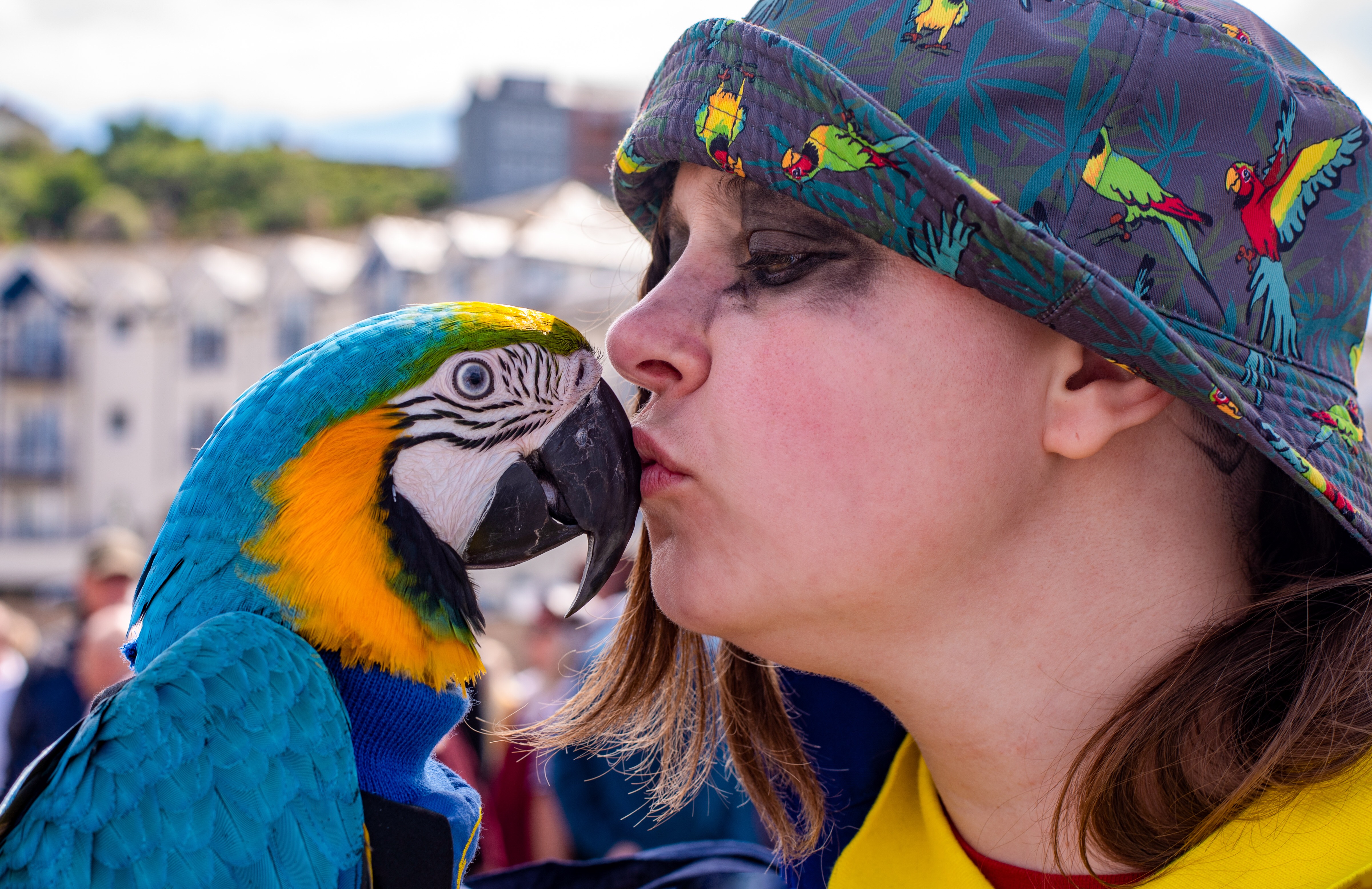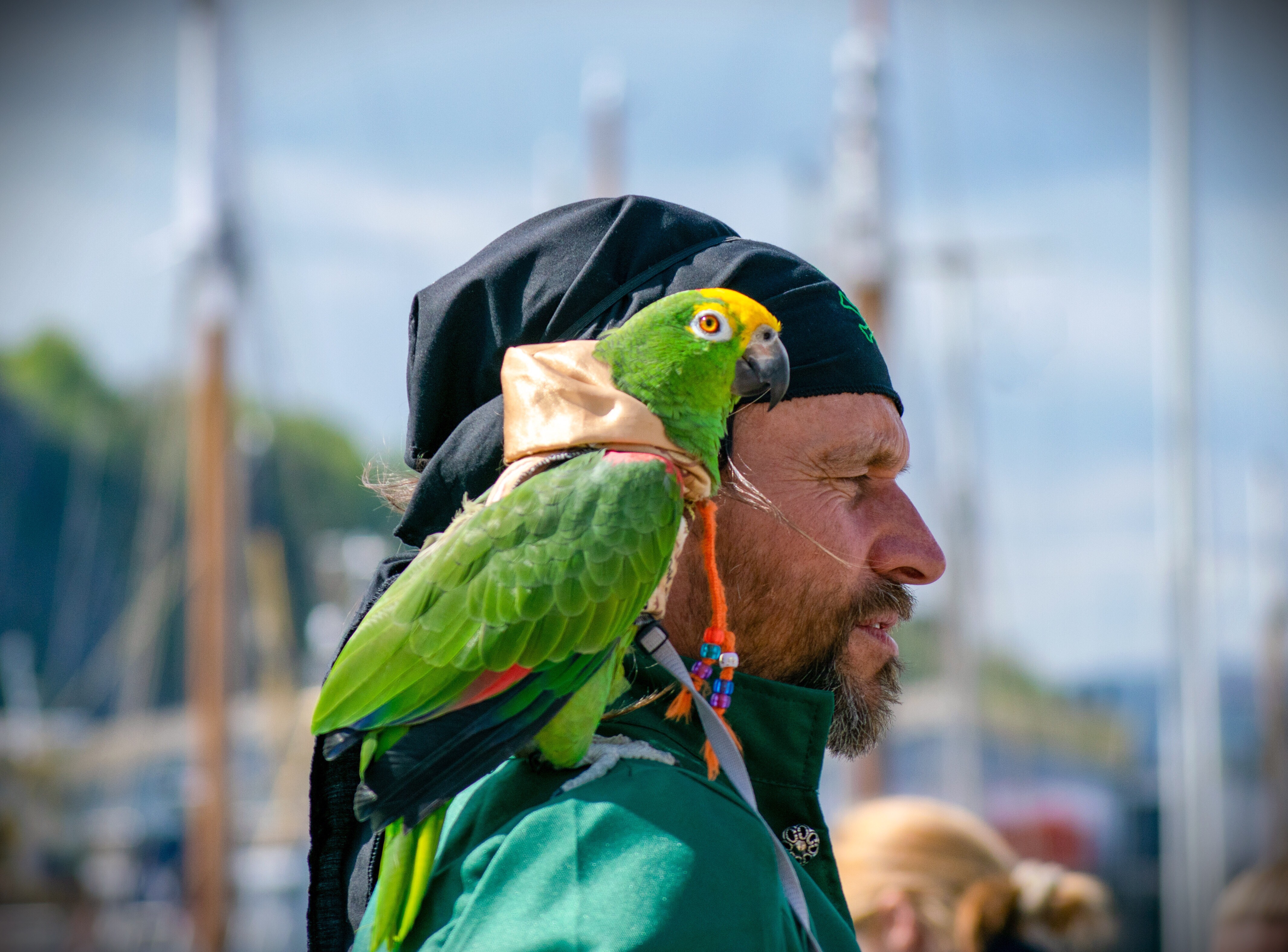 These guys were really cool. Each day of the festival they had a change of clothes that matched their parrots outfits - really neat!