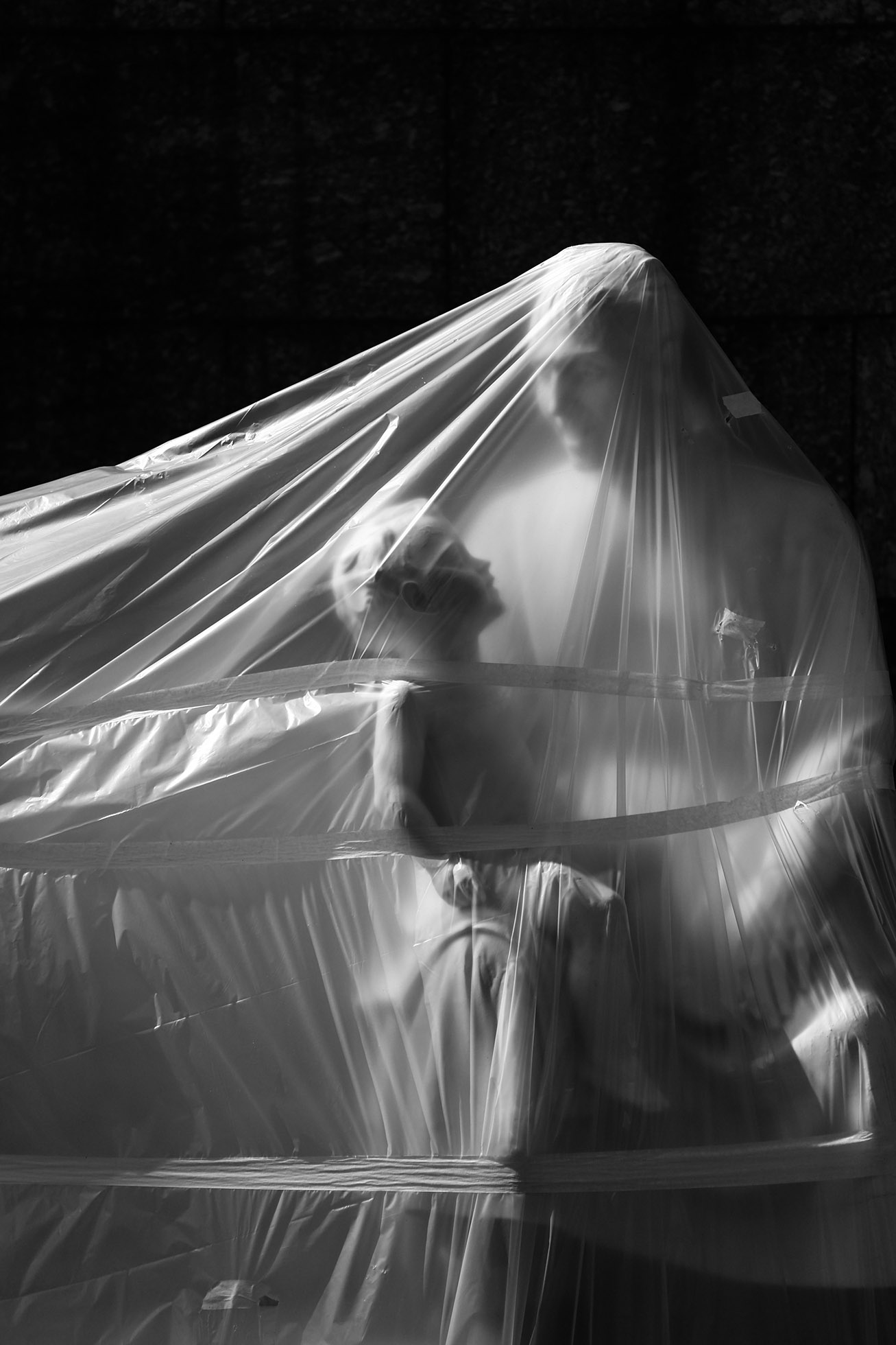 Every detail capture my eyes, even a wrapped statue waiting for renovations.