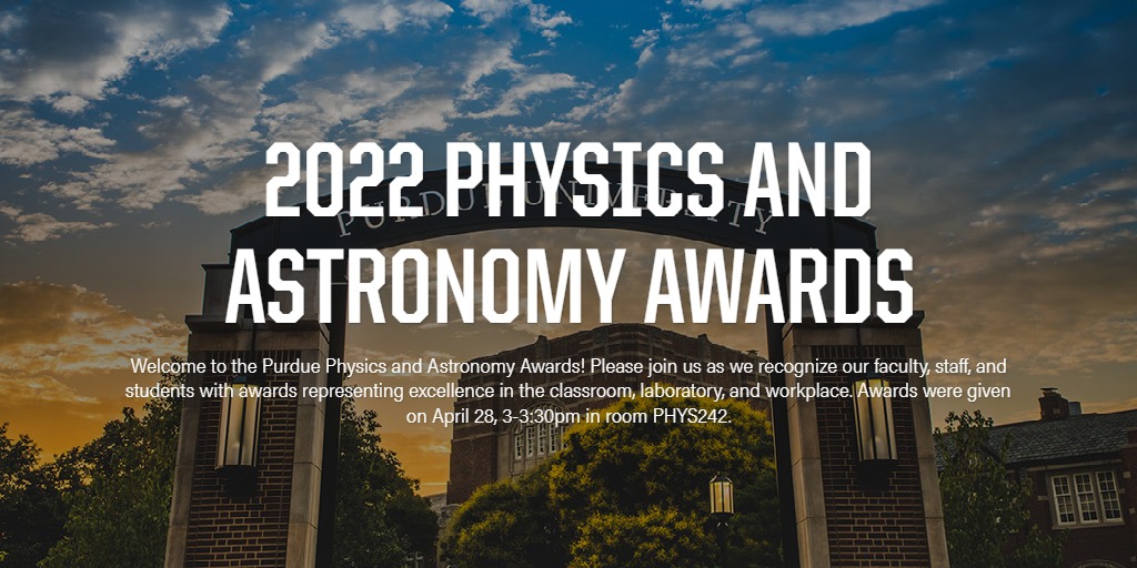 The Lark-Horovitz Award recognizes outstanding research accomplishments. The award is possible through the generosity of the faculty as well as the family, friends, and associates of Prof. Lark-Horovitz in memory of his great contribution to the growth and development of the Department of Physics and Astronomy.