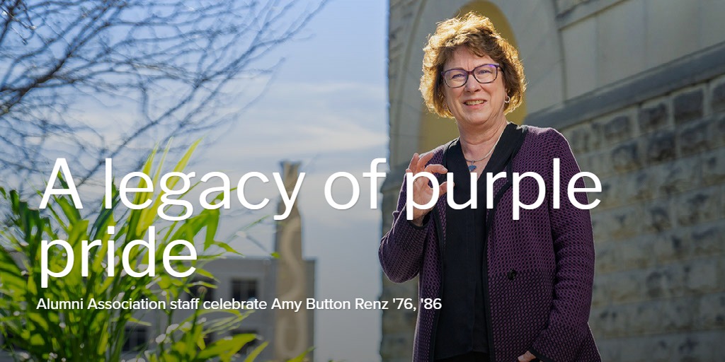 "Never a day without purple! I love hearing the stories of your grandfather making the first touchdown in Memorial Stadium, the challenges of planning the first bowl game activities and thinking of Hollis House being the home of the Alumni Association compared to the beautiful building we are in today. Thank you for all you’ve done for the alumni of this university!"