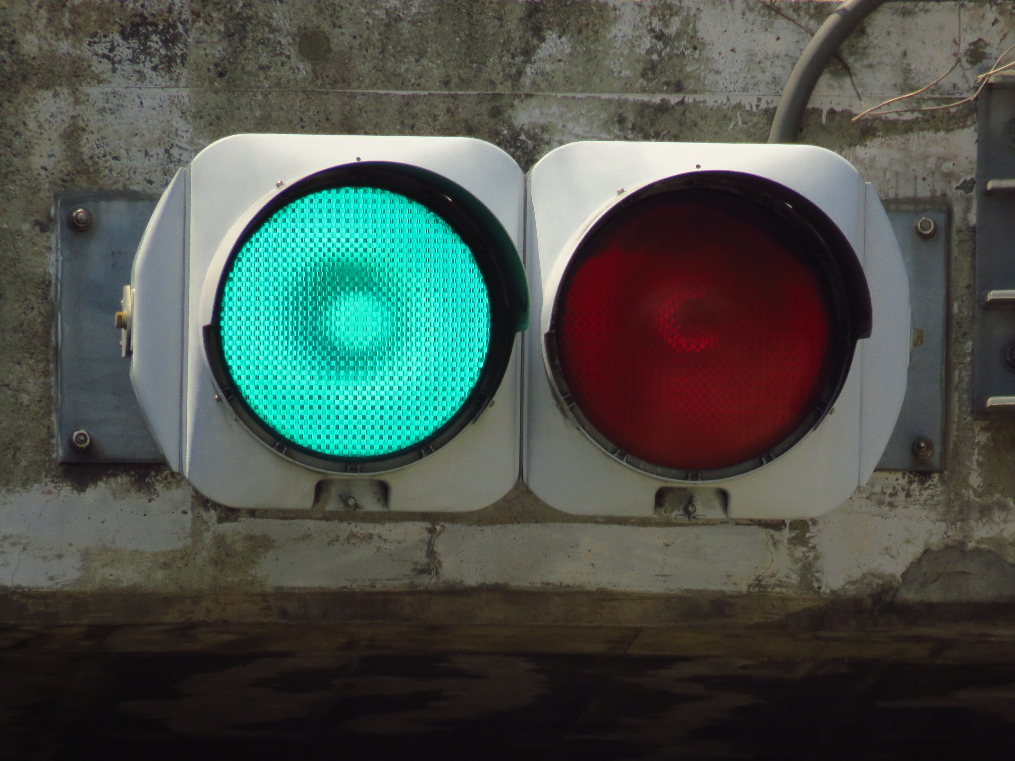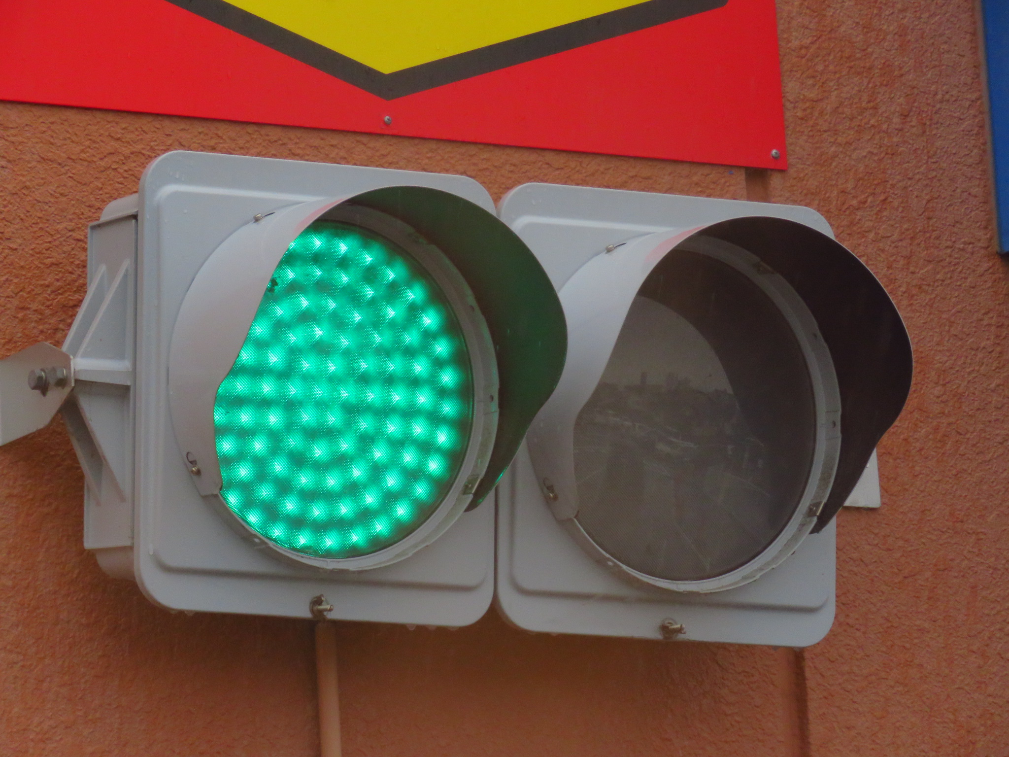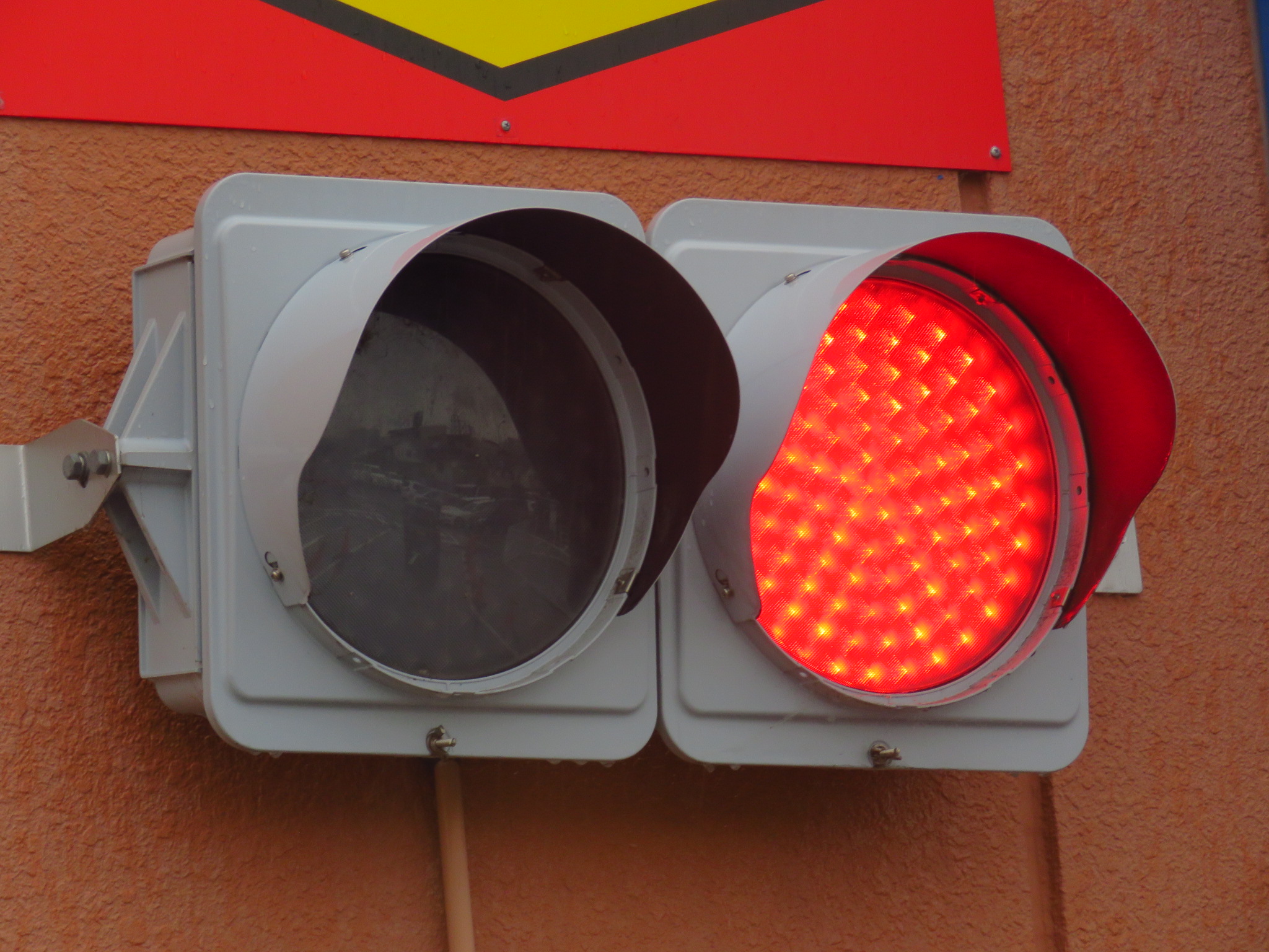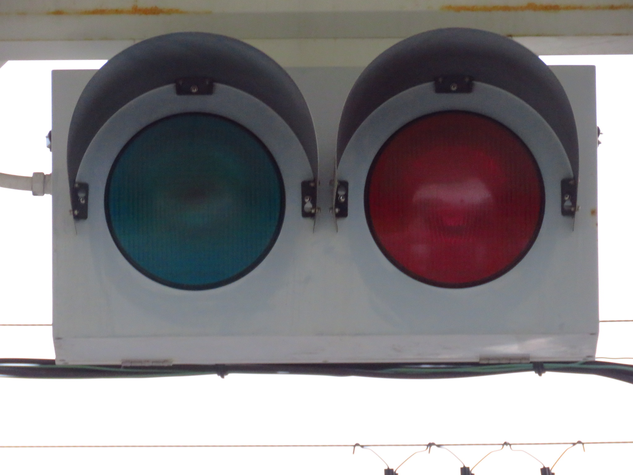 ショッピング施設用駐車場の構内信号として設置されています。青⇄赤サイクルで交互交通になっています。(屋上に上がるまでの道が狭いため)