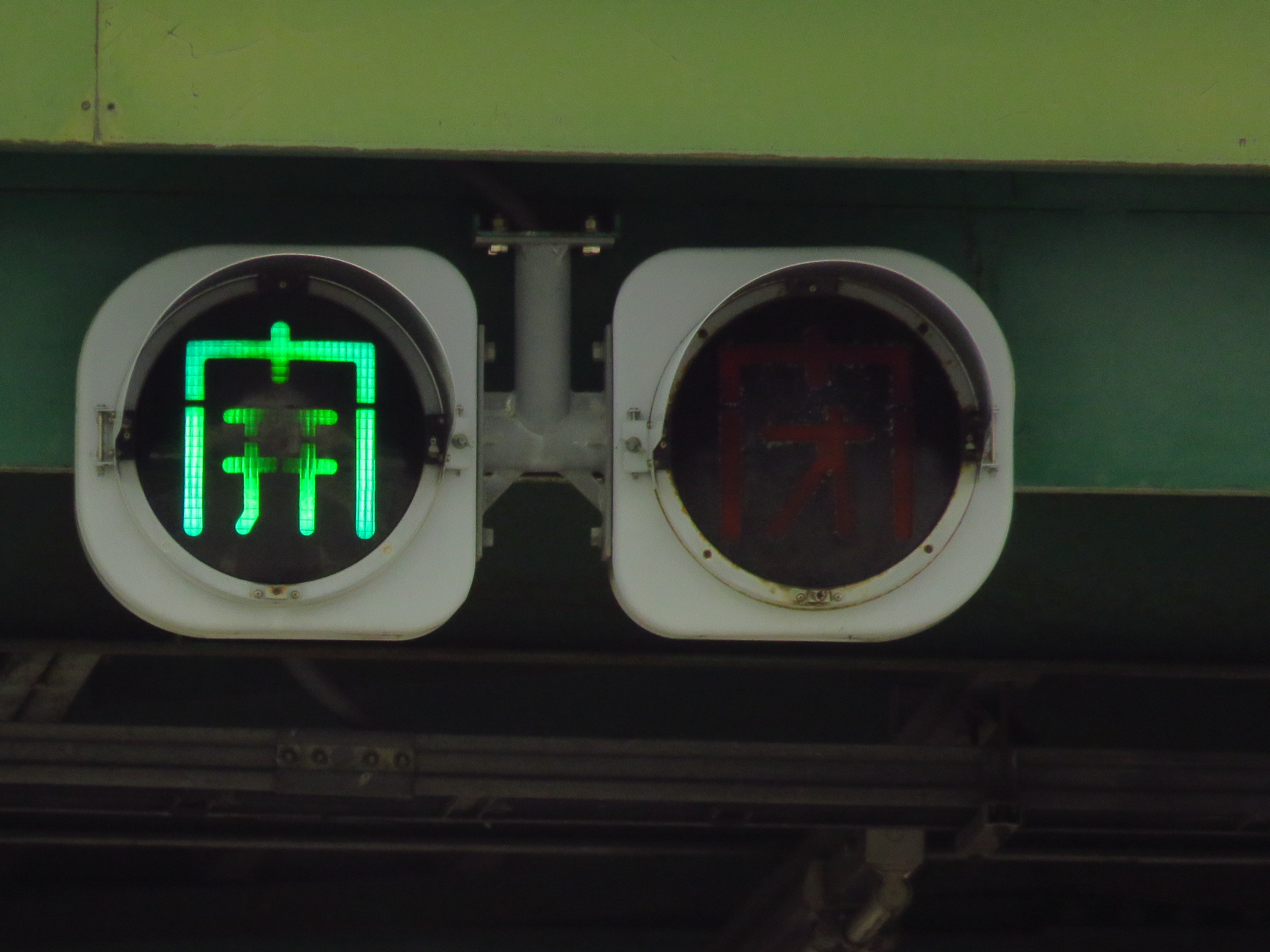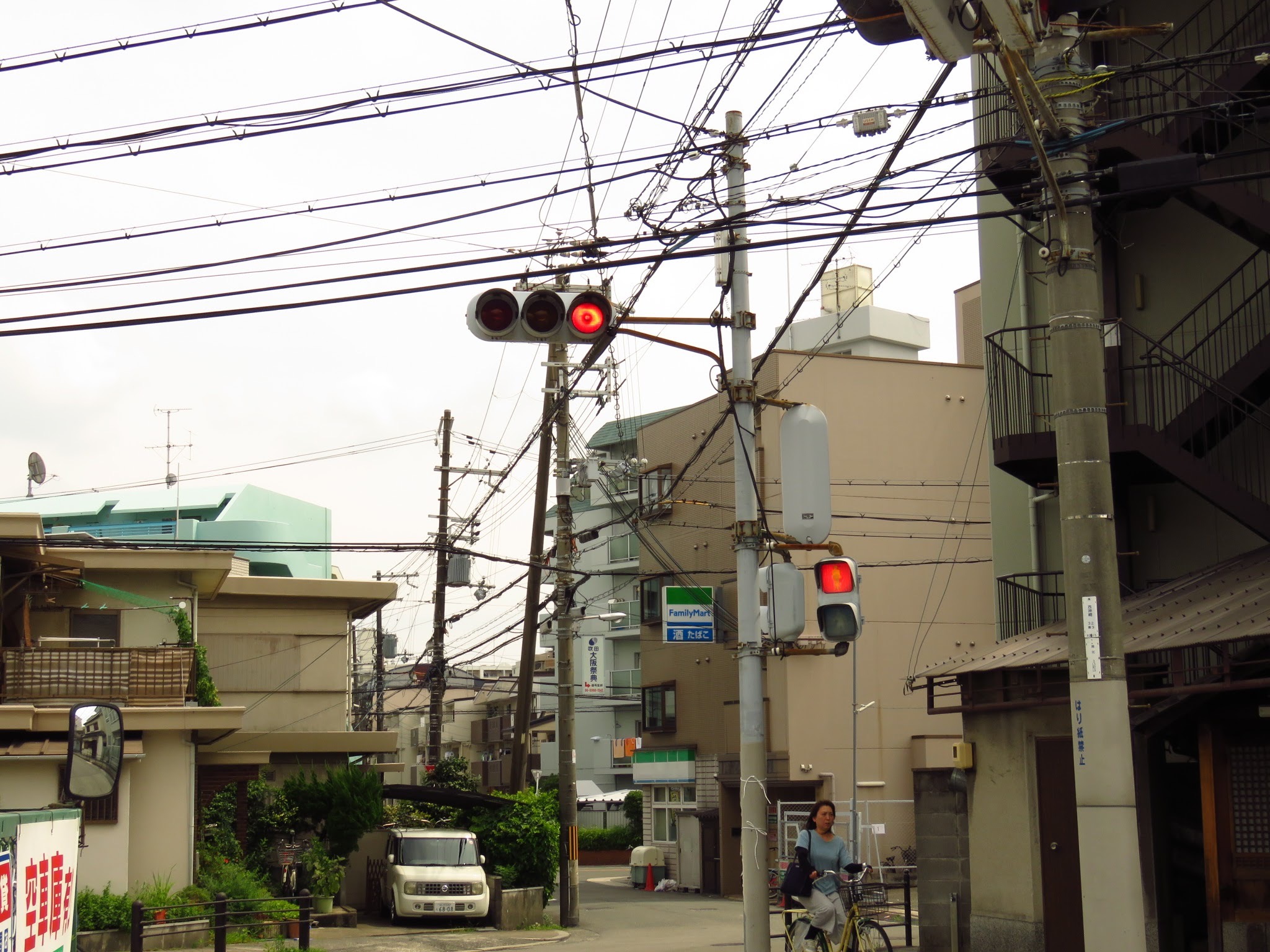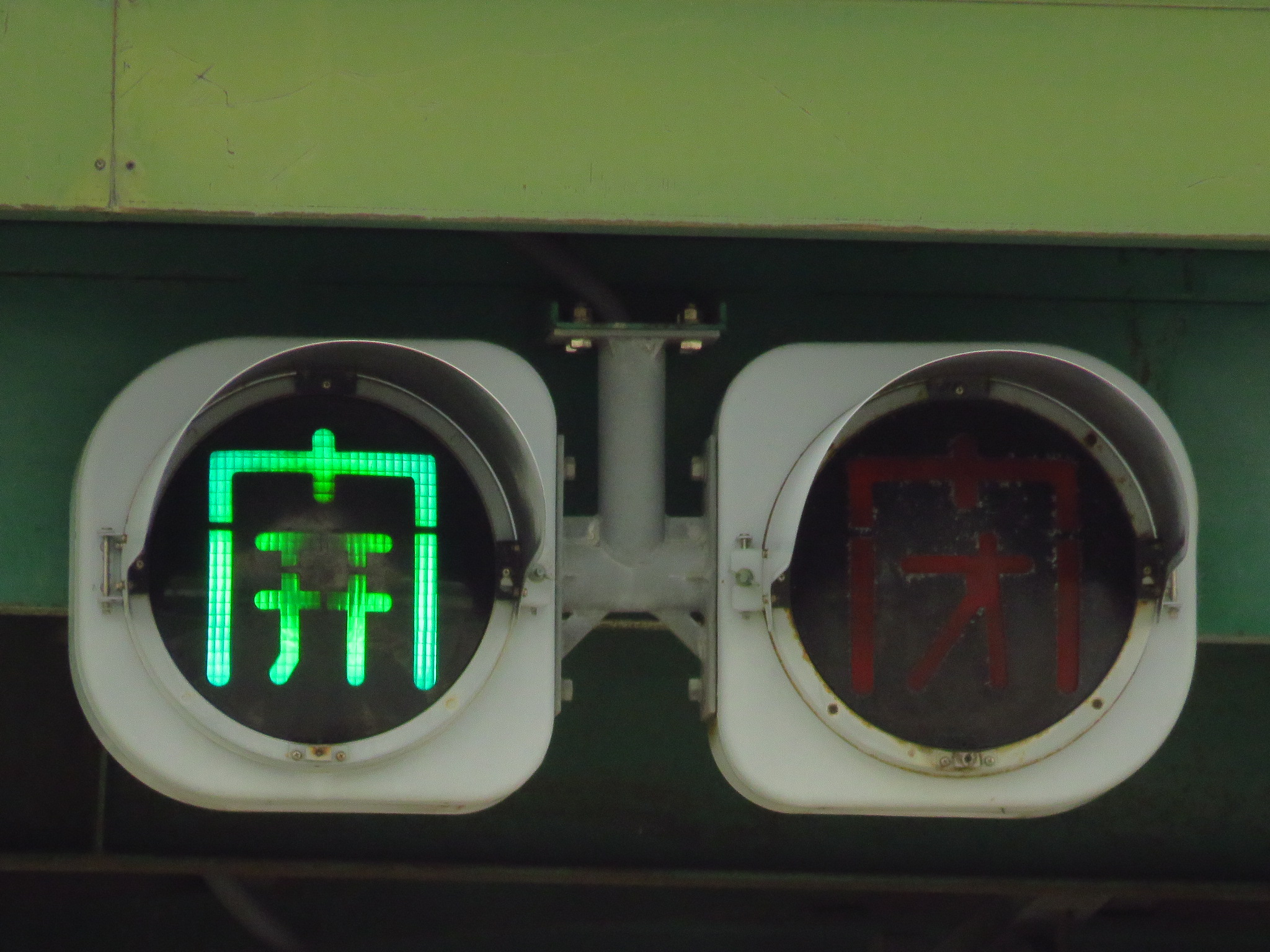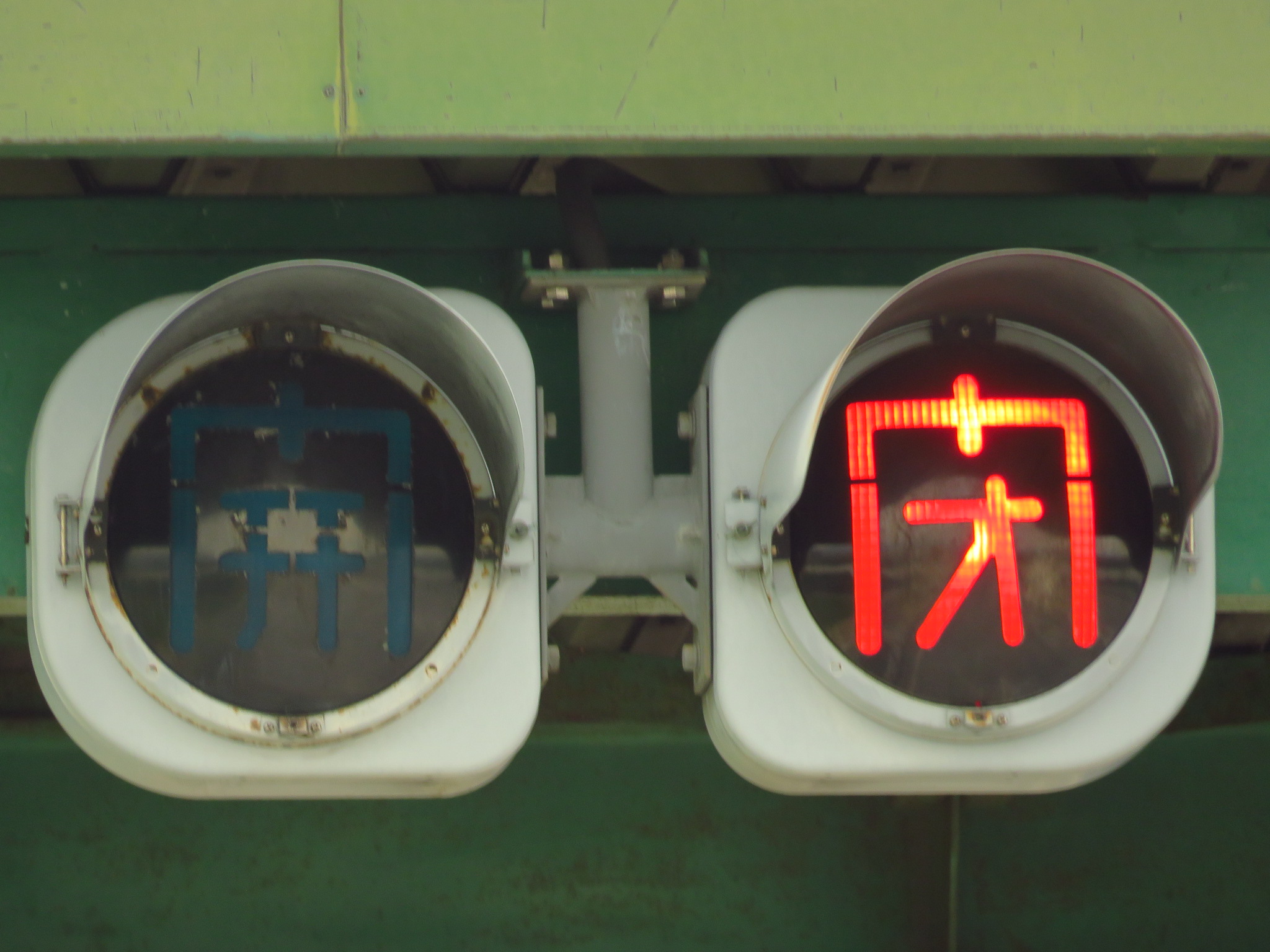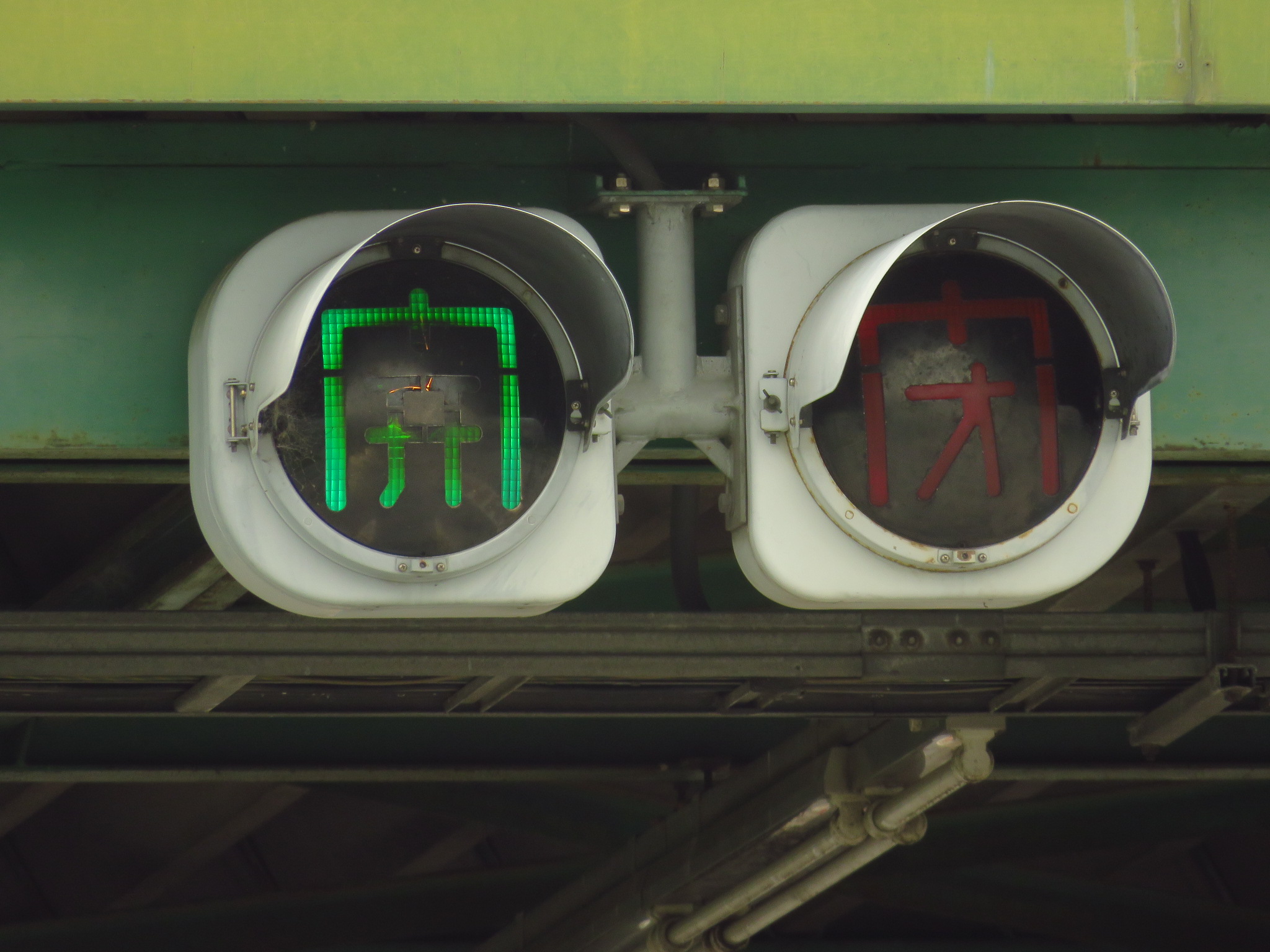 大阪では滅多に見られない変則配列灯器が東淀川にもありました。サイクルは右赤点滅⇄右赤点灯で左赤、黄はダミーですが、かつては左赤も点灯していたようです。