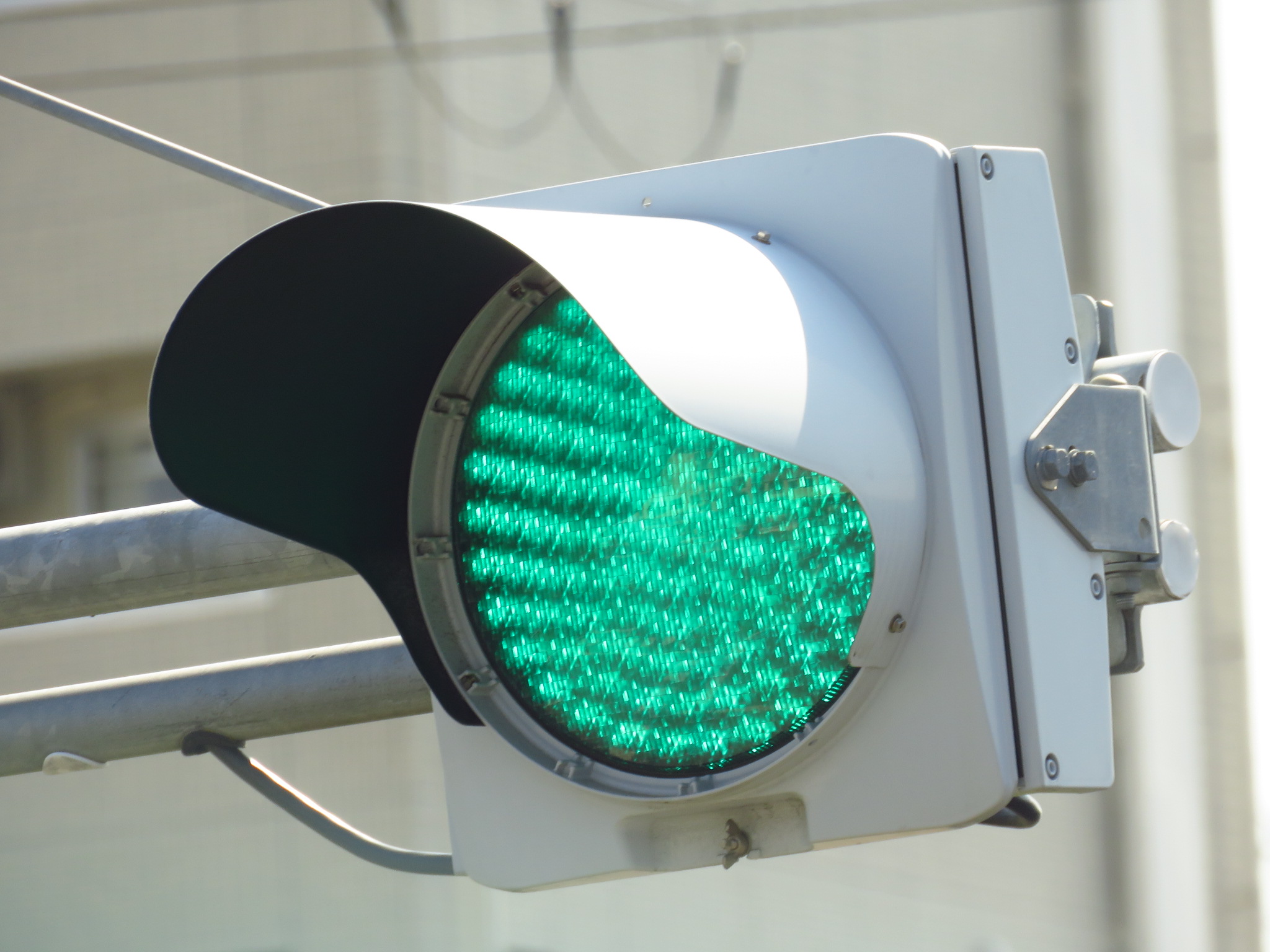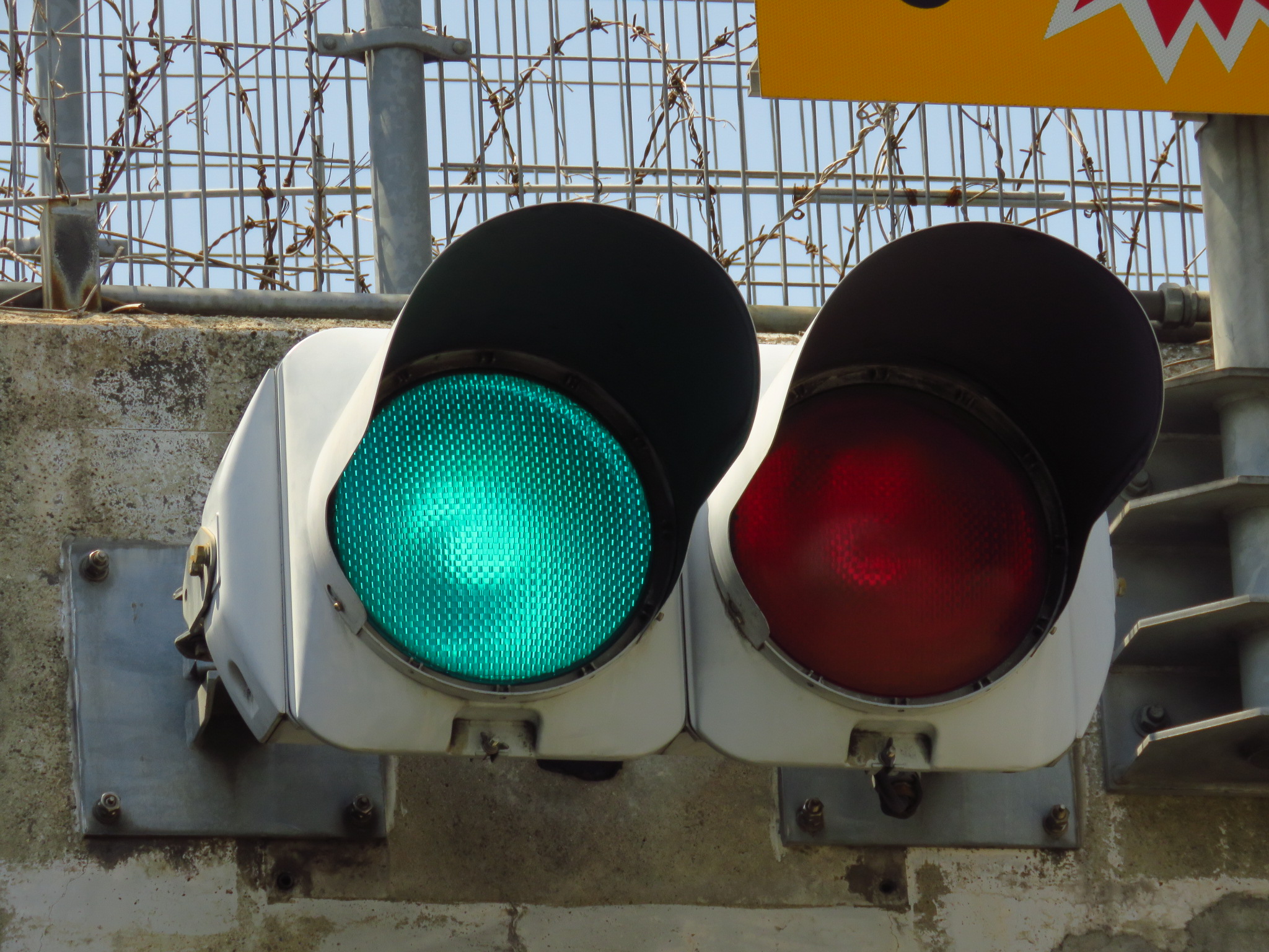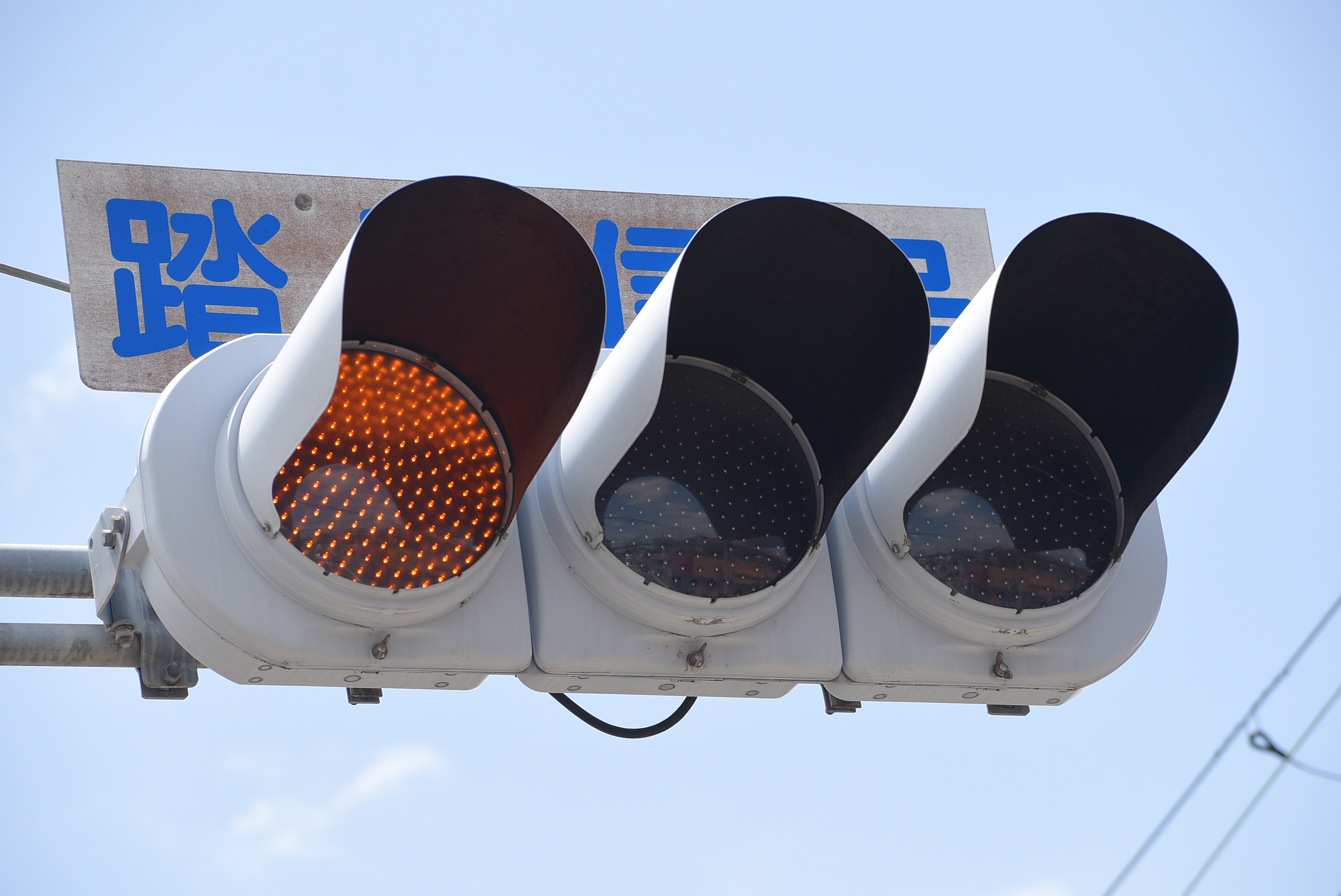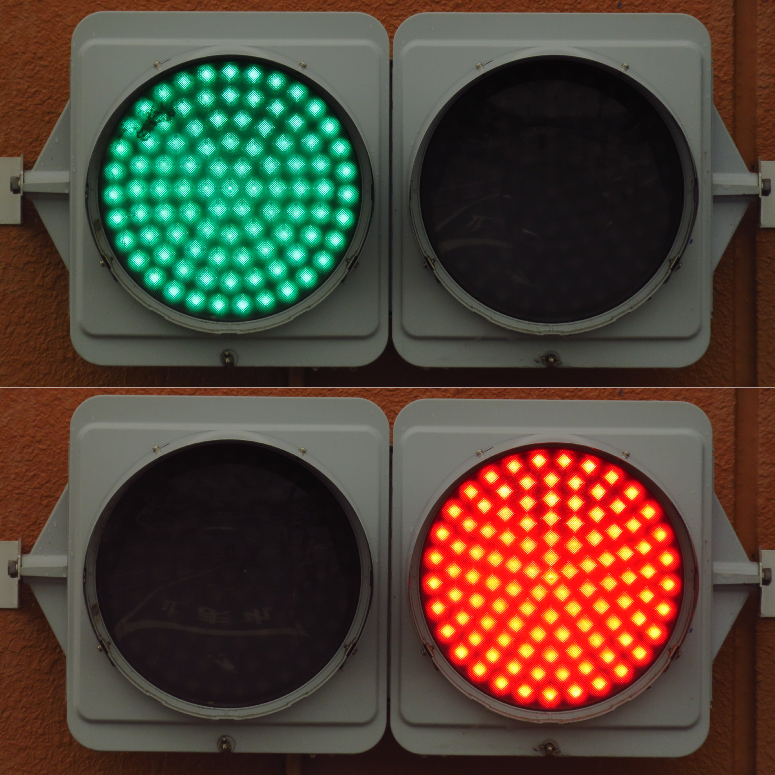 教習所内の信号交差点の予告信号として設置されています。前方が青なら青点灯で黄赤なら消灯のサイクルです。