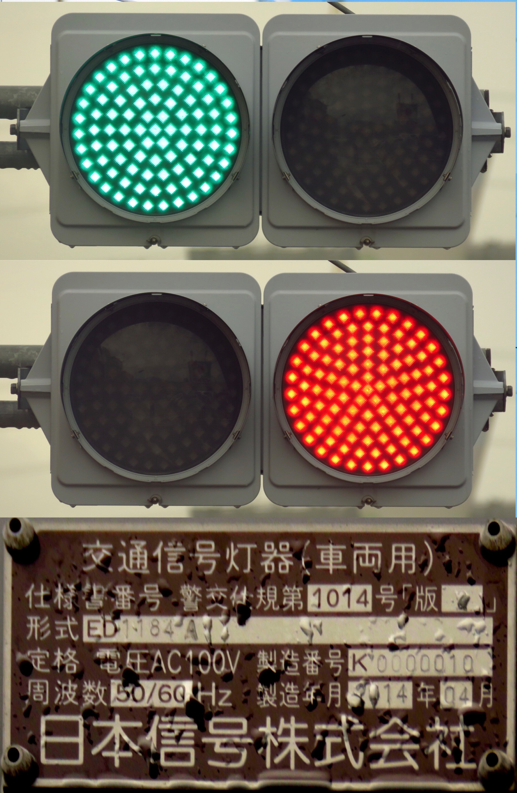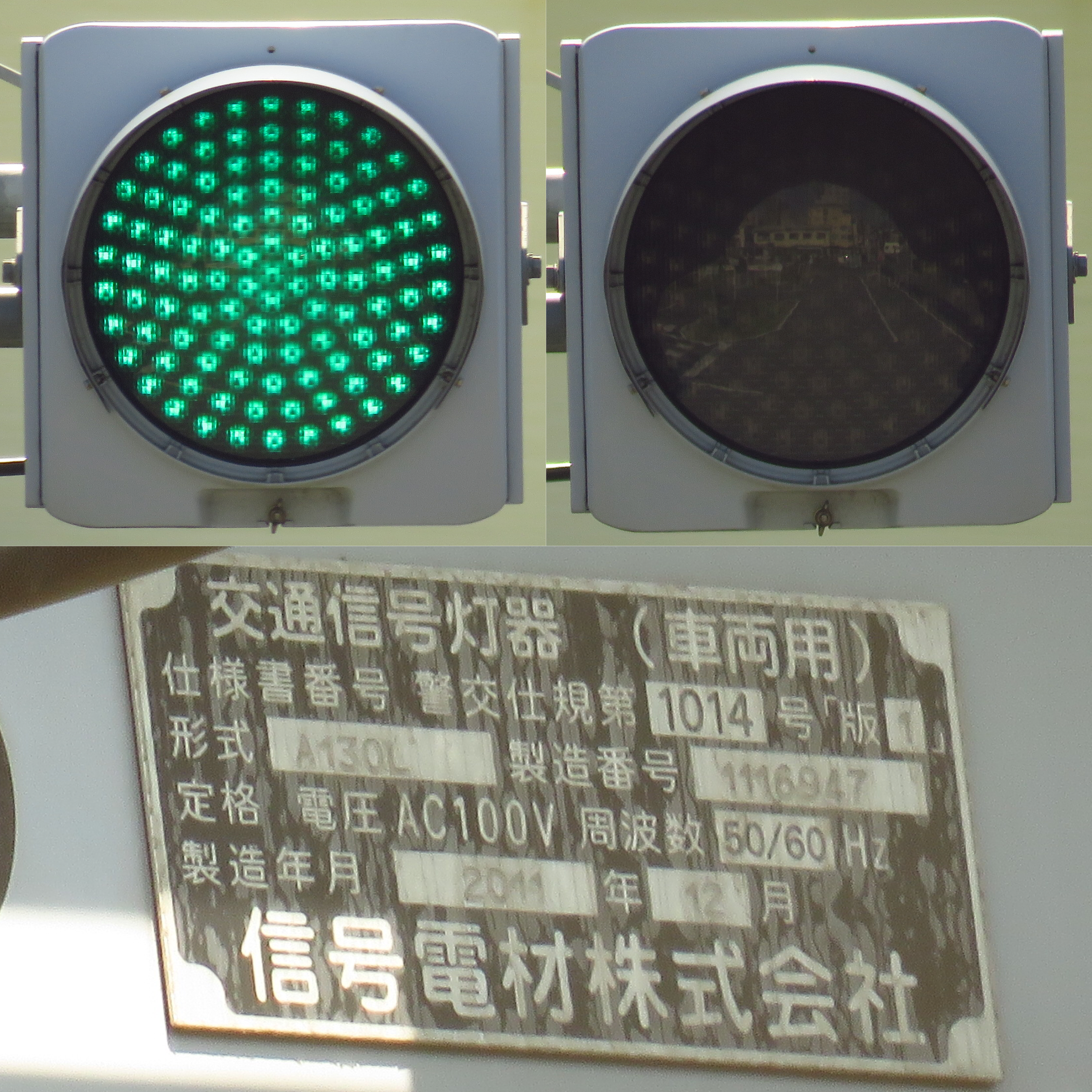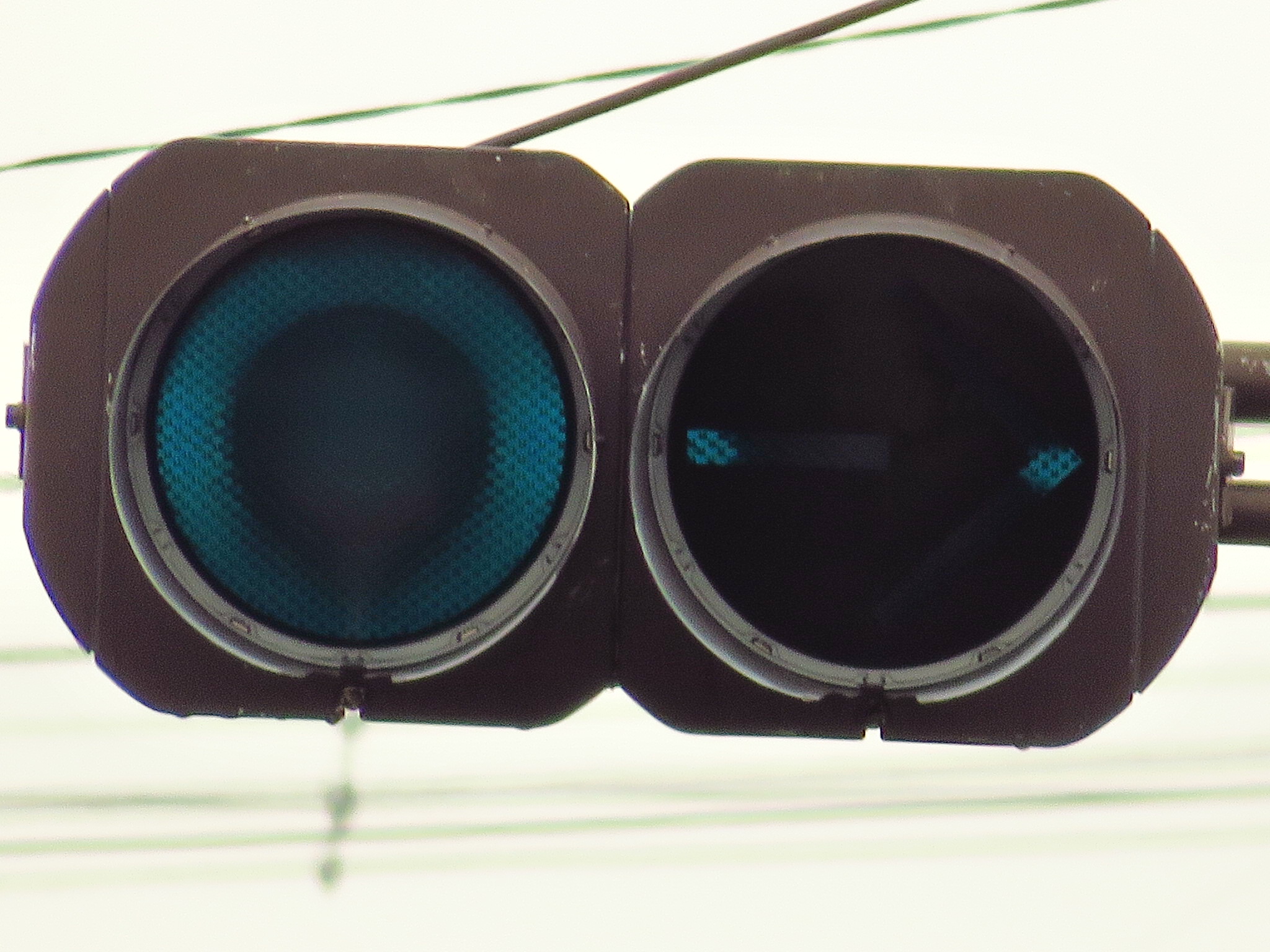 青と青右折矢印の2位灯です。電球そのものが入ってないのか点灯しているところは見ることができませんでした。