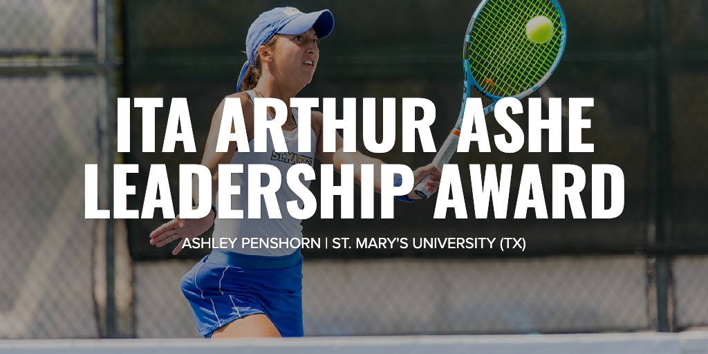 Ashley Penshorn from St. Mary's University (TX) has been named the 2023 ITA Arthur Ashe Leadership and Sportsmanship Award winner.