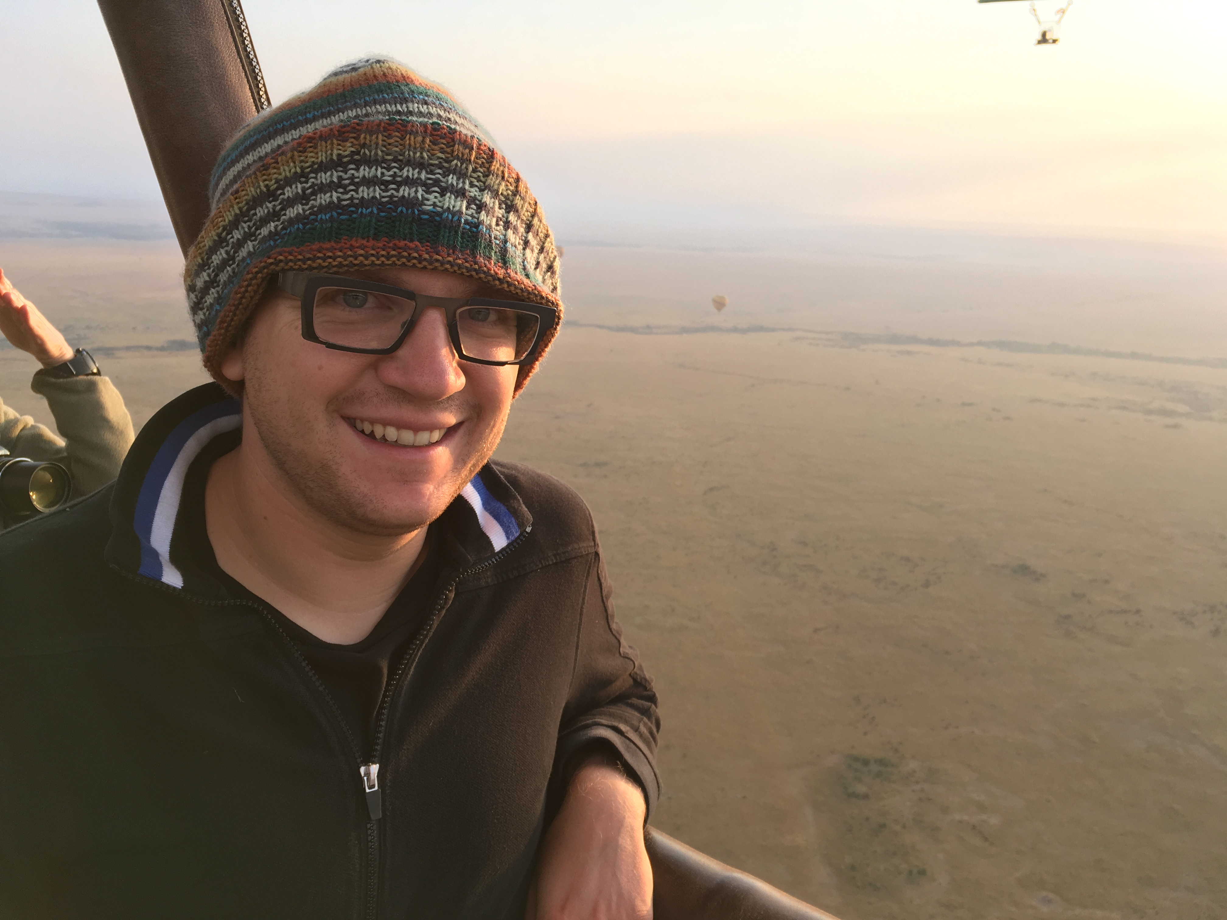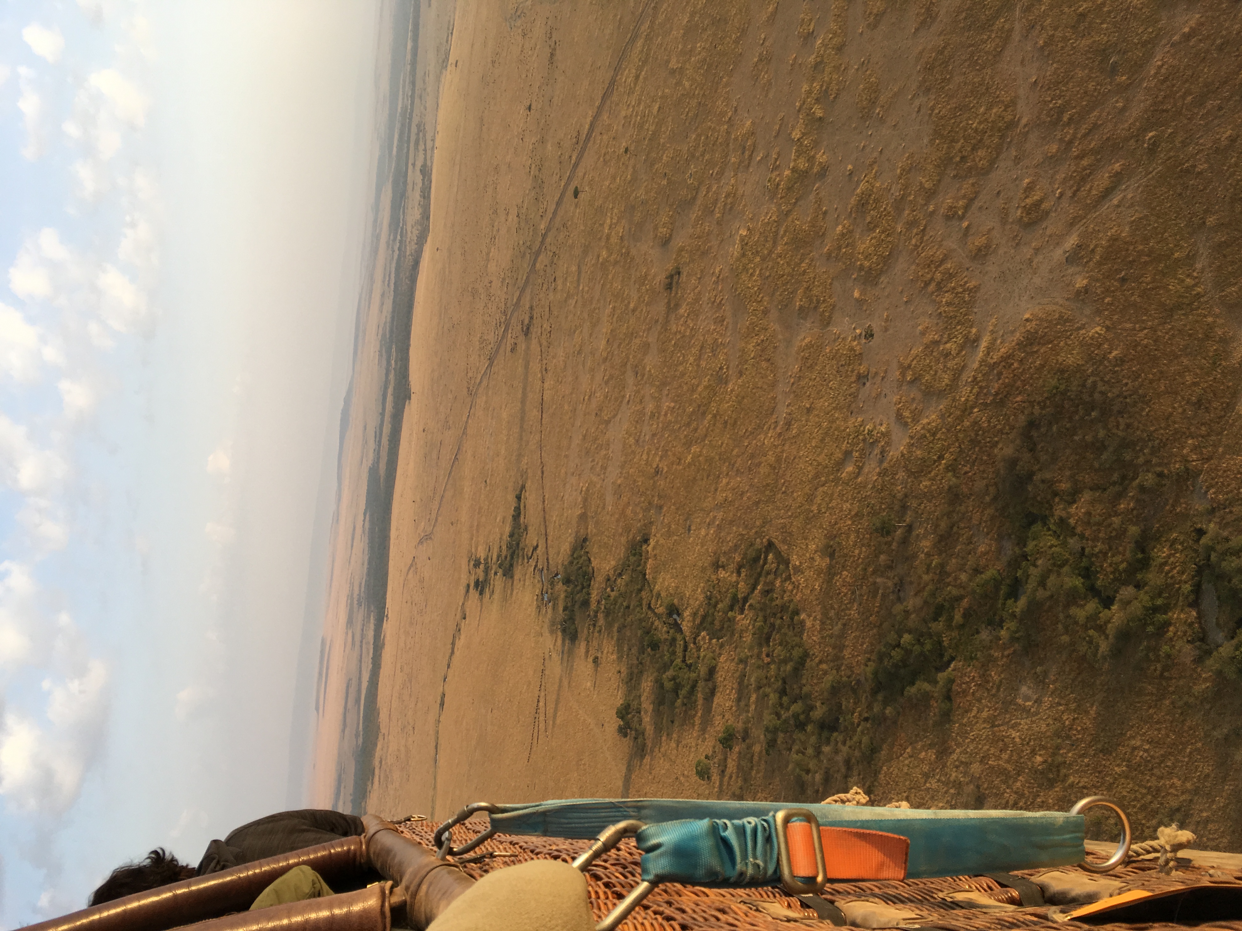I feel like a true Kenyan now. I debated going on a hot air balloon ride and was able to barter down the price by 60 dollars! It was really incredible to wake up at 3 a.m. and drive 2 and a half hours through the Mara to get to the balloon launching point (Just kidding - I slept the whole way as we drove through the communities on the border of the game park. What I didn't know about hot air balloons is that when you are ready for take-off, the basket is on its side, and everyone lays on their back in the basket. Then when it takes off, you are upright again and standing. Seeing the sunrise over the Mara in an hot air balloon overlooking the Maasai Mara plains covered with black specks (thousands and thousands of wildebeest), was incredible. Upon landing, we had a bush breakfast with champagne. That was surely doing breakfast in style!