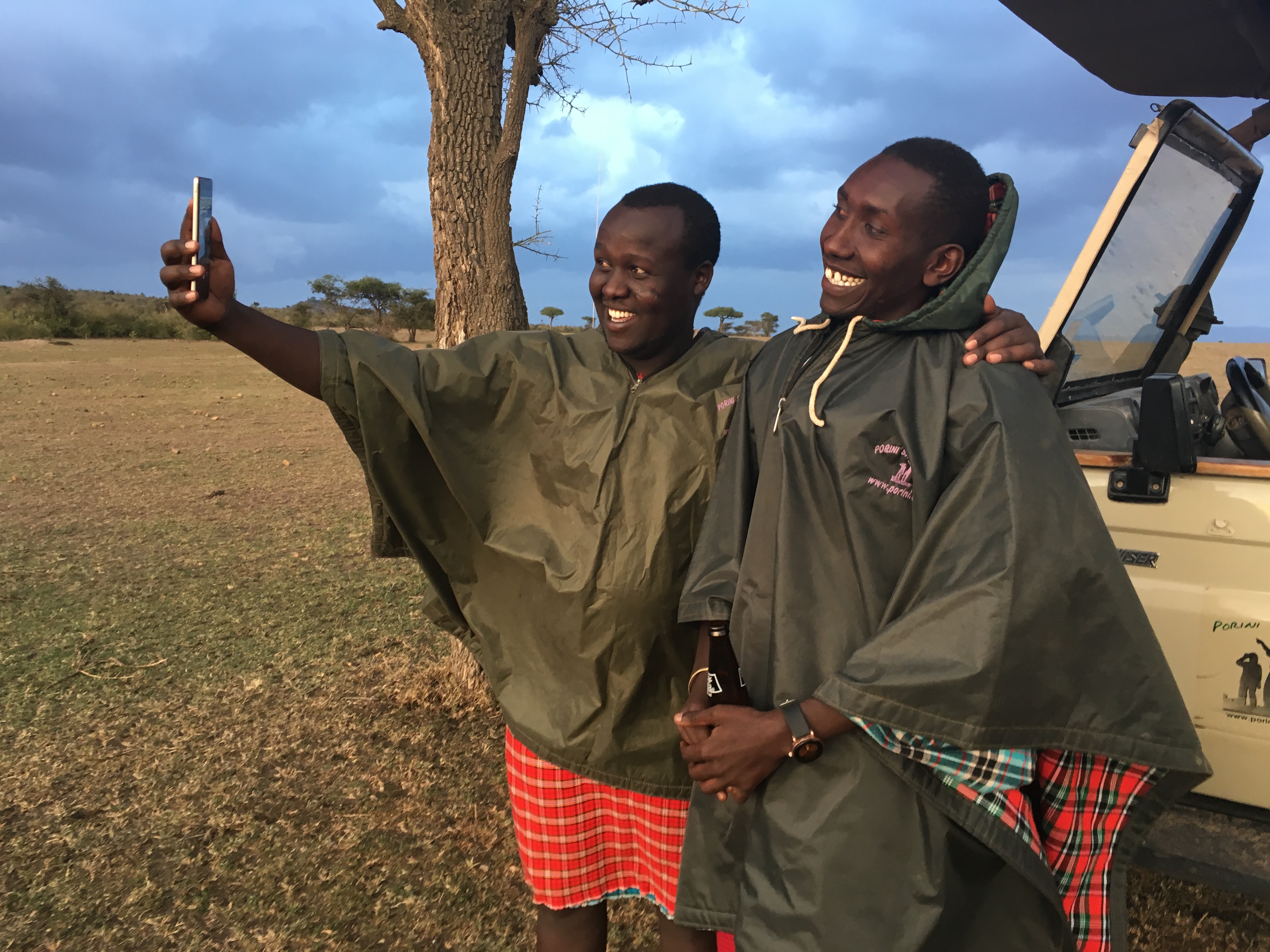 The sunsets on safari are second to none in this world. Each one is prettier than the last one (I think something my Grandma Wagler would've said). An iconic experience is to have a "sundowner" drink whilst out enjoying a safari sunset. I try and pretend I was a British colonist enjoying this new landscape in the early 1900s. Dominic and Lenny my guides even had a FaceTime call with my friend Becky. Last year, I was in Malawi for this summer FaceTime, and this year I was in the middle of nowhere! Cell phone reception is incredible in the Maasai Mara and I love the traditional Maasai clothing juxtaposed beside them using their phones to take selfies and to "Facebook" what they see while on the game drive with other drivers.