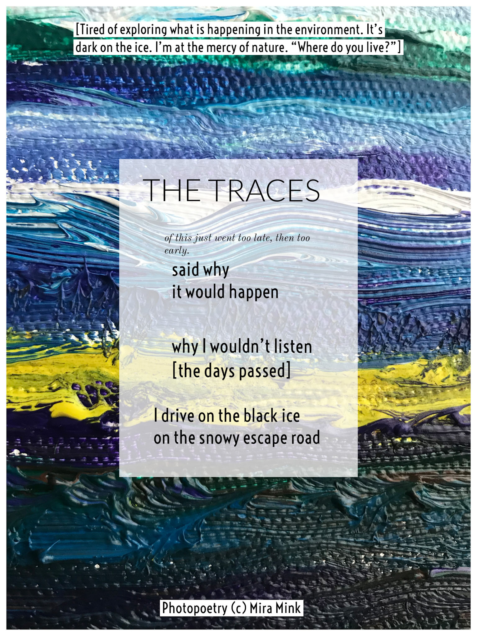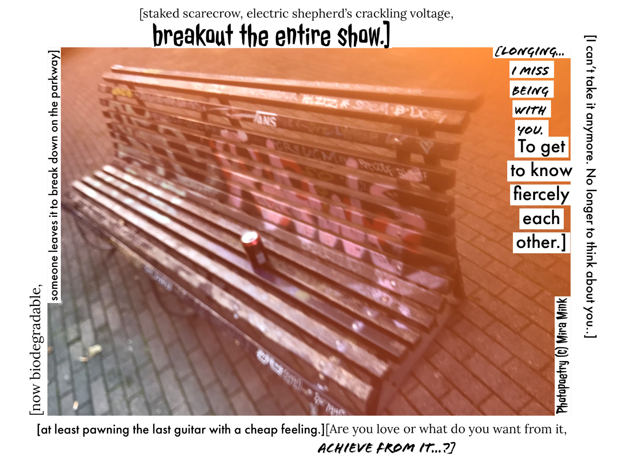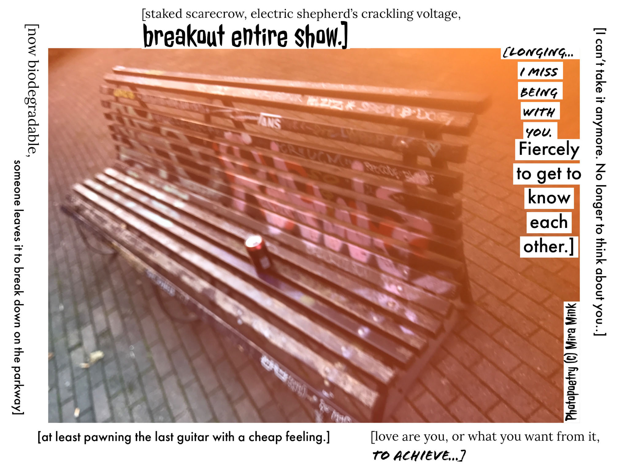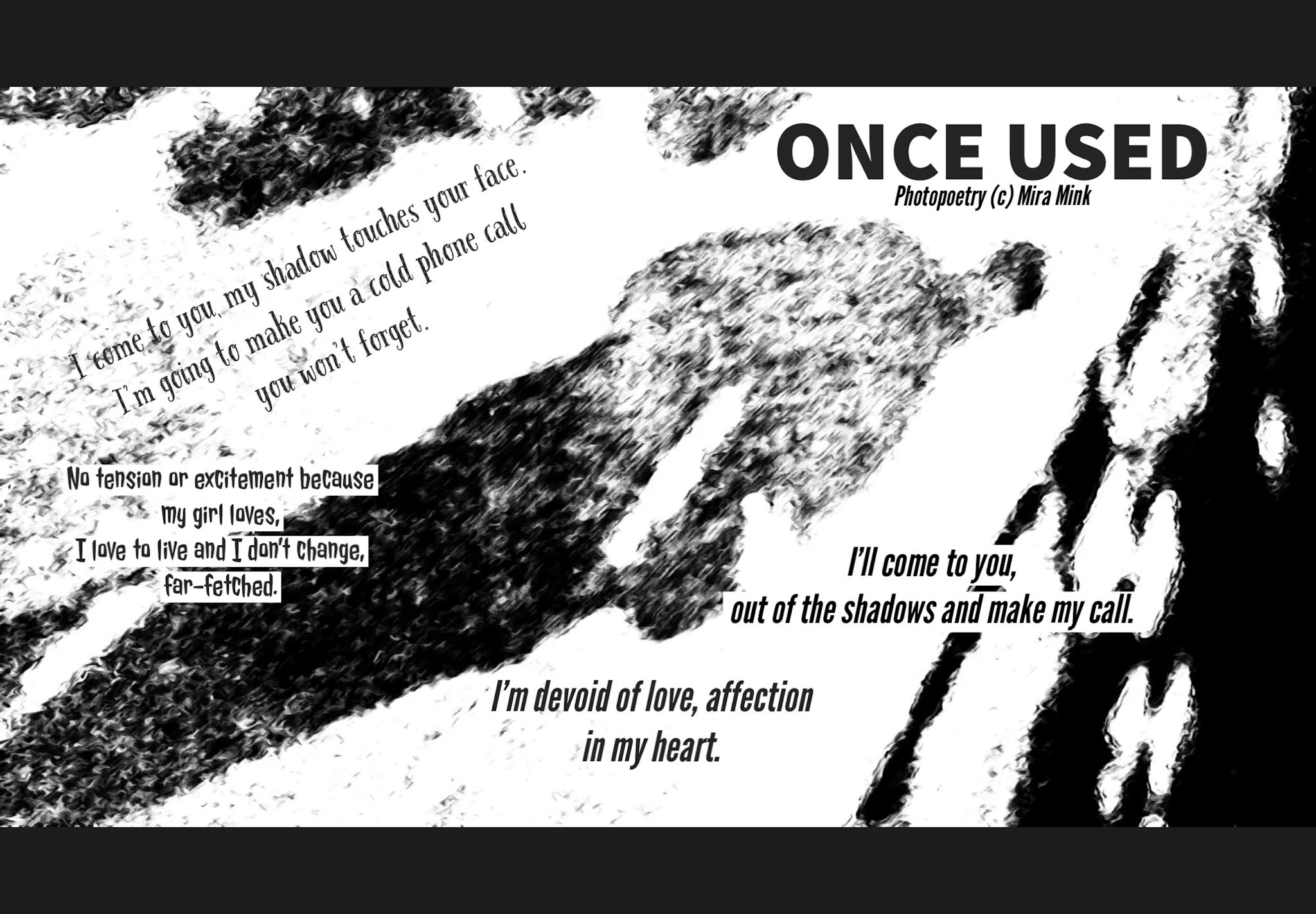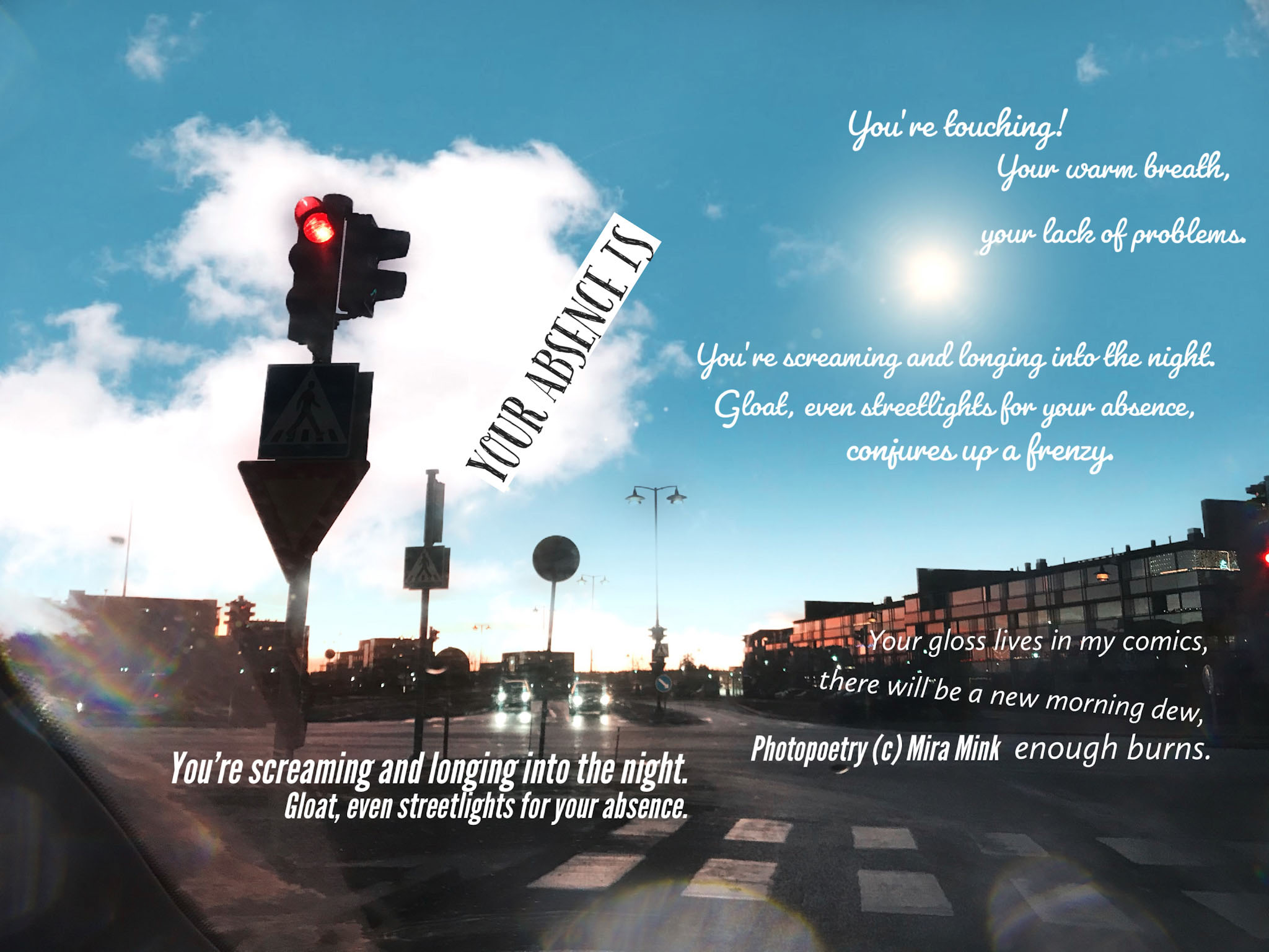 8.11.-13.11.21, Kalliolan setlementtitalon Mutterigalleria, ”Mira Mink Looking for a publisher”(streetart, painting and photopoetry)