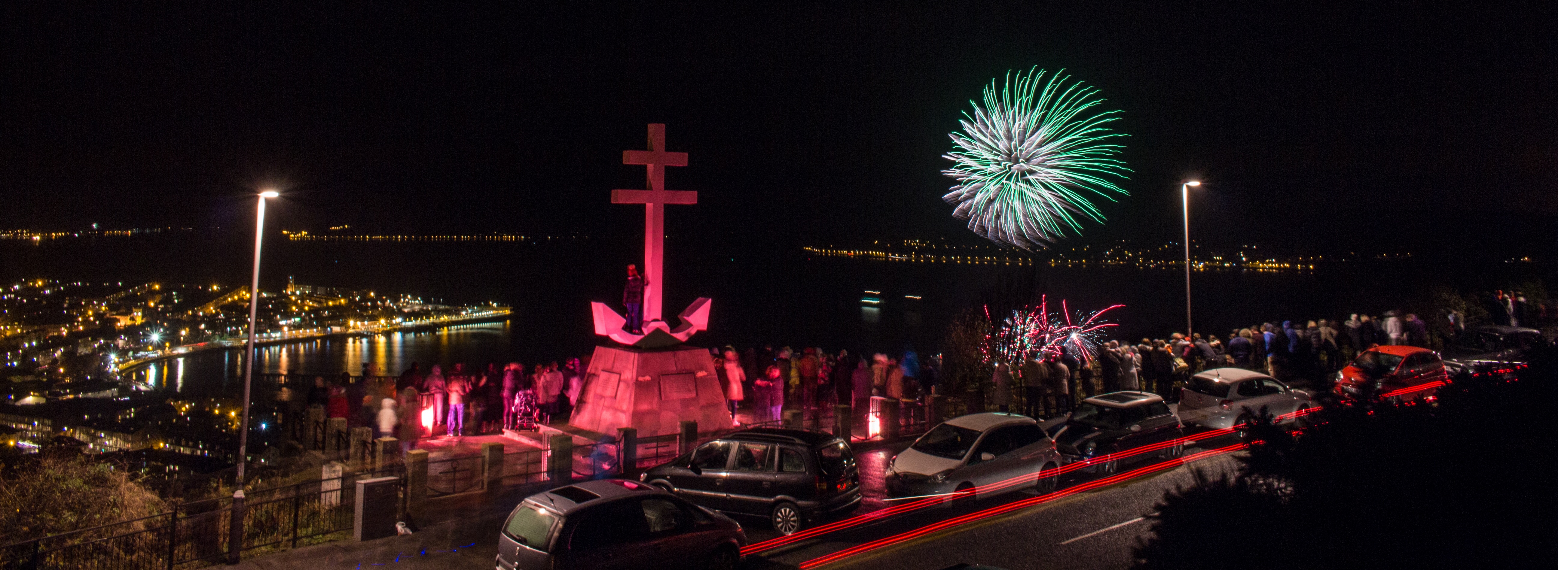 Fireworks night in Greenock, the free French memorial light up in red for rememberance day and the fireworks from the battery park. This one was used by Inverclyde now as the cover for their fireworks album