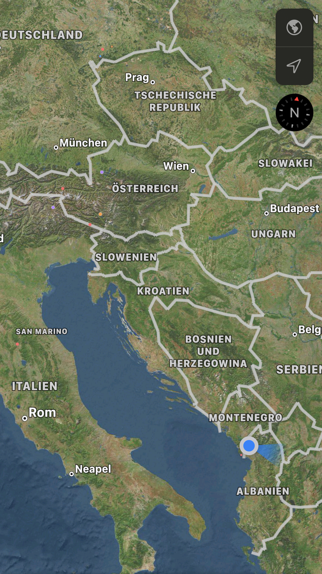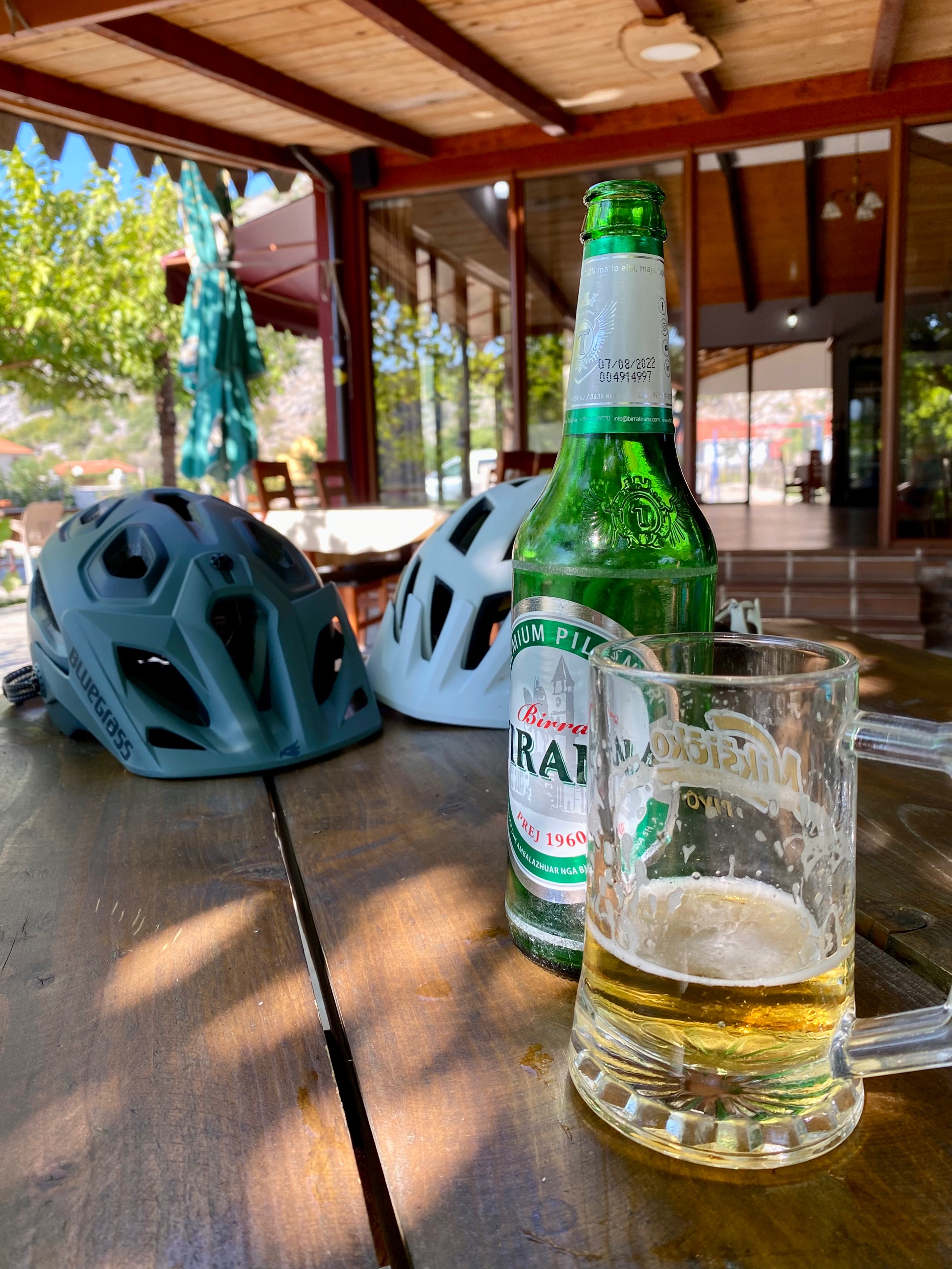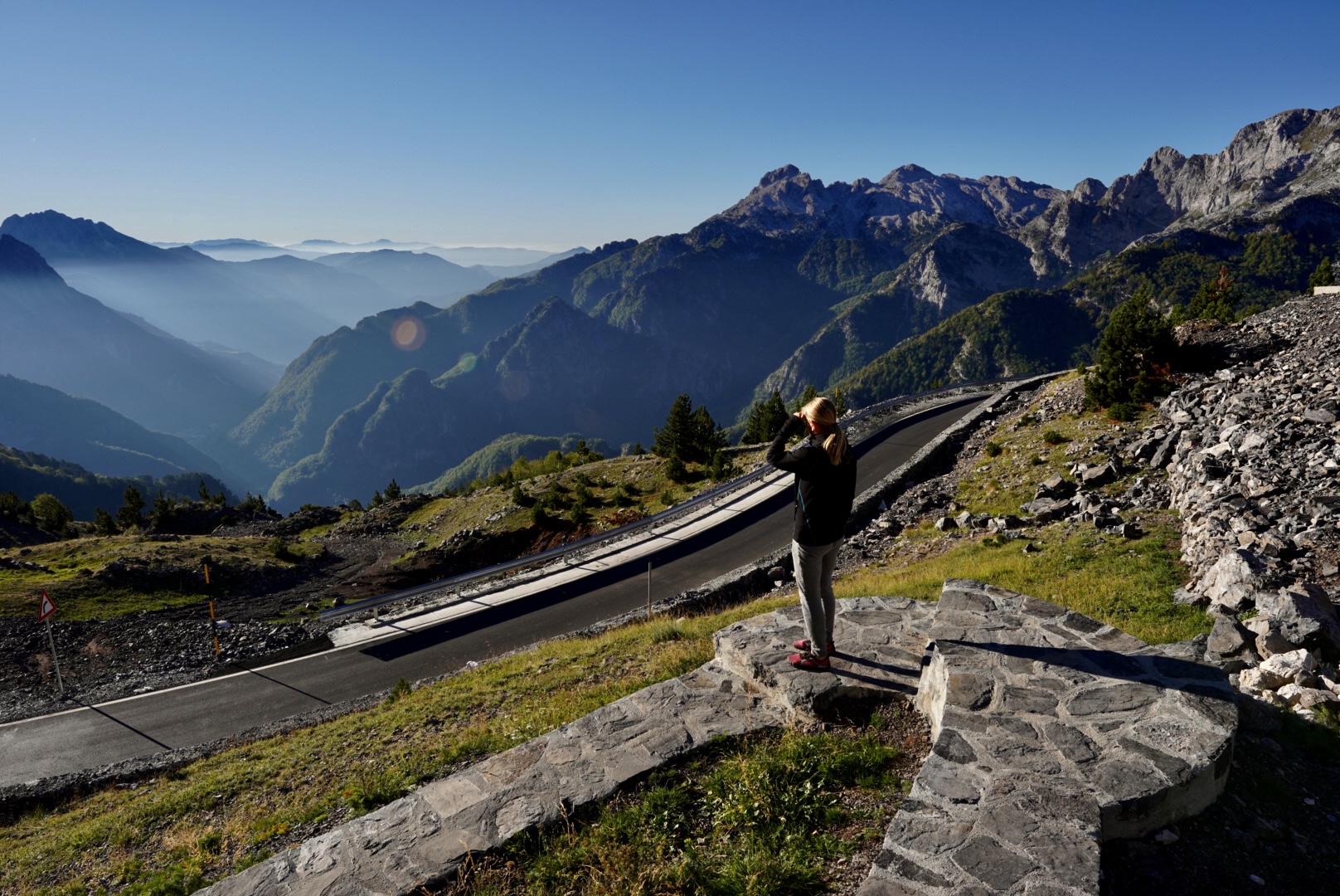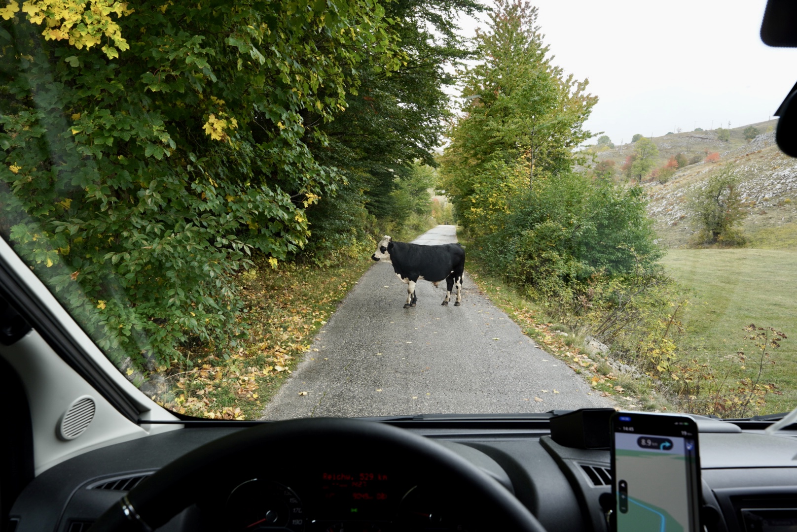 Erwachen im Thethi-Nationalpark. Wir machen nicht lange rum und starten gleich früh 07:15 Uhr. Der frühe Vogel…fährt erstmal 22 Kehren den Berg hoch, genießt am Pass die wunderbare Aussicht und trinkt einen Kaffee nach albanischer Art. Wie türkischer Kaffee aber in albanischer Tasse. Es geht weitere 21 Kehren wieder nach unten, vorbei an Bogë und in Richtung Shkodër. Am Straßenrand beratschlagen wir und entscheiden uns für die Richtung über die SH1 zur Grenze nach Montenegro. Grenzkontrolle, alles gut. 100 Meter weiter werden wir rausgewunken, nochmals Perso und Fahrzeugpapiere, zum Glück nicht den Führerschein, der liegt zu Hause im Ford. Aussteigen und einmal komplett dem Grenzer den Camper zeigen, er sucht nach großen Paketen Koks und Gras, sagt er. Kurzer Smalltalk über das Auto, das Wetter und wo wir hin wollen. Gute Weiterfahrt bekommen wir wirklich freundlich mit auf den Weg.