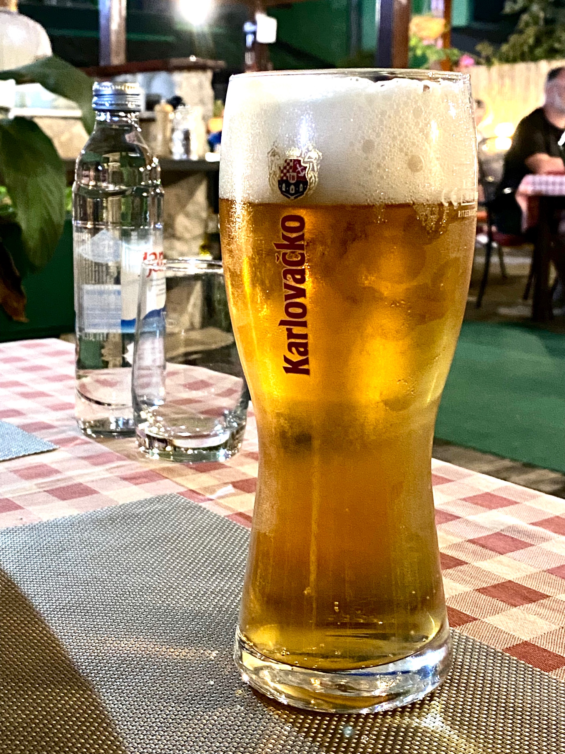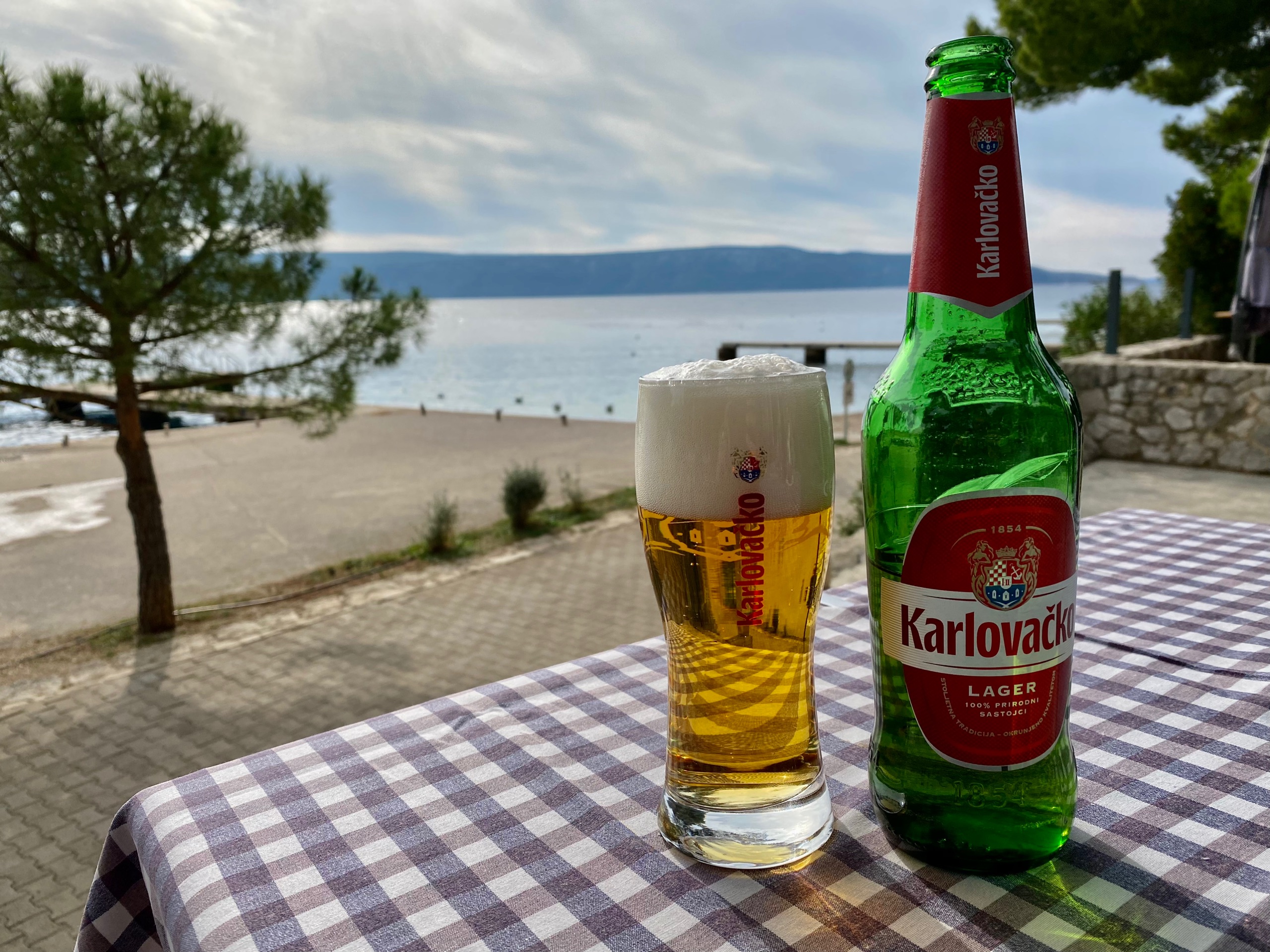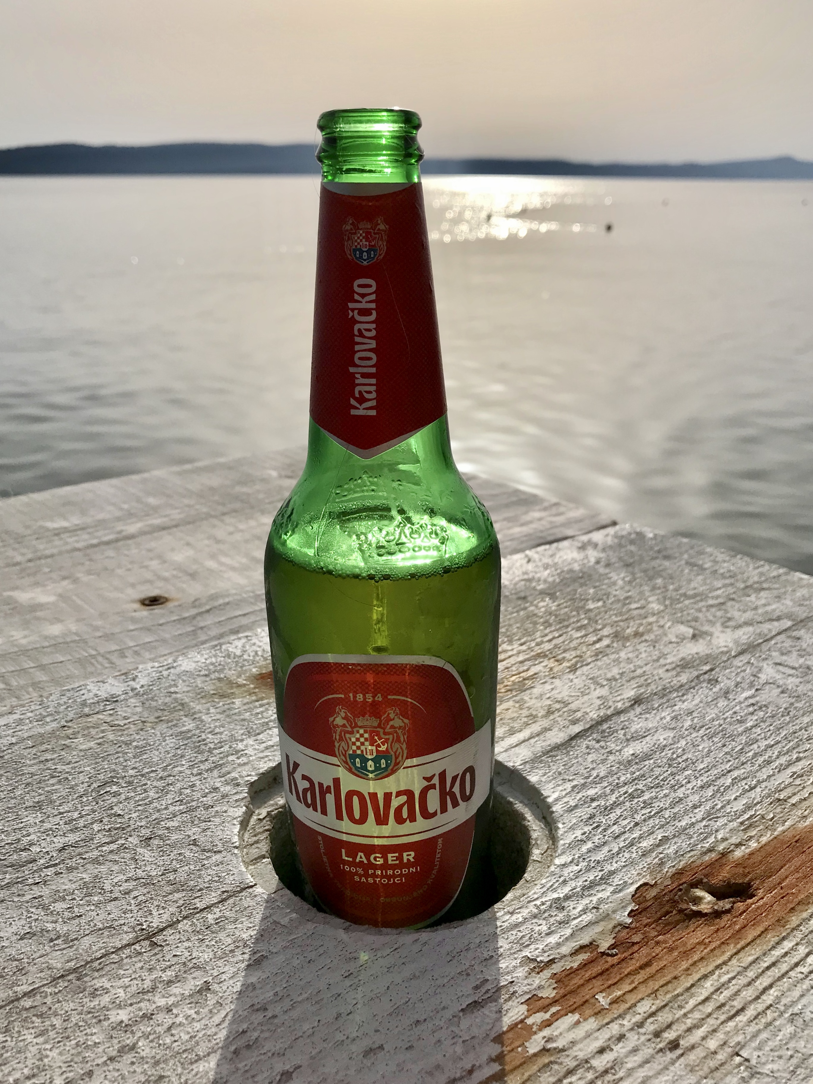 Zum Abendessen haben wir uns aus den Tomaten und Feldsalat ein hübsches Bruscetta mit Zwiebel und Knoblauch gebastelt. Achjaaa - Biervorräte erfolgreich aufgefüllt mit Karlovačko und Ozujsko. Beides kroatische Biere und sehr lecker.