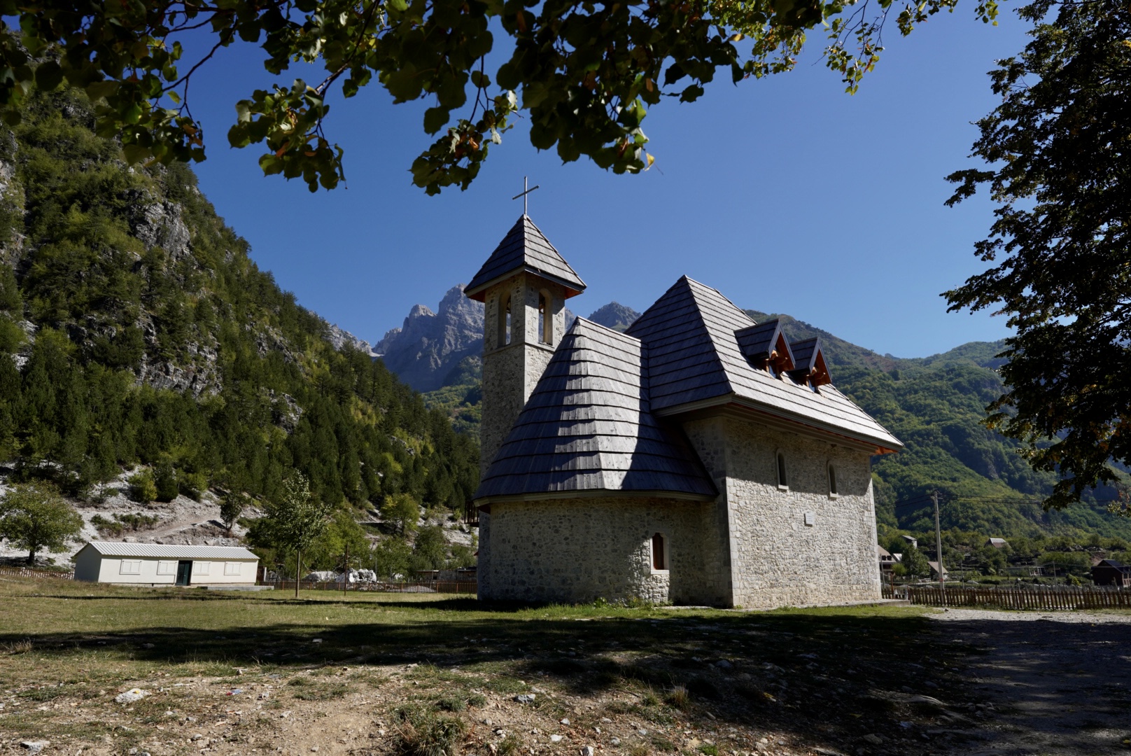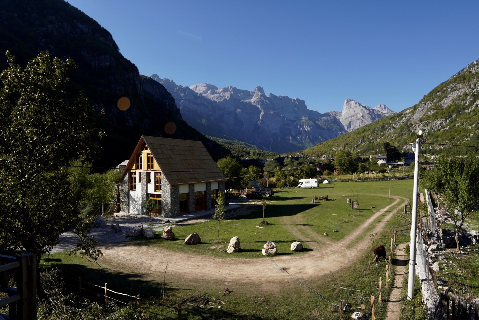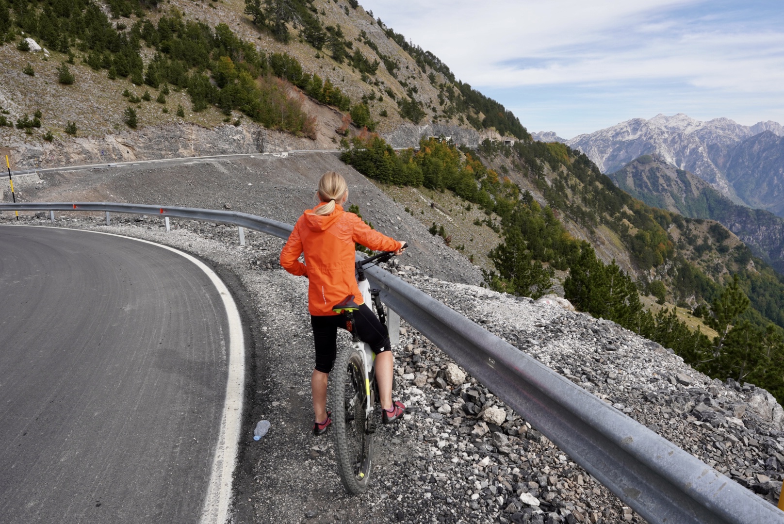 Wir verlassen unseren Stellplatz zeitig am Morgen, da wir total neugierig auf Bogë sind. Die Strasse schlängelt sich ins Tal hinein und so erreichen wir recht zeitig gegen 11:00 Uhr den geplanten Stellplatz, das „Bogë Alpin Resort“. Der Name ist etwas hochtrabend aber es ist schön hier. Wir sind offenbar die einzigsten Gäste hier, alle anderen fahren rüber nach Theth in den Nationalpark. Wir haben gehört, dass die Schotterpiste befestigt wurde. Mit Teer und so…wir schwingen uns auf die Fahrräder und schauen uns das mal an. Wir radeln eine anderthalbe Stunde stetig bergauf und erreichen den Pass am Maja Buni i Thores. Siehe da die Strasse ist niegelnagelneu. Super, da können wir uns morgen mit dem WoMo rübertrauen. Früher ging das nur mit 4x4-Fahrzeugen (der steht zuhause). Also zurück zum Camper, dort check ich erstmal die Bremsbeläge an den Fahrrädern, lange halten die nicht mehr, wenn man 15km bergab fetzt. Wir dösen noch bischen und gehen 18:00 essen. 15€ für zwei Personen mit ½ Liter hausgemachten leckeren Wein (richtig wie früher, trüb und mit Satz von den Trauben), Risotto mit Gemüse für Katja und Salat mit Kartoffeln und Lamm für Christian. Zum Schluss noch hausgebrauten Raki. Wir hocken noch rum und da kam doch eine handvoll Katze angemauzt, konnte ich nicht widerstehen, die Kleine hat sich wohlgefühlt und ist auf mir eingeschlafen. Dann noch unser erster albanischer Stromausfall, alles zappenduster. Wir gehen zurück zum Camper und spielen noch zwei Partien Rummi. Um 21:00 gehen uns dann auch die „Lichter“ aus.