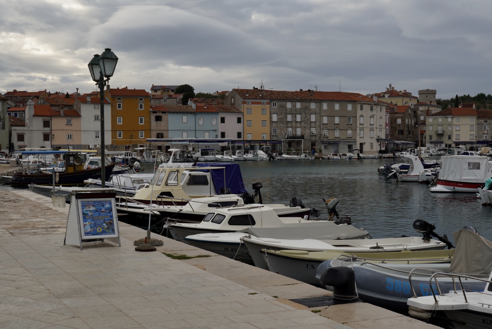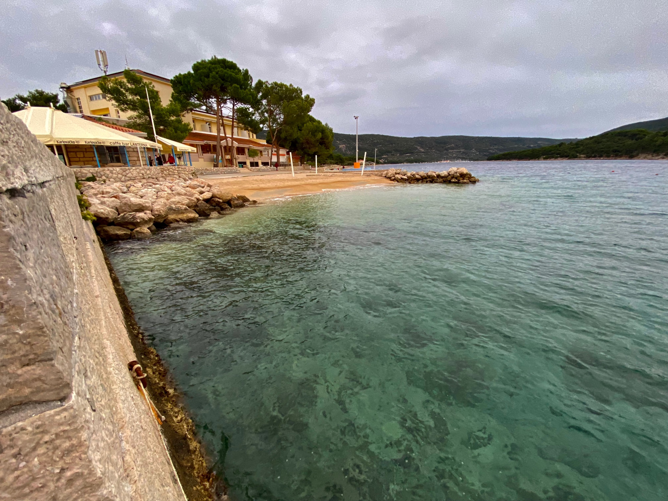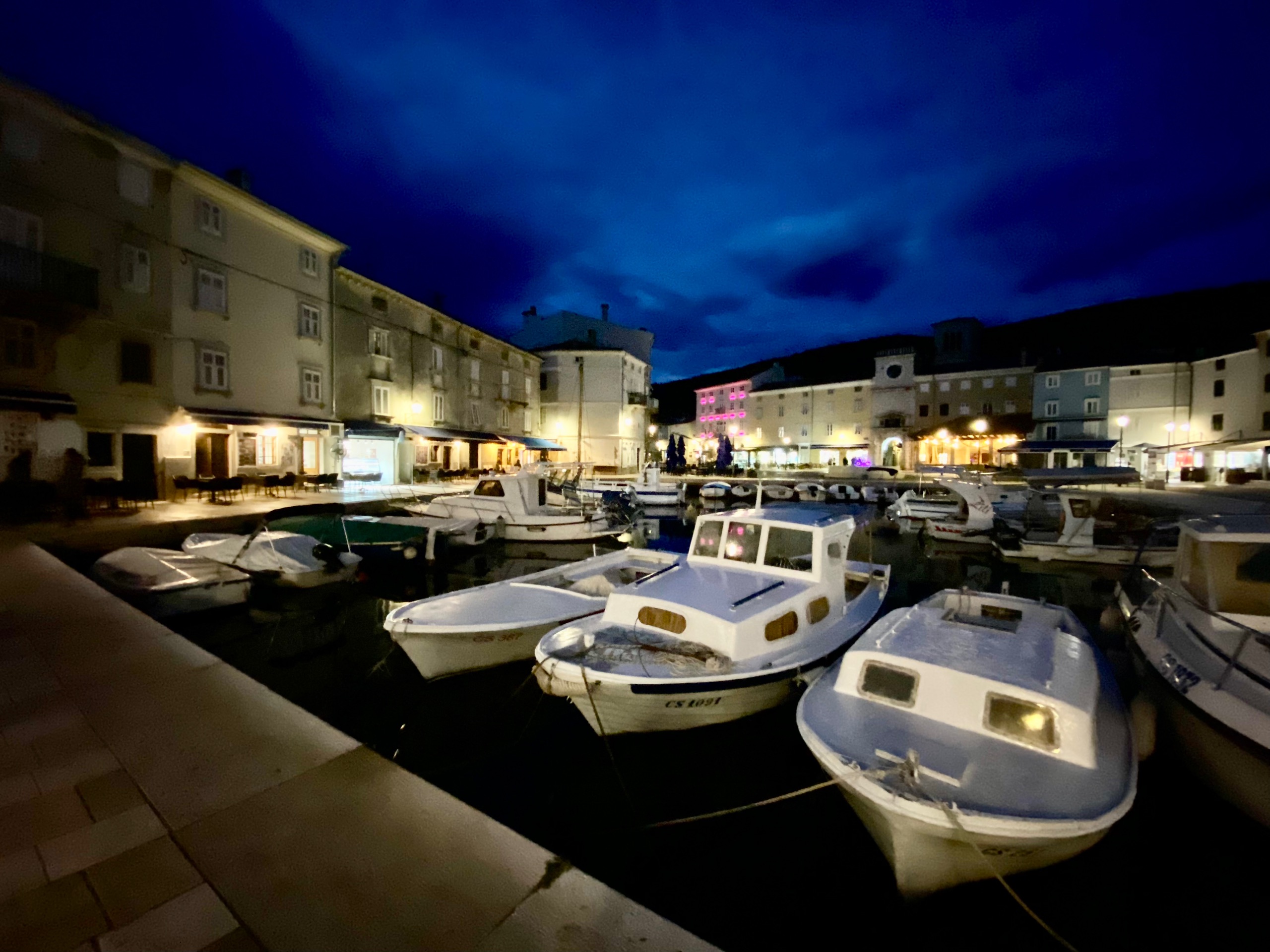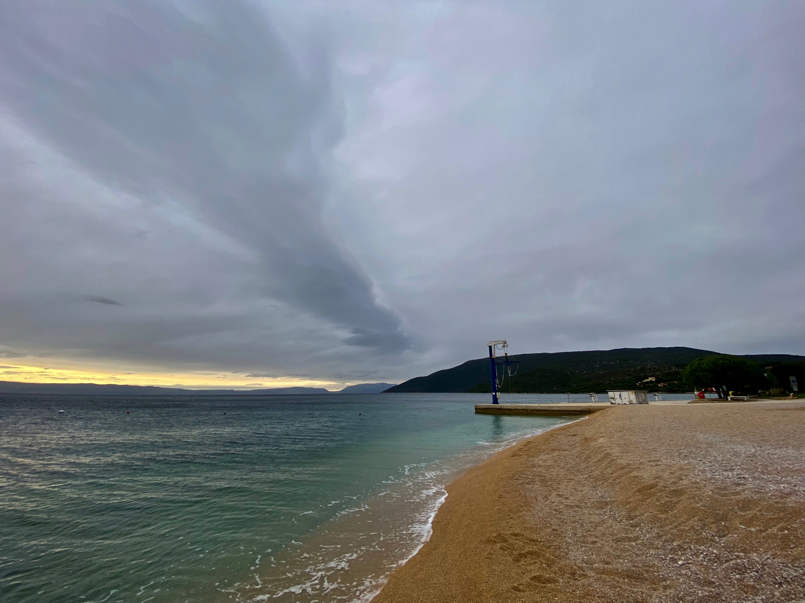 Es ist zum verzweifeln, wir wachen bei Regen und gemütlichen 11°C auf. Okay, da kann die „Terrassengarnitur“ in der Heckgarage bleiben. Wir frühstücken etwas betreten drinnen. Der Wetterbericht verheisst nichts Gutes für heute, es soll regnerisch bleiben, verdammt wir wollten Badeurlaub mit Sonne und so. Wir lümmeln im WoMo und lesen den ganzen Tag. Am Nachmittag halten wir es nicht mehr aus, die Beine kribbeln schon und wir laufen am Strand zum Hafen von Cres und essen ein Eis. Wenn es morgen nicht besser wird verschwinden wir hier, na mal sehen…