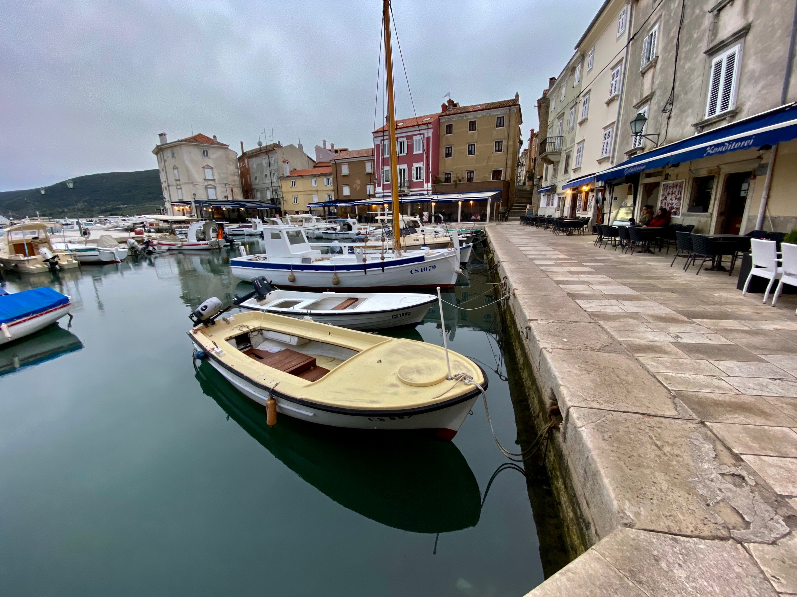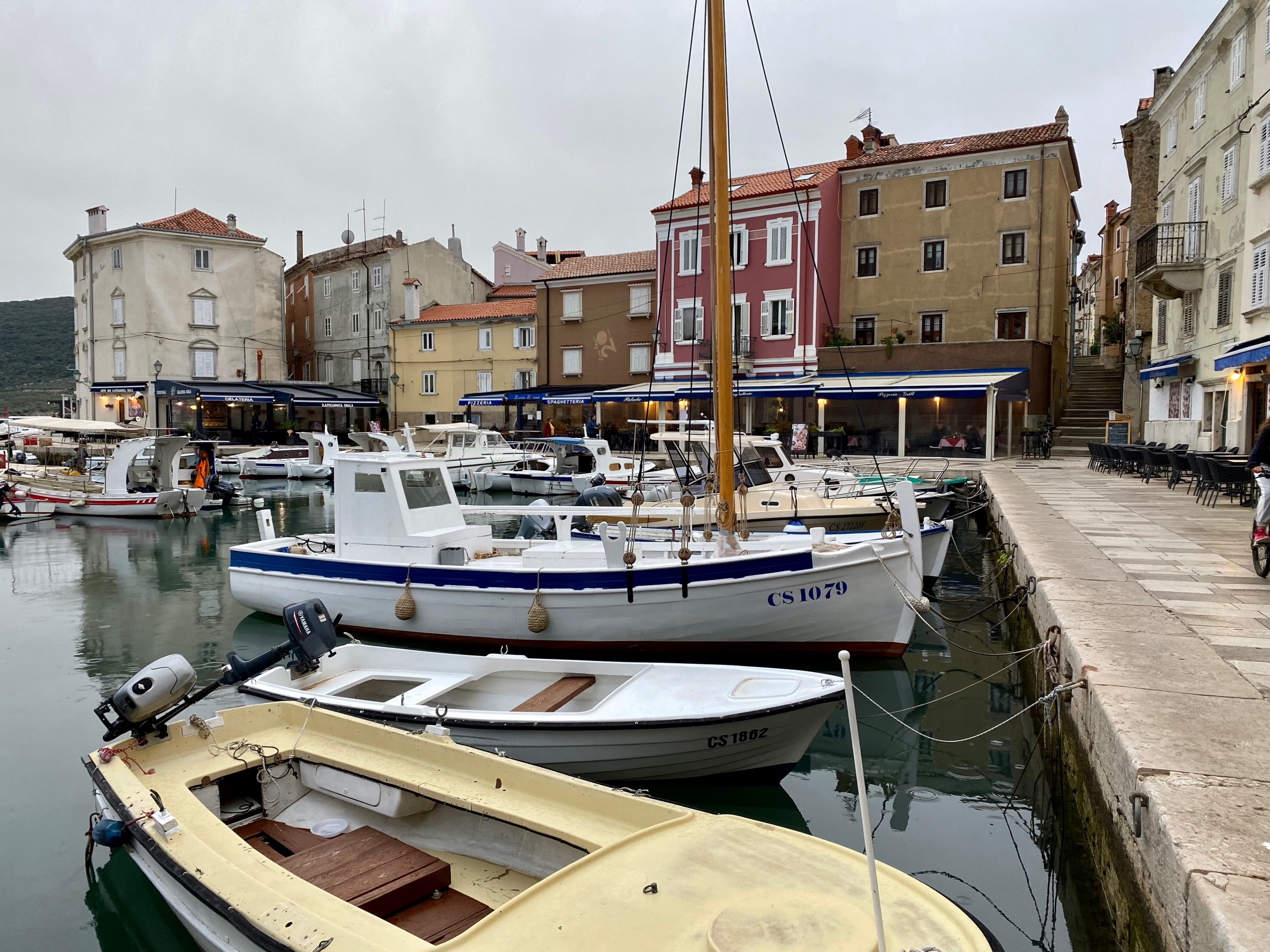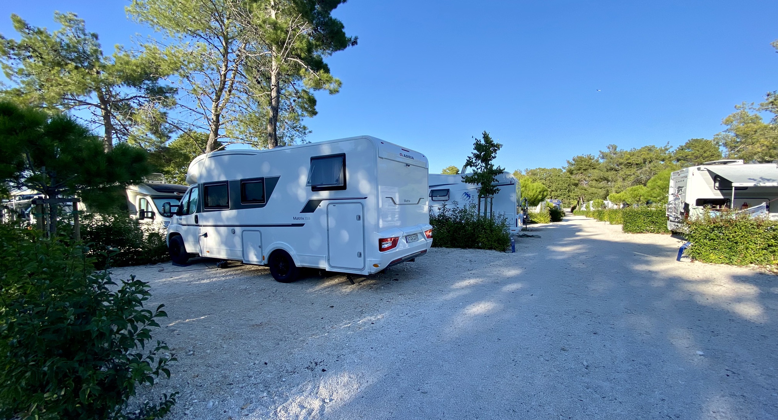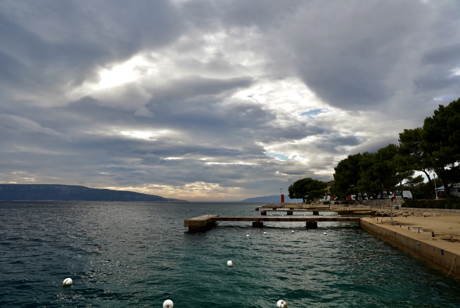 Es ist zum verzweifeln, wir wachen bei Regen und gemütlichen 11°C auf. Okay, da kann die „Terrassengarnitur“ in der Heckgarage bleiben. Wir frühstücken etwas betreten drinnen. Der Wetterbericht verheisst nichts Gutes für heute, es soll regnerisch bleiben, verdammt wir wollten Badeurlaub mit Sonne und so. Wir lümmeln im WoMo und lesen den ganzen Tag. Am Nachmittag halten wir es nicht mehr aus, die Beine kribbeln schon und wir laufen am Strand zum Hafen von Cres und essen ein Eis. Wenn es morgen nicht besser wird verschwinden wir hier, na mal sehen…