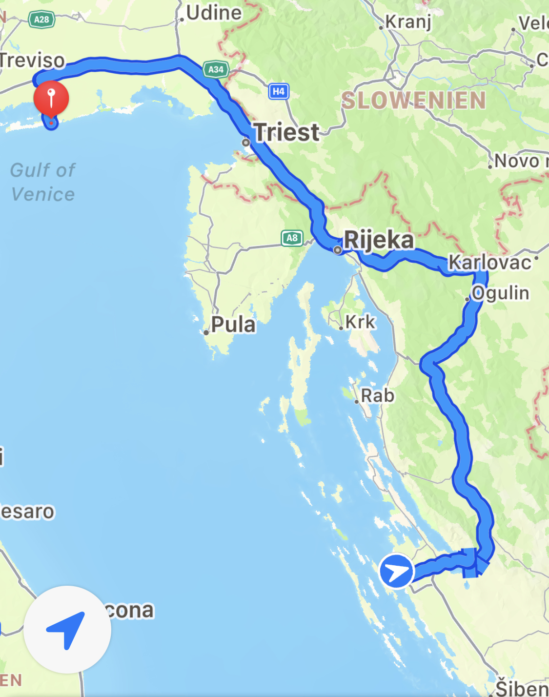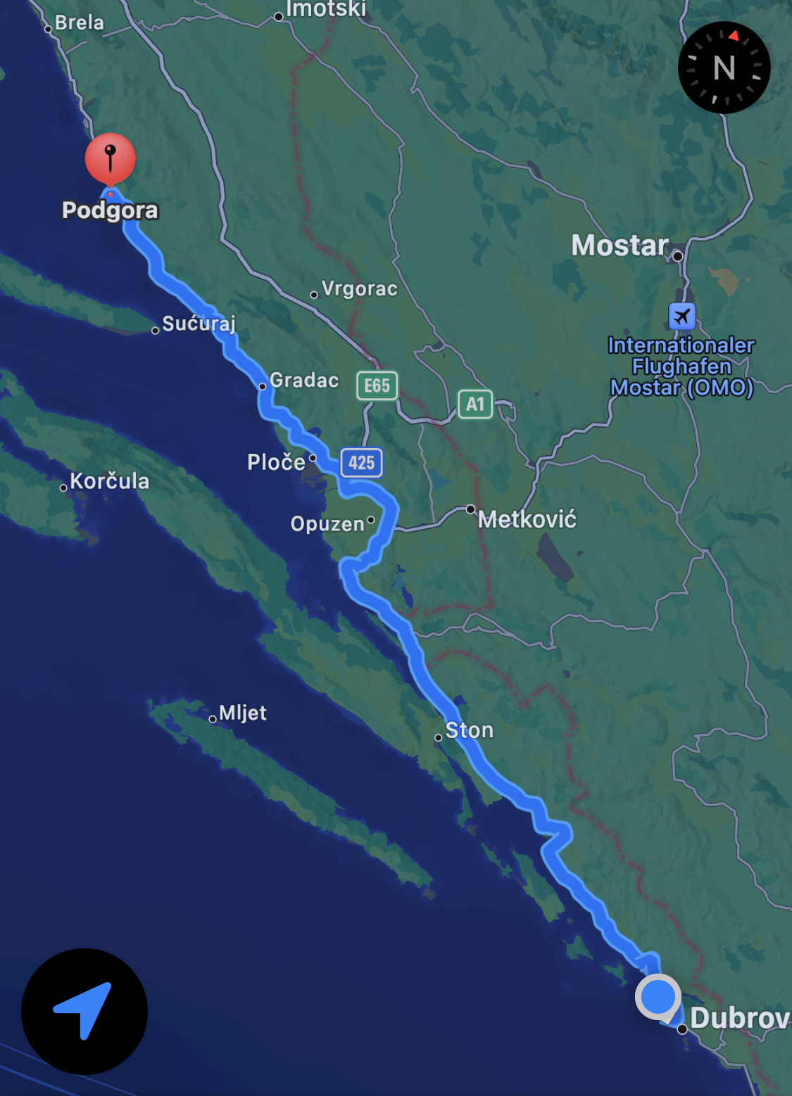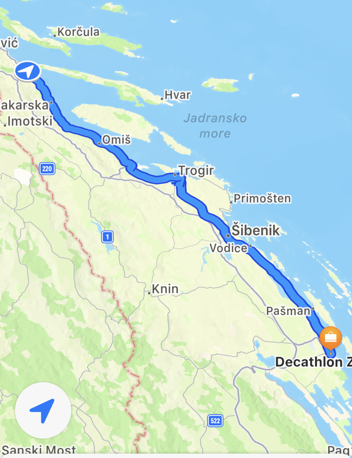 Guten Morgen und Auf Wiedersehen Zadar. Da ja heute „Wahltag“ in der BRinD ist, machen auch wir von unserem Wahlrecht gebrauch und entscheiden uns heute „zeitig“ aufzubrechen. Unser Tagesziel ist Dubrovnic. Unser erster Stopp heute ist der Decathlon in Zadar, ich will ein StandUpPaddle (jaaaa…so haben wir auch geschaut - selbst am Sonntag ist hier alles sperrangelweit offen). Und, wer hätte das gedacht, haben die nicht, auch der benachbarte InterSport nicht. Am Meer - ich bin aber auch blauäugig. Also tingeln wir, ohne „SUP“ in aller Seelenruhe die Küstenstrasse NR D8 runter.