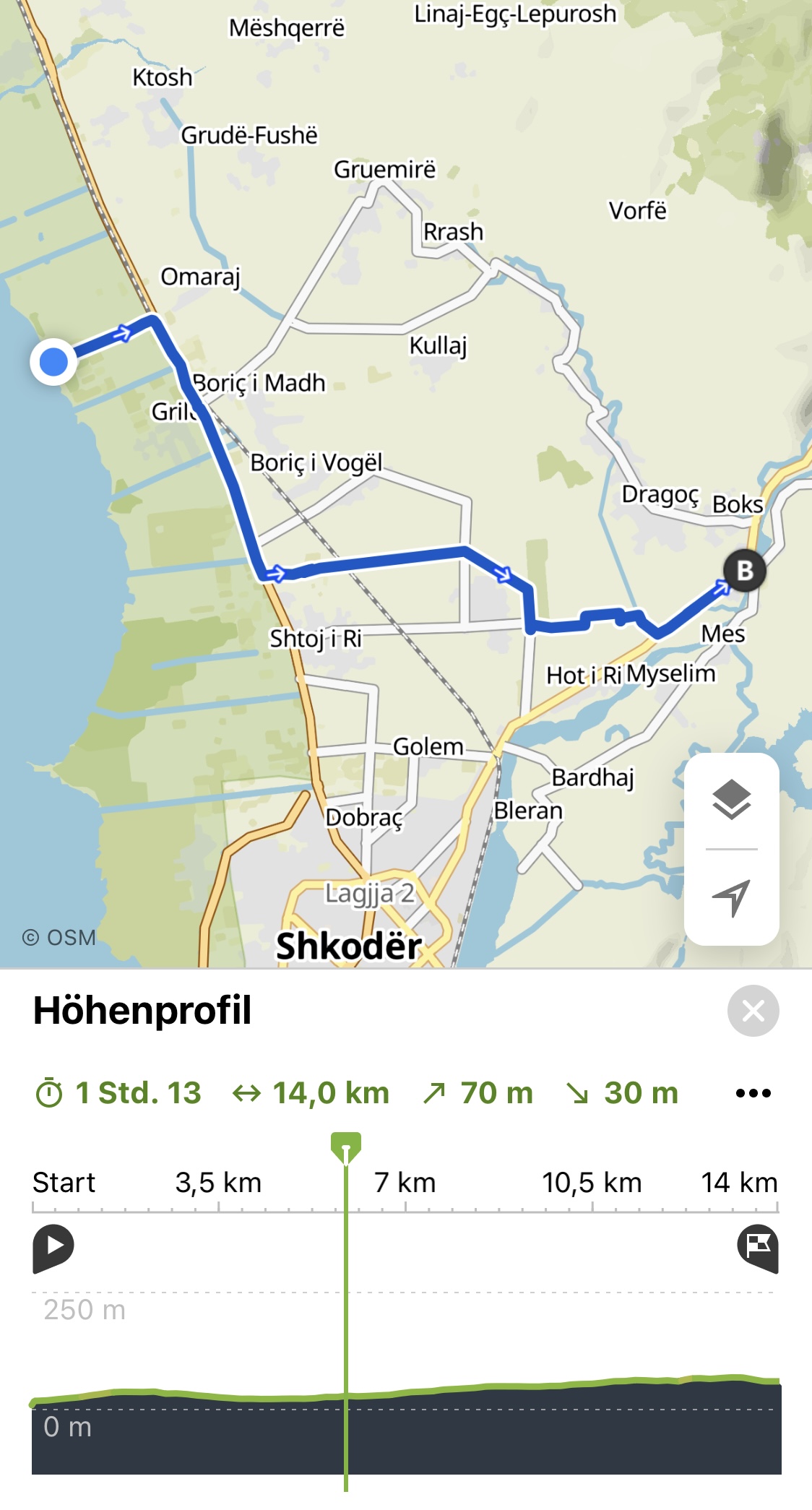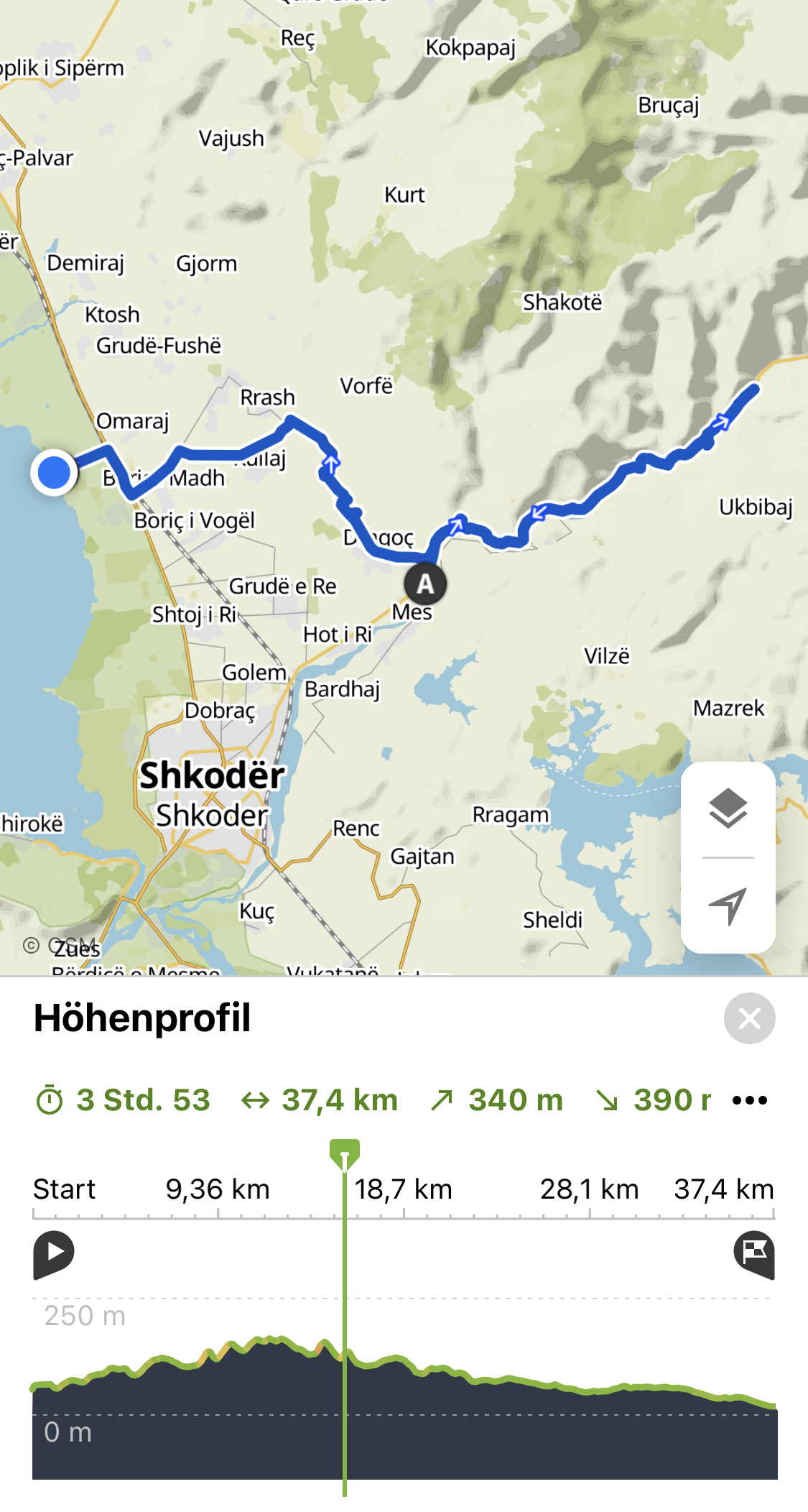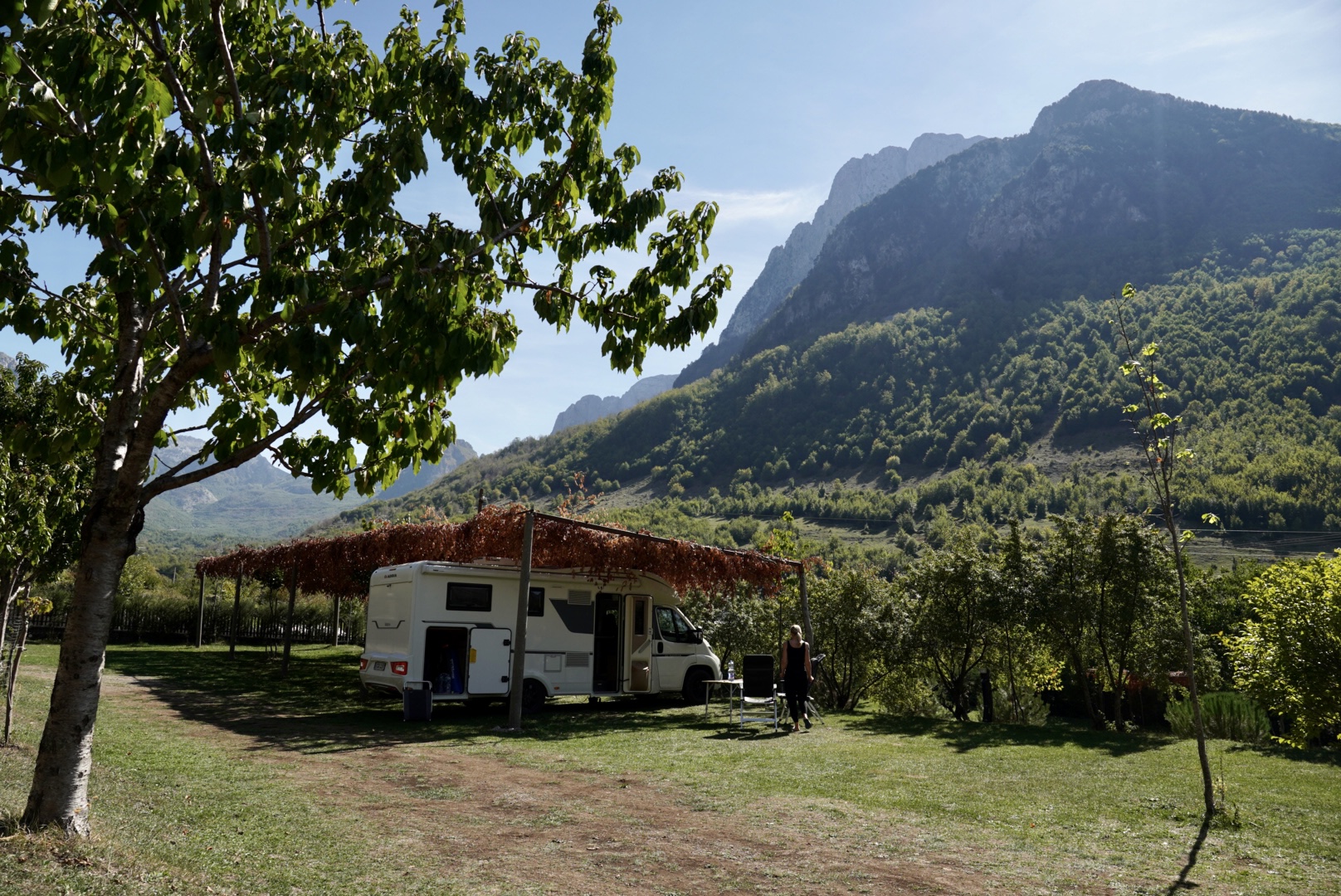 Wir verlassen heute Ulcinj. Der Platz ansich geht, aber wir wollen endlich Albanien sehen. 08:30 Uhr rollen wir vom Platz. Schnell erreichen wir die Grenze, warten kurz und ohne Probleme können wir passieren. Unsere „Genesenen-Zertifikate“ werden kurz bewundert aber sie scheinen zu passen. Wir fahren einmal quer durch Shkodër und man muss schon ganz schön aufpassen, tiefe Gullideckel, Querrillen, hecktischer Verkehr, Radfahrer und quirllige Fußgänger buhlen um Aufmerksamkeit. Auffällig ist tatsächlich, dass hier quasi jeder Zweite einen Mercedes fährt. Stand so schon im Reiseführer, aber lustig wenn man es live sieht. Kurzer Schreck als wir in die Zufahrtsstraße zum Camping Resort Shkodër einbiegen - einzigste Zufahrt gesperrt, weil die Straße gebaut wird. Wir sollen einfach draufzufahren und an der Seite warten bis die Straße an uns vorbeiverlegt wird. Ich nutze die Wartezeit und pflücke Hagebutten, die werden getrocknet und zuhause zu Vitamin-C-Pulver verarbeitet. Die Jungs sind recht zügig und so können wir die letzten Meter auf der frisch verlegten Straße zurücklegen. Ja, der ganze Teer klebt jetzt am Auto - mist - irgendwas ist ja immer.