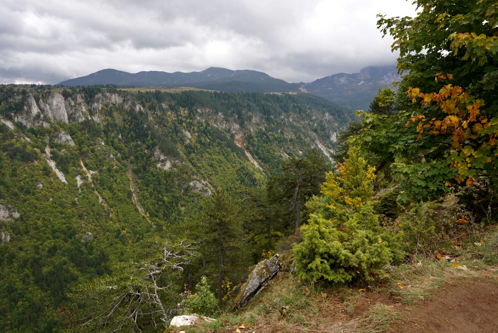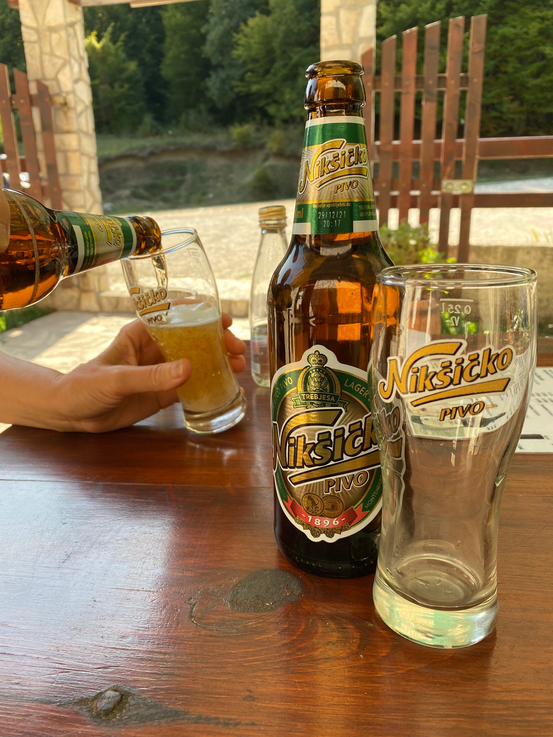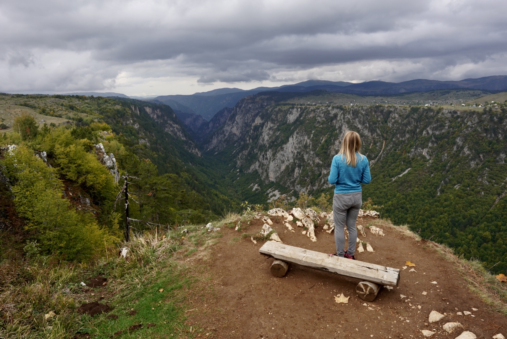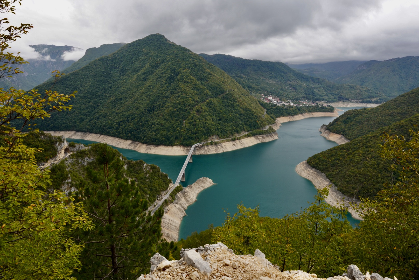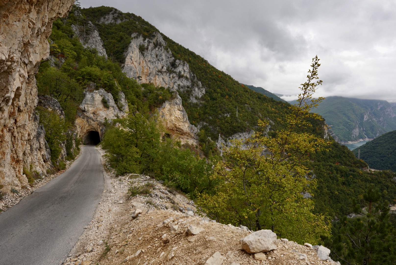 Unser erstes Tagesziel ist die Tara-Brücke. Uns erwartet, nach einer kurvenreichen Abfahrt, ein super Blick auf ein gigantisches Tal - mit Tara-Brücke. Wir spazieren einmal rüber und nüber und sind schwer beeindruckt. Wir fahren wieder zurück in Richtung Zabljak, hier soll uns ein weiterer Teil der „Panoramic Route N°1“ zur Taraschlucht im Dormitorgebirge bringen. Die Straße beginnt quasi einspurig und wird in ihrem 50 km langen Verlauf auch nicht wirklich breiter. Die Strasse ist so breit wie eine Kuh lang. Katja sagt: „…das ist wie Bergsteigen, nur eben mit Wohnmobil.“ Auf der echt abenteuerlichen Strecke kommen uns ausser zwei Bikern niemand entgegen, zum Glück, Platz zum ausweichen ist hier nicht wirklich. Wir genießen wunderbare Ausblicke, Katja produziert literweise Angstschweiß und reißt fast die Haltegriffe ab. Sonst schön und das Wetter spielt auch mit. Auf einem Hochplateau finden wir eine kleine Gaststätte die noch geöffnet hat und fragen nach Lamm, das soll hier eine lokale Köstlichkeit sein und wird überall angepriesen - hat aber keiner, auch hier nicht. Also die letzten Serpentinen runter ins Tal zur M-18 wieder Richtung Nikšić (wo das einzigste aber echt gute Bier Montenegro´s gebraut wird).