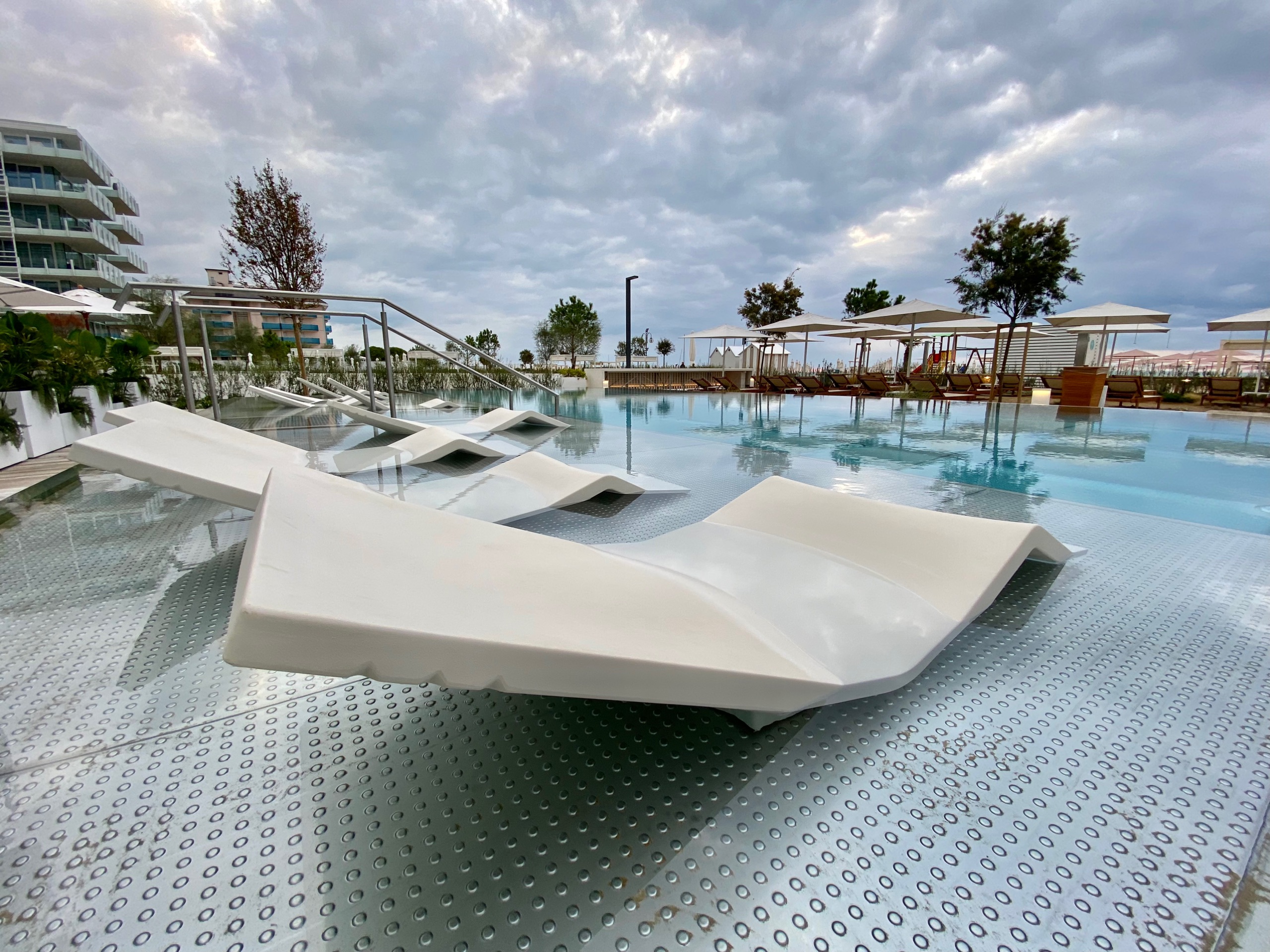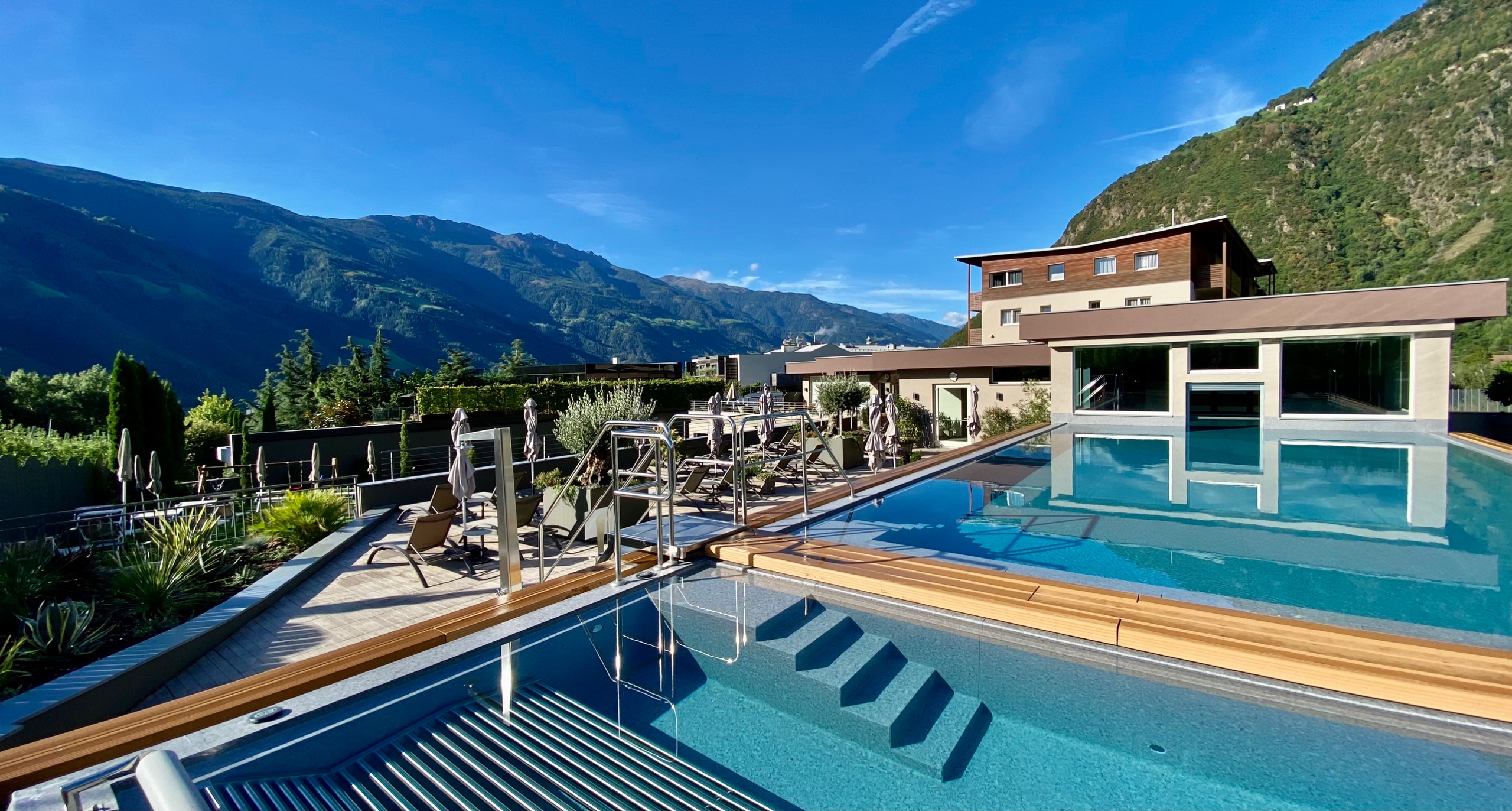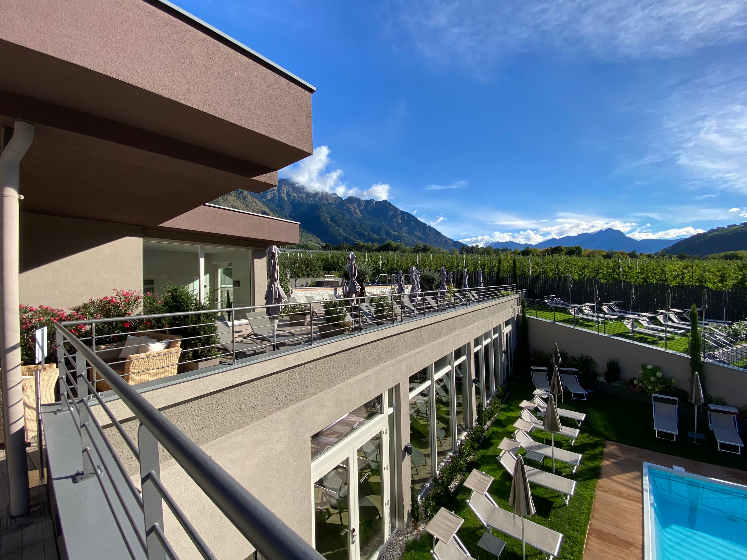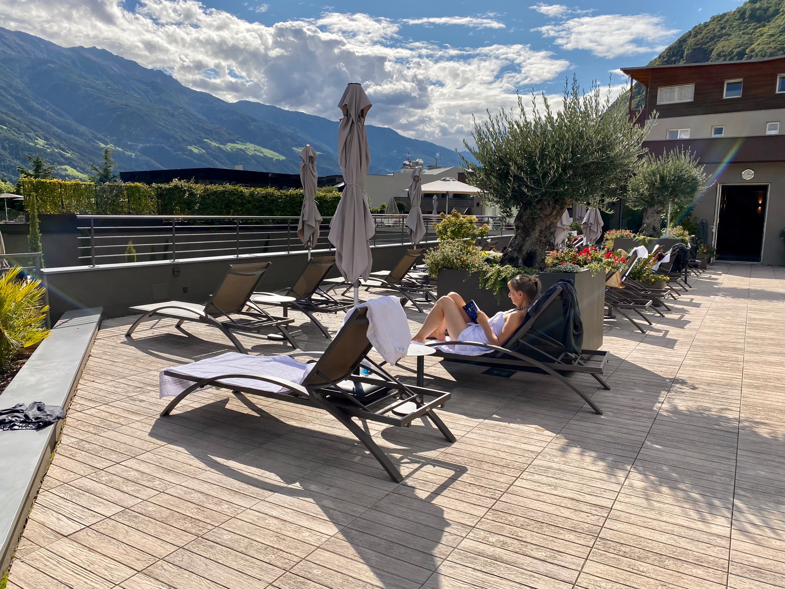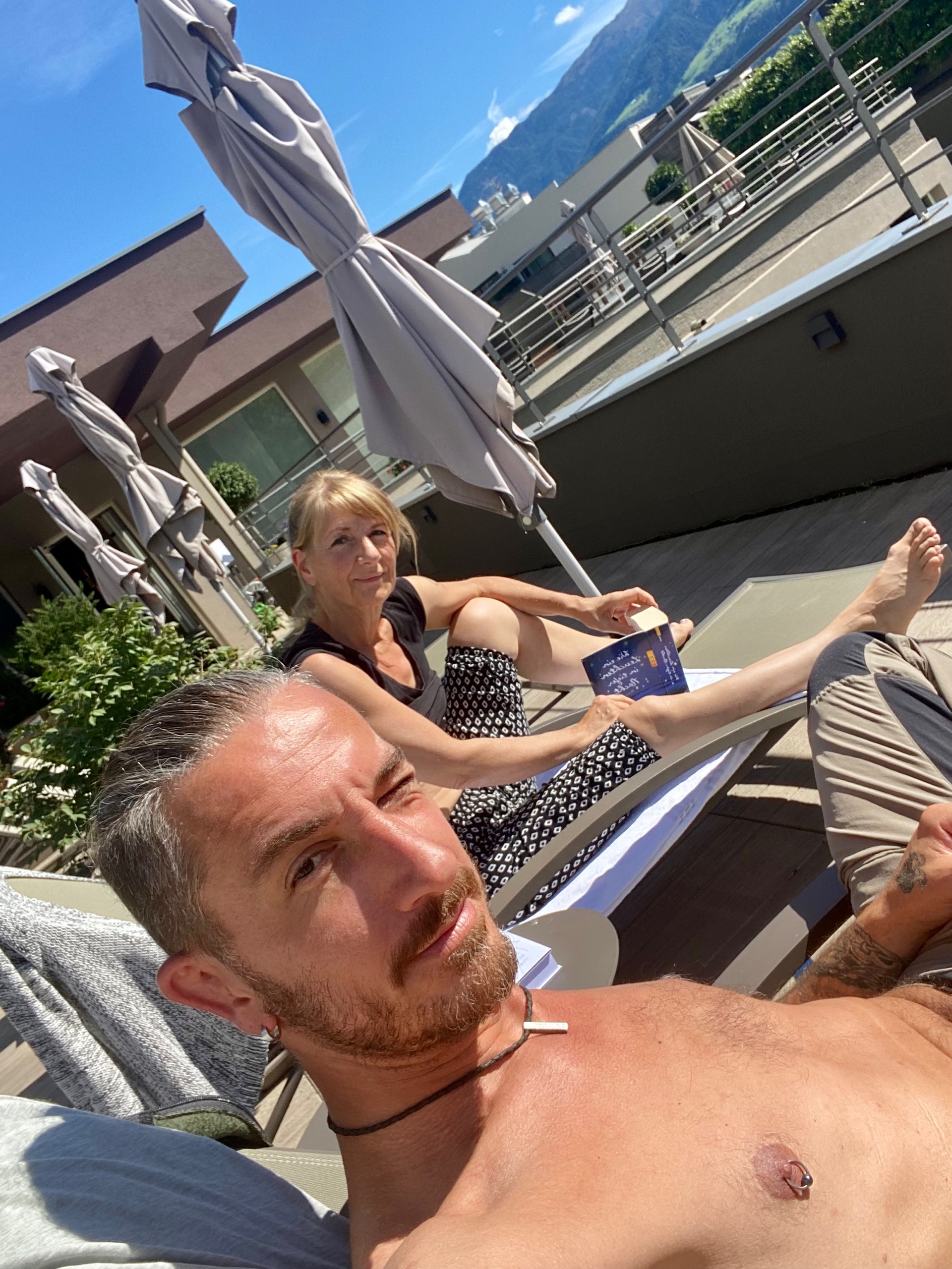 Guten Morgen Südtirol. Wir stehen heute besonders früh auf. 06:30 Uhr ist Schluss mit Schlafen. Es hat die ganze Nacht geregnet, aber dafür ist es jetzt wunderbar klar und kein Wölkchen ist am Himmel zu sehen. Kalt ist es aber um die Zeit auch noch. Also bereiten wir mit Peter zusammen den Außenbereich vom Pool vor (Liegen abwischen, Blüten aufkehren, Schirme richten und so Zeugs) und starten unseren ersten Fototermin. Kurz vor 08:00 lässt sich dann auch schon die Sonne blicken. 09:00 haben wir das Wesentliche im Kasten. Auf zum Frühstück, dann warten wir dass Peters Personal die Terrasse schön hergerichtet hat, denn dann kann es weiter gehen. Schliesslich wollen wir heute noch weiter nach Lido de Jesolo. Julia van Deines von Falkensteiner erwartet uns schon.