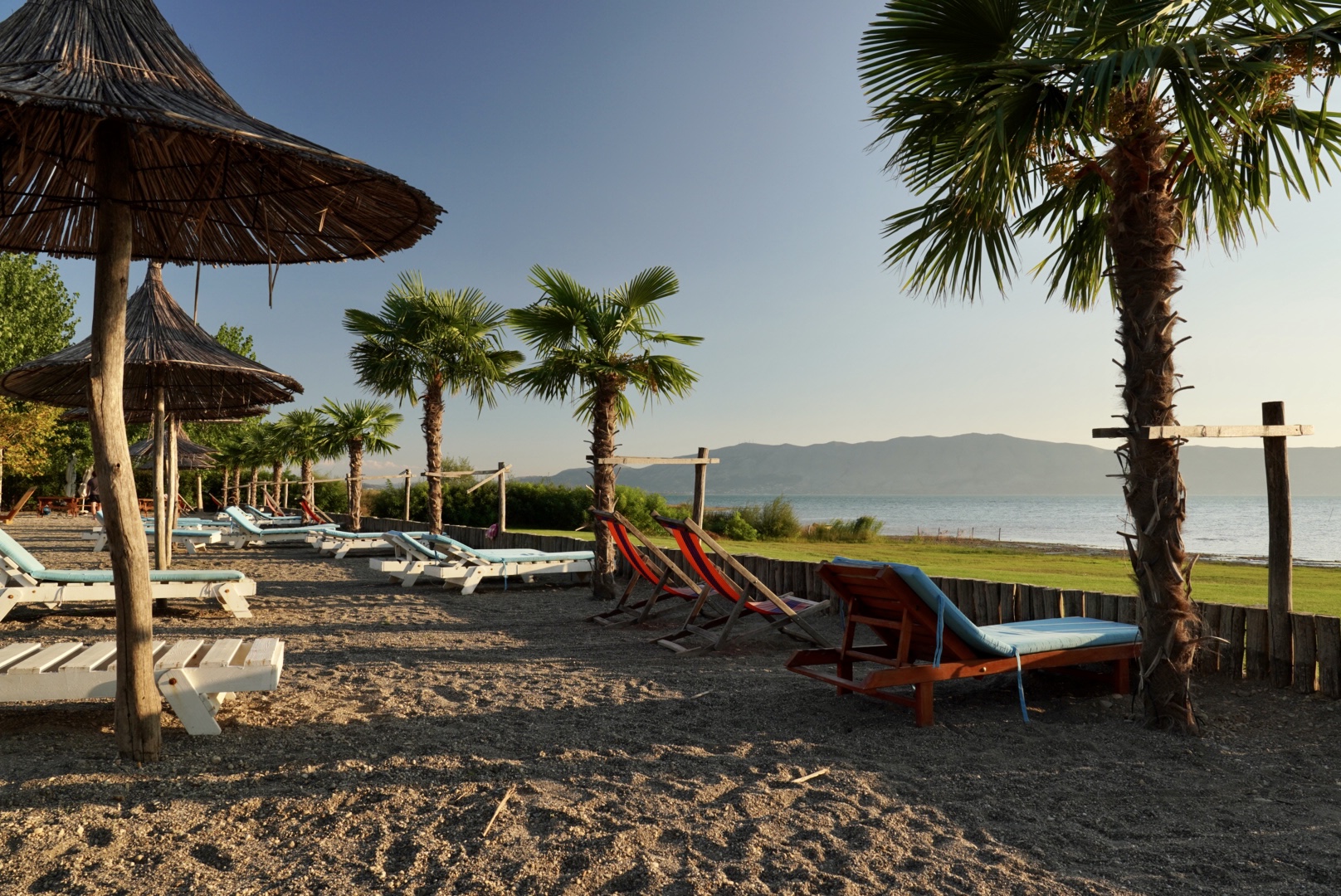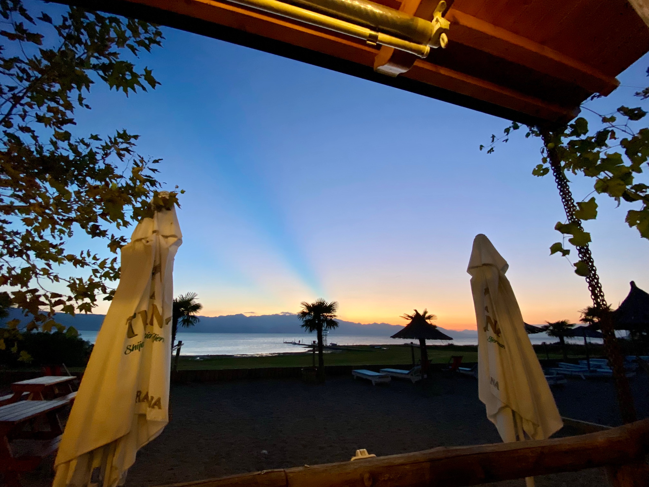Der Platz ist sehr schön, kostet 17€/Nacht. Wir finden einen tollen Stellplatz in Wassernähe unter einem Weinrebendach. Wasseranschluss direkt am Platz und Strom. Der Skutarisee ist schön und wir haben einen tollen Blick auf die Berge. Den Nachmittag vertrödeln wir am Strand, Bierchen dazu und Aperol Spritz - beides für 5,50 €, das passt gut. Abendessen gibt es in der Strandbar - Seafood-Platte und Wein. Heute werden wir nicht alt, 21:00 Uhr gehen uns die Lichter aus.