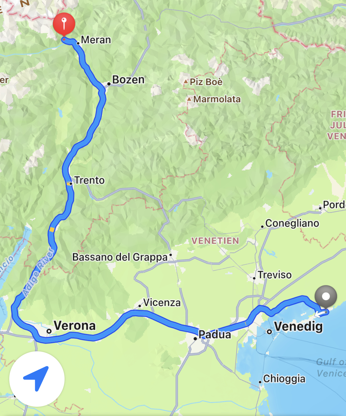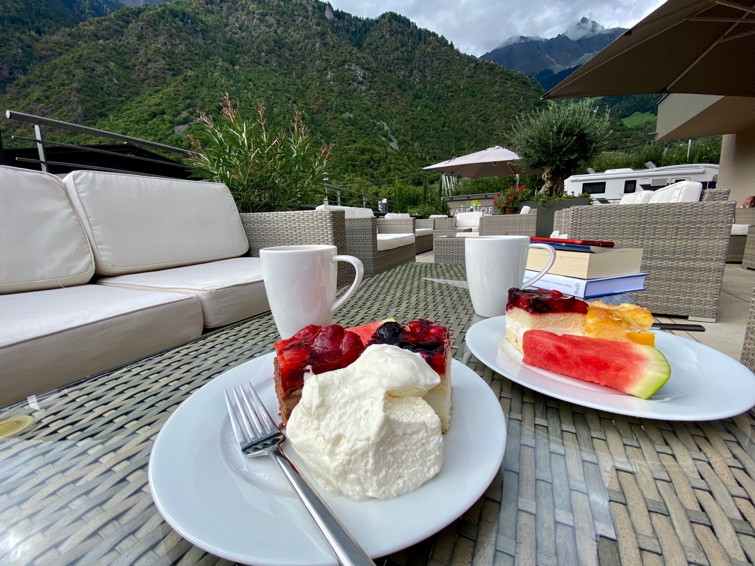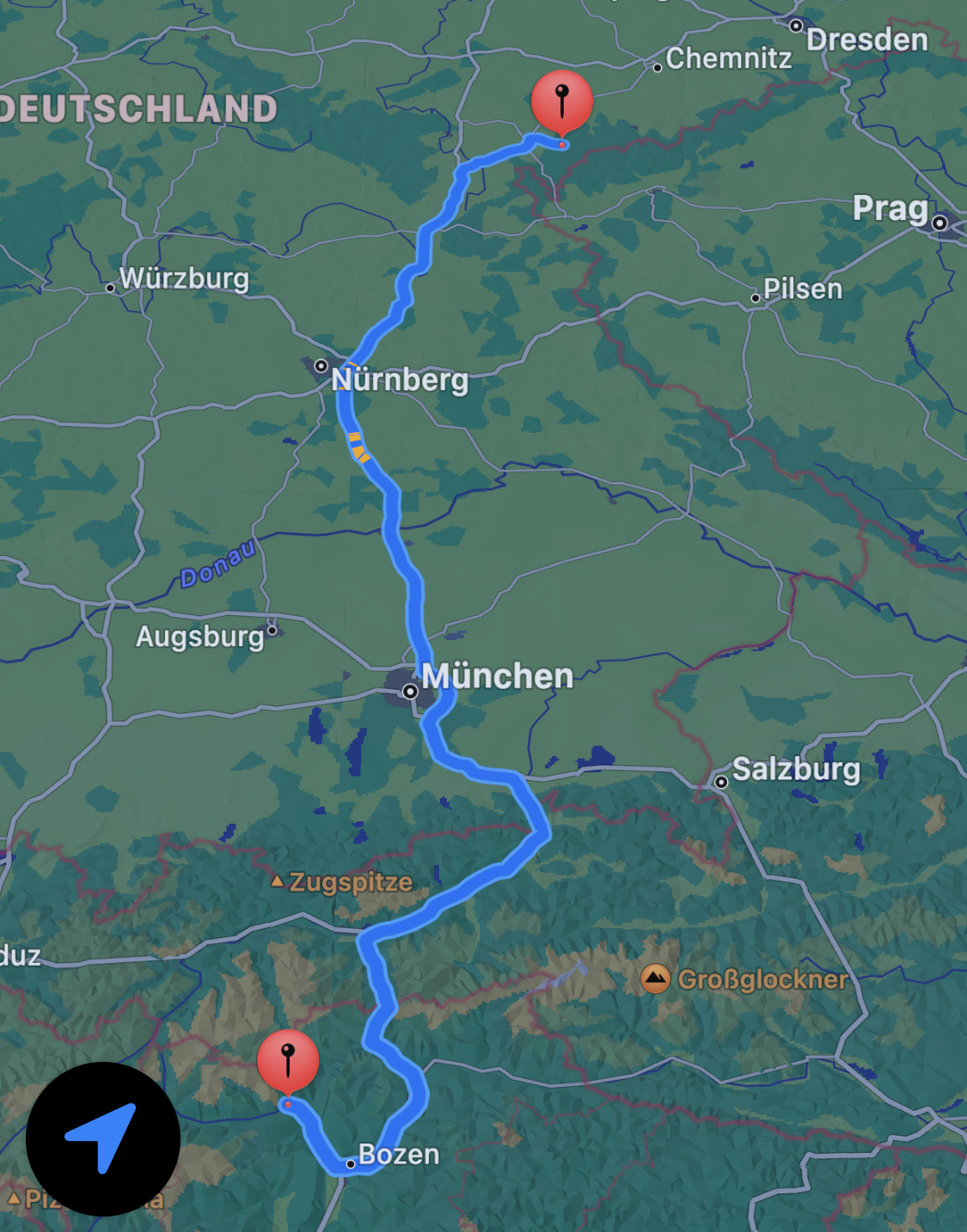 Weil wir heute nicht wirklich Stress haben, frühstücken wir ganz entspannt mit unseren Kindern, packen die letzten Sachen ins Wohnmobil und verteilen Aufgaben und „Benimm-Regeln“. Bei so einer langen Reise fällt es besonders schwer in der heutigen Zeit „loszulassen“. 12:45 Uhr starten wir dann in Richtung Süden. Wir wollen noch pünktlich im Hotel Waldhof zum Abendessen ankommen, also fahren wir zügig durch. Wir tanken in 🇦🇹 Österreich für 1,319 €/l und weiter gehts. 20:15 Uhr kommen wir dann noch rechtzeitig aber schon im Dunkeln in Partschins an. Wir gönnen uns zum Abendessen eine gute Flasche Wein und genießen unseren Urlaubsstart. Mit Peter vom Hotel besprechen wir die Einzelheiten für den geplanten Fototermin am Montag - hoffentlich findet das Wetter unsere Pläne gut.