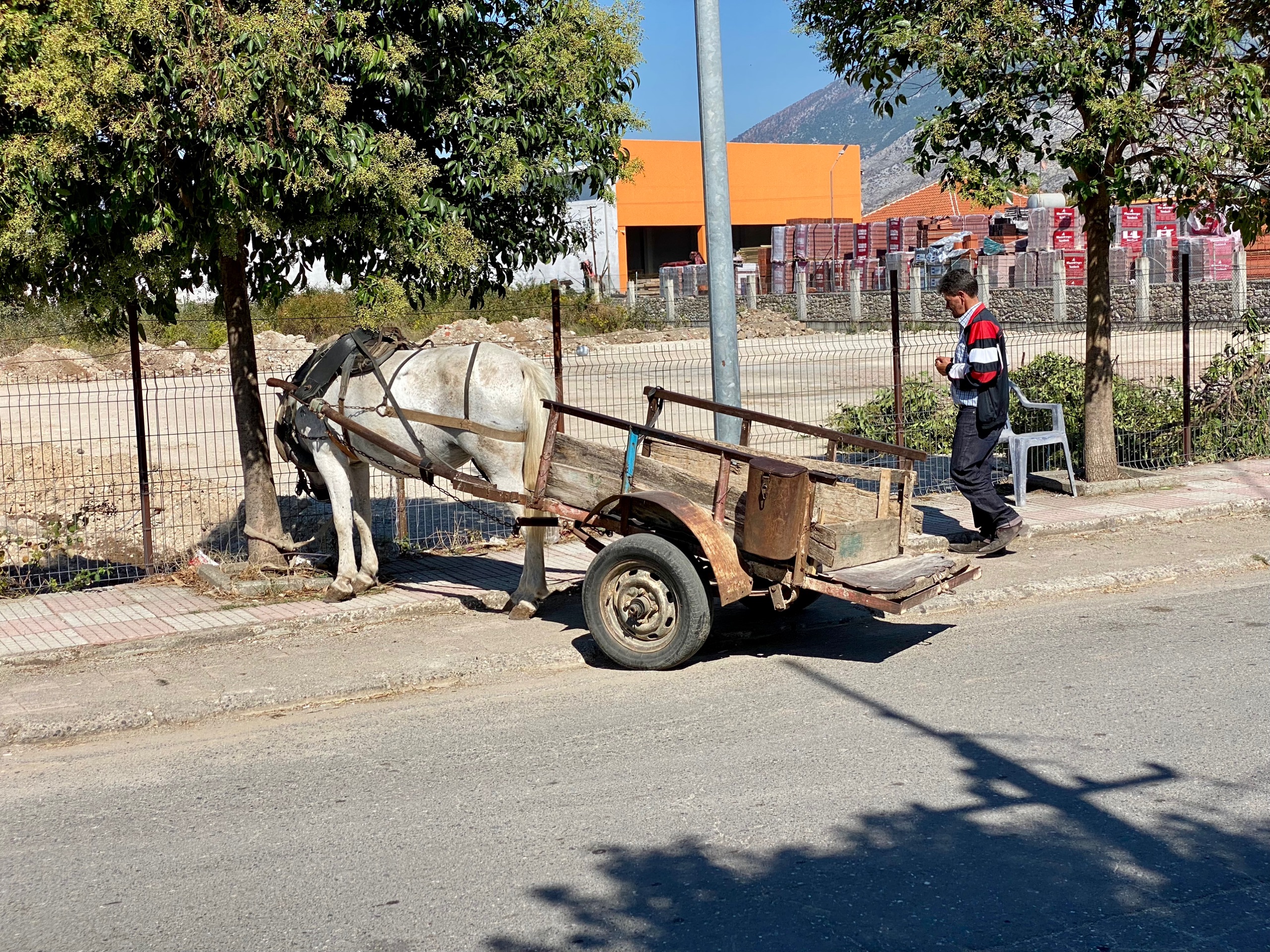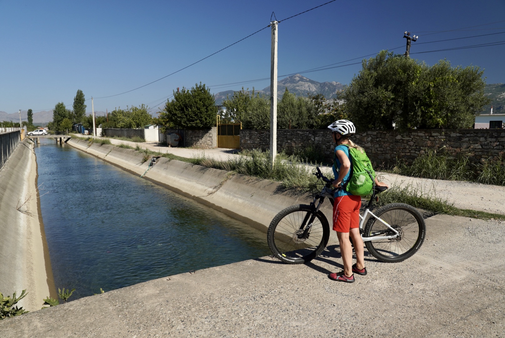 Das Wochenende - ohjaaa endlich Wochenende - beginnt windstill und mit stahlblauem Himmel. Der Skutarisee changiert vor uns in einem schönen hellblau. Wir frühstücken Kaffee mit Feigen und entschließen uns das Frühstück durch den Erwerb eines Weissbrotes zu erweitern. 1,-€ für ein ganzes Brot. Oh mann. Wir packen bisschen was zusammen, weil wir heute mit den Rädern an die Mesi-Brücke radeln wollen. Badesachen, Wasser und Nektarienen. Los gehts um 10:00 Uhr. Wir radeln am Stadtrand von Shkodër entlang in das entlegene Tal wo sich die Mesibrücke befinden soll. Unterwegs ich unglaublich viel Müll, echt überall - man wirft hier alles was nicht gebraucht wird in die Landschaft, traurig aber real. Teils wird der Müll mitten auf dem Feld verbrannt, sieht dann besser aus aber stinkt nur noch mehr. Da sind wir massiv verwöhnt, und hier sieht man dann dass es wohl in der Welt nicht daran liegen kann dass die Deutschen Plastikstrohhalme benutzen (die man wirklich nicht braucht).