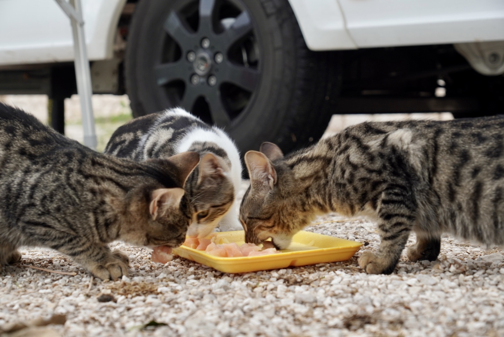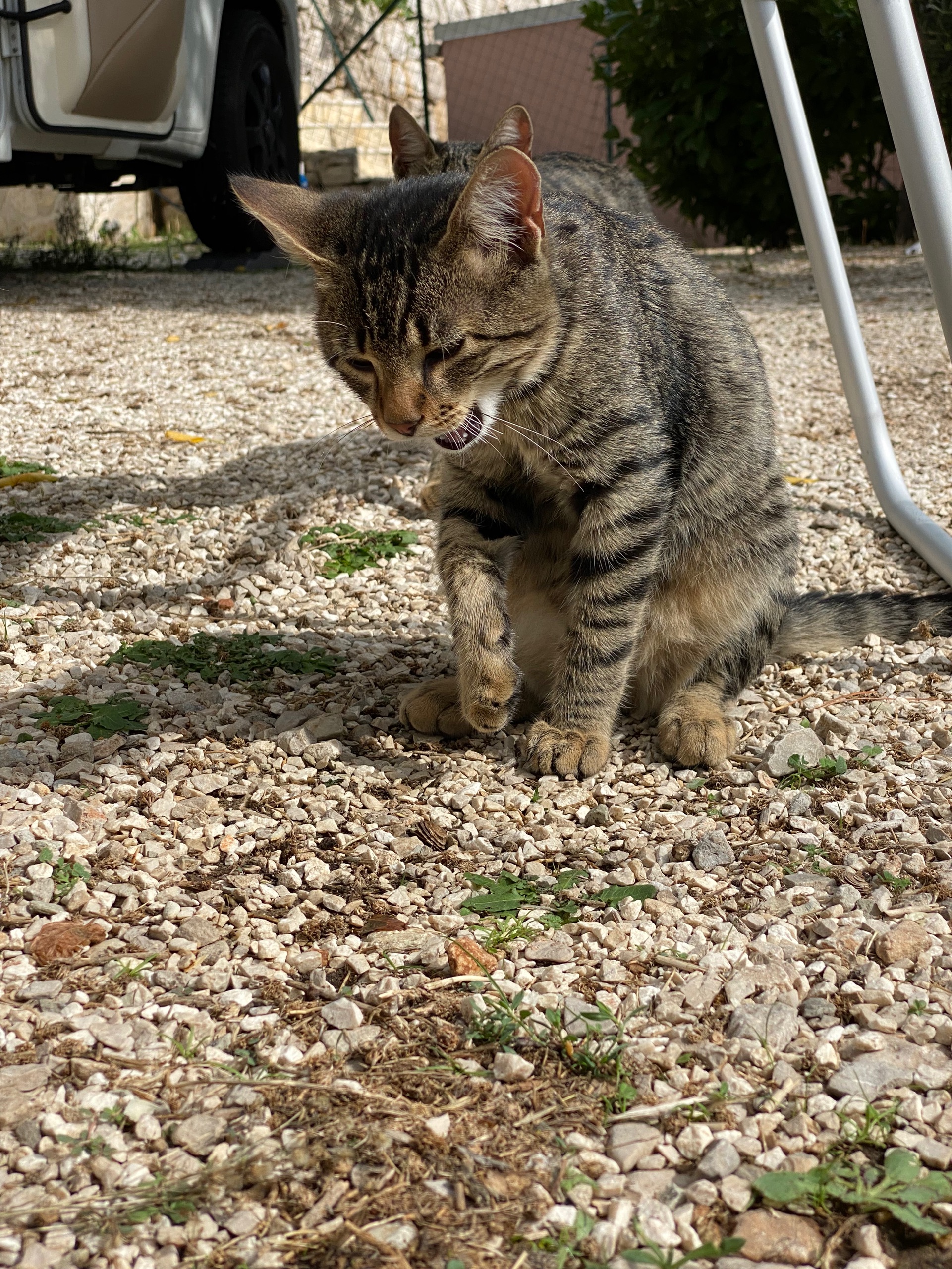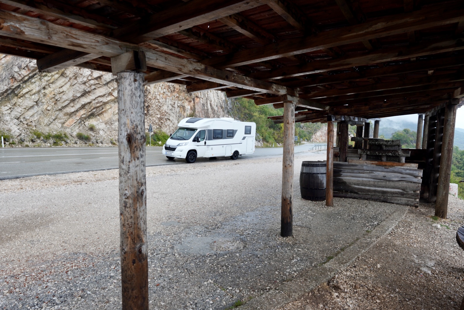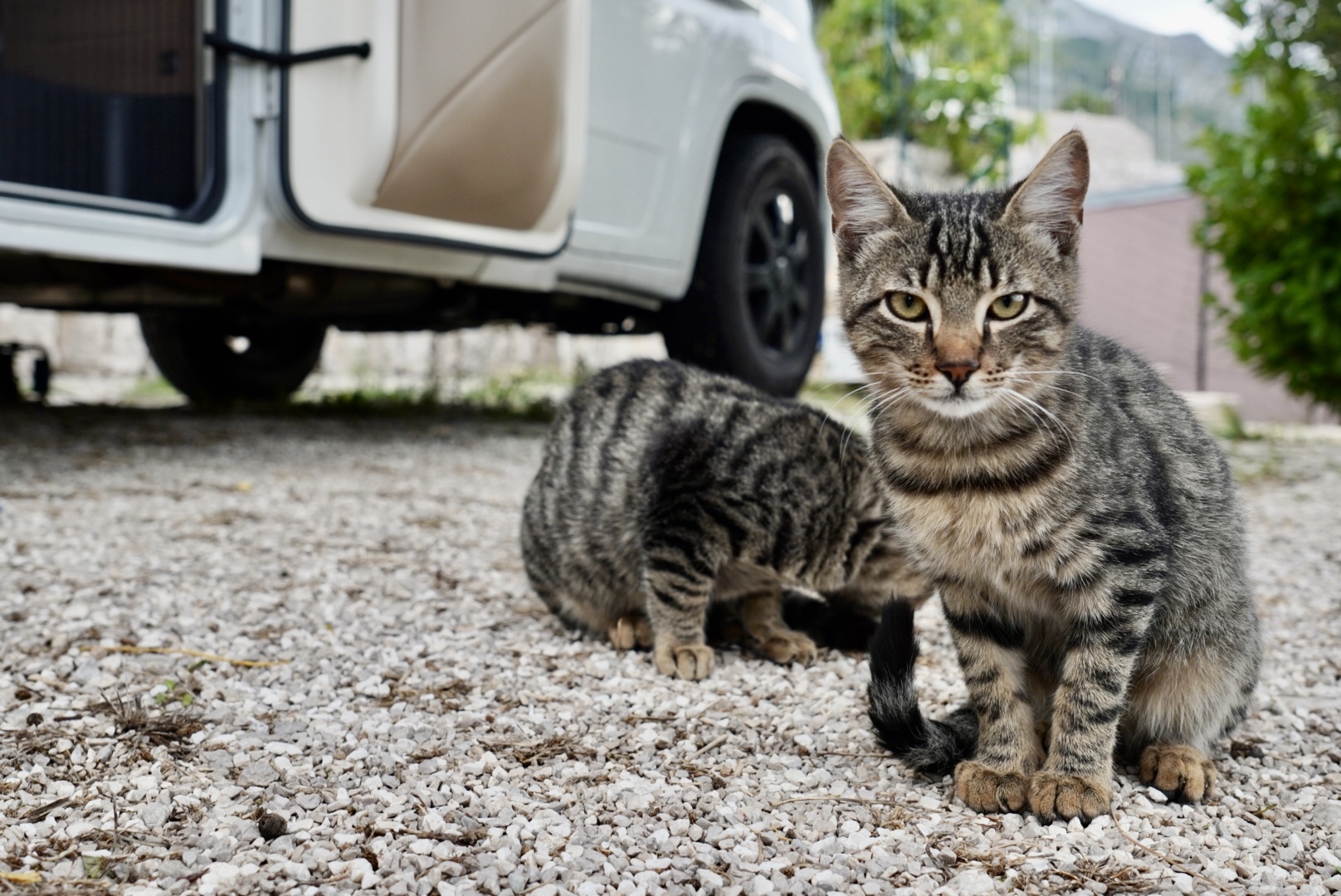 Das Wetter ist heute weiterhin kalt und regnerisch. Wir wollen aber Sonne. Wir wälzen die Wetterberichte und beschliessen abzureisen. Wir füttern nochmal die drei Kätzchen, die schlingen schneller als man das Huhn an der Supermarktkasse zahlen kann. Wir freuen uns, und die dreisten Drei denk ich auch. Ich überlege kurz ob Katja es merkt wenn ich die drei Fellbündel mitschmuggel. Wir verlassen gegen 10:00 Uhr dem Campingplatz und brechen auf, in Richtung der Insel Cres. Wir wissen dass wir die Strecke nicht an einem Tag schaffen und wälzen die Park4Night-App. Wir finden am Abend ein Restaurant mit kostenlosem Stellplatz und essen dort Lamm mit Mangold und Kartoffeln. Wir fahren doch noch ein Stündchen und stranden an einem verlassenem Hafen kurz hinter Zadar. Es stürmt inzwischen derartig dass wir Angst haben das uns das WoMo über Nacht umkippt. 9 km weiter stürmt es immernoch, aber wir finden Zuflucht im Windschatten einer kleinen Bude auf dem kostenlosen Stellplatz kurz vor Starigrad.