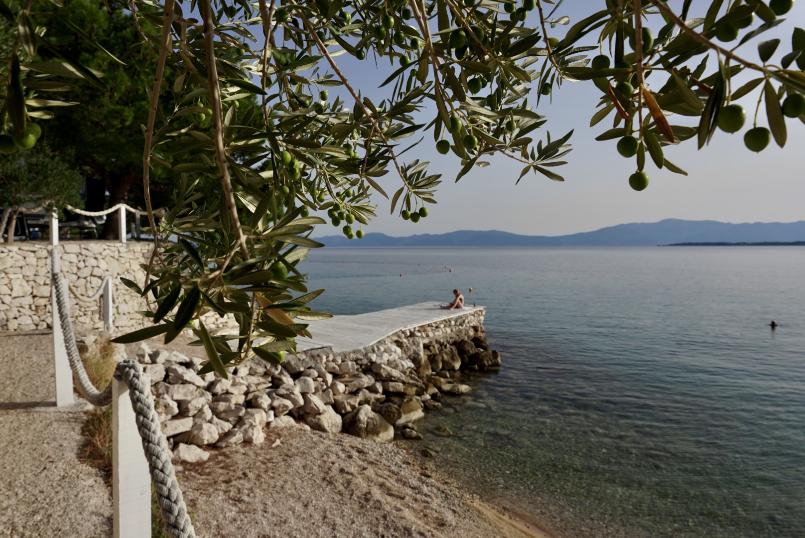 Unterwegs halten wir ein paar mal um die tollen Ausblicke über die schöne Küste zu geniessen. In der Gegend um Ploče stehen unmengen an Händlern für frisches Obst und Gemüse. Wir halten da natürlich auch an und kaufen Knoblauchzopf und Olivenöl, 5kg Nektarienen, Feigen mit Mandeln - alles zusammen für 20€, geht schon. Die Gegend hier ist wie ein riesiges Flussdelta und scheinbar auch sehr fruchtbar. Man baut auch Wein an, also halten wir auch noch bei „Rizman“ und kaufen Wein - ja bereits in Flaschen ;-) - echt aus Dalmatien.