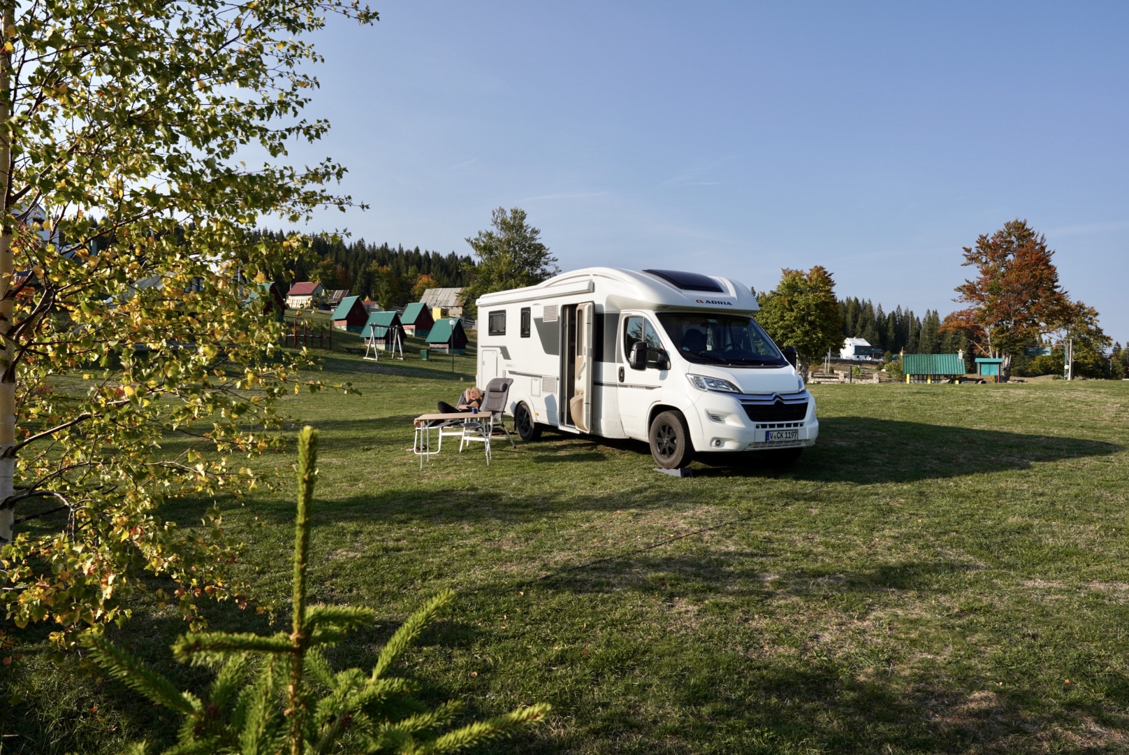 Wir wachen gegen acht Uhr auf und es regnet. Wir schlürfen Kaffee und es lässt langsam nach, der Regen. Wir überdenken den Tagesablauf und entschließen uns zum Aufbruch. Ausschlaggebend waren die kleinen Wolkenlücken und die verheißungsvollen Sonnenstrahlen. Wir duschen noch fix und erledigen den lästigen Aufwasch, Strom trennen und Auffahrkeile weg, dann kann es losgehen.