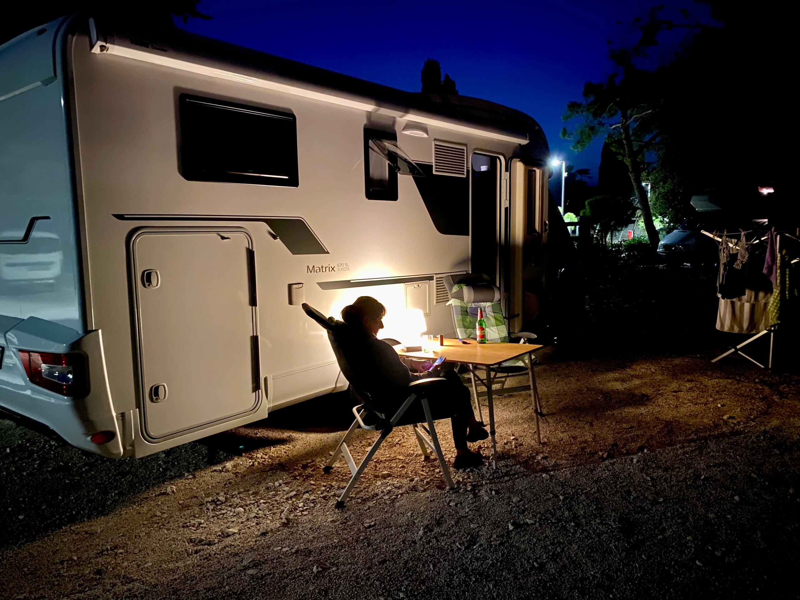 Es wird dann doch erst 14:45 Uhr als wir loskommen. Aber nicht schlimm, wir haben ja nicht direkt Stress. Wir erreichen Lido di Jesolo gegen 19:15 Uhr. Die Fahrt haben wir über Verona und Venedig genommen - es geht einfach „flüssiger“ über die Autobahn. Kostet zwar 18,-€ aber man fährt gechillter. Ausserdem müssen wir mal die Chemietoilette leeren, was in Roveretto Süd geklappt hat.