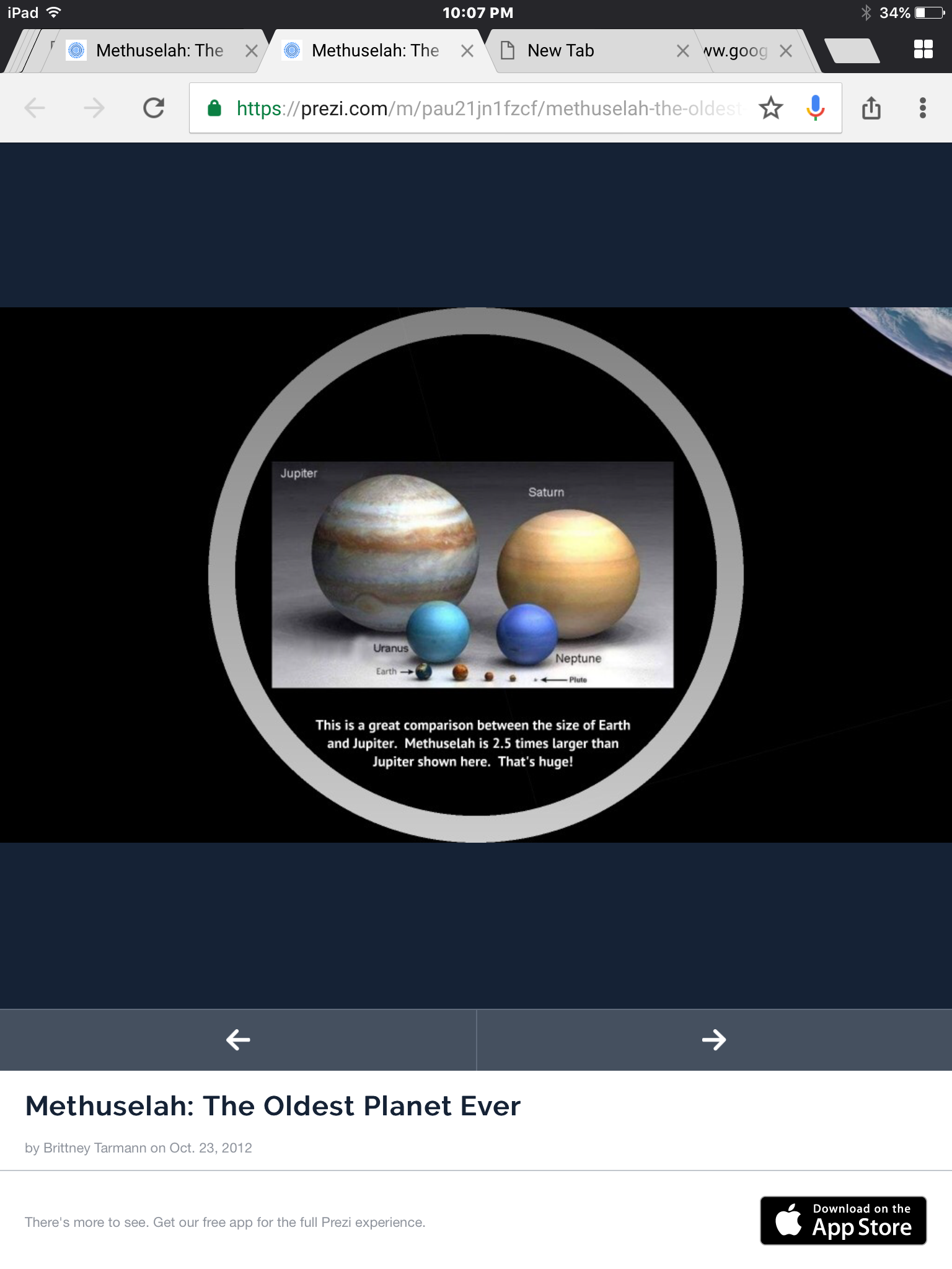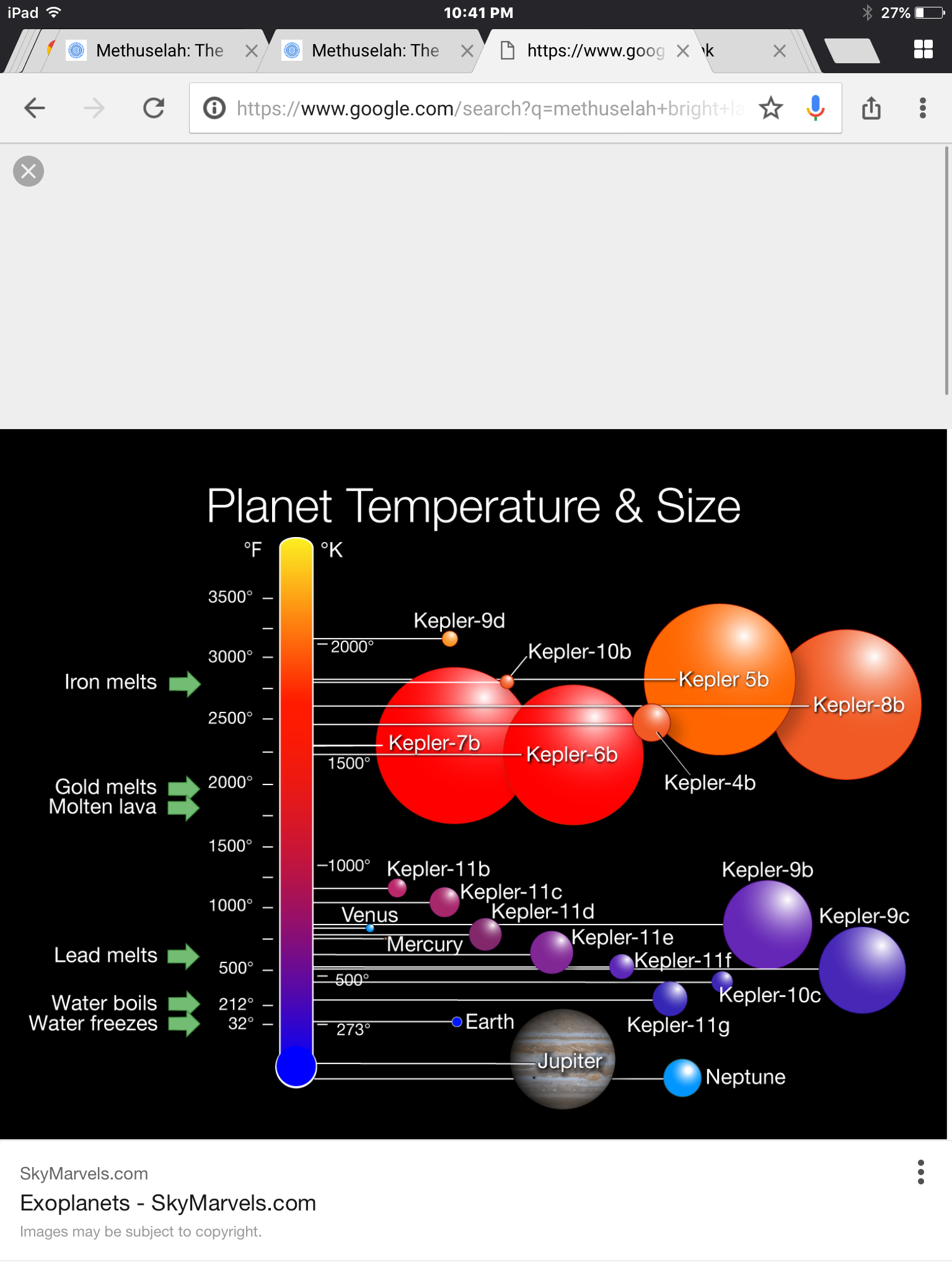 Introducing Methuselah, the oldest blue planet discovered by Donald Backer in 1993. Ten years later, NASA confirmed it as a planet in 2003. It is about 13 billion years old and 12,400 light years away from Earth. NASA scientists are still researching to see if life exists. As of 2017, nothing has been found.