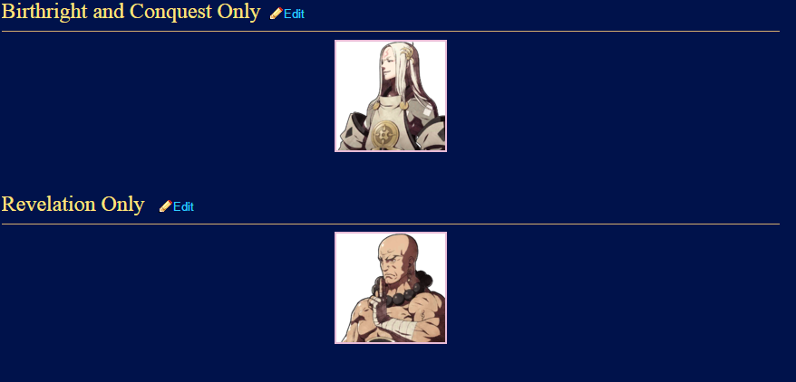 Xander, Camilla, Leo, Elise, Laslow, Peri,Selena, Beruka, Odin, Niles, Effie, Arther, Nyx, Charlotte, Benny, Keaton, Flora, Gunter