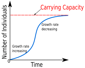 Logistic Growth: Logistic growth is a population under ideal conditions. The graph starts with a slow increase, then as it progresses, the population grows faster (exponential growth). Finally, the growth will slow down and level out at the carrying capacity due to limited resources. Carrying Capacity: maximum number of individuals of a particular species that the environment can normally and consistently support.
