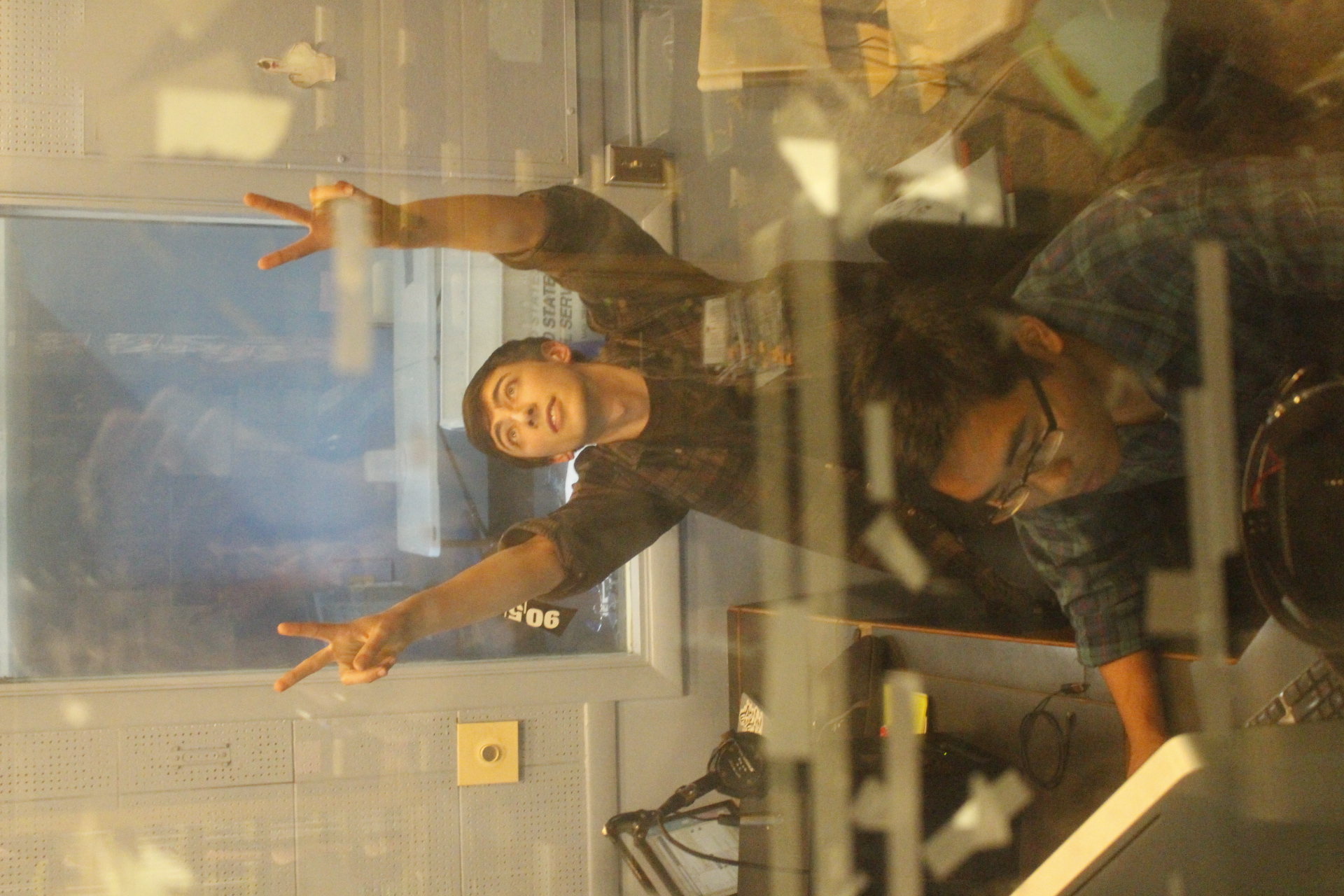 Campus Image: Electronic Music department director David Petrone and KSJS member Nhat-Dzu Bui doing some audio work for a future project.