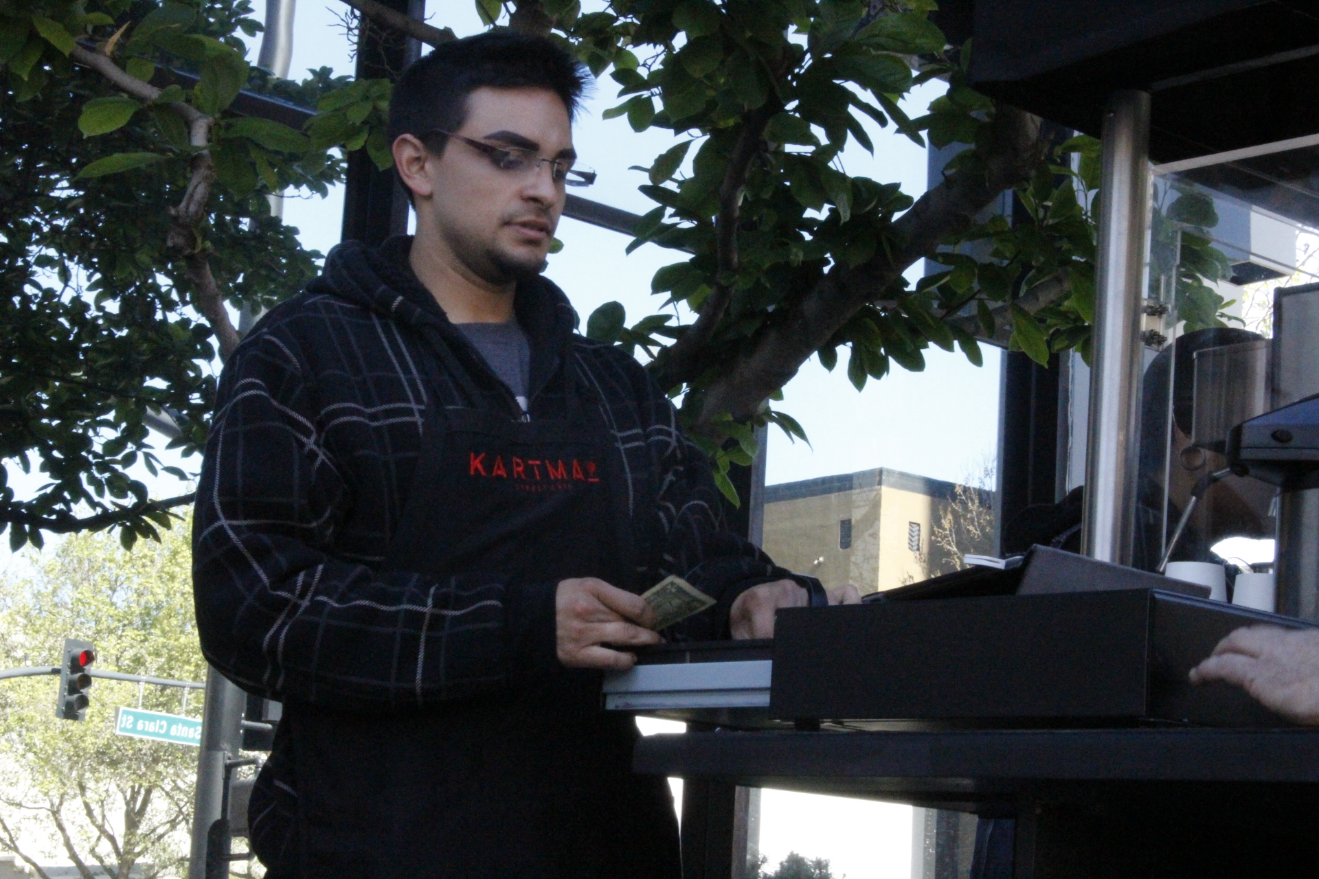 Environmental Portrait: Benjamin De Soto tending change to a customer at Kartma.