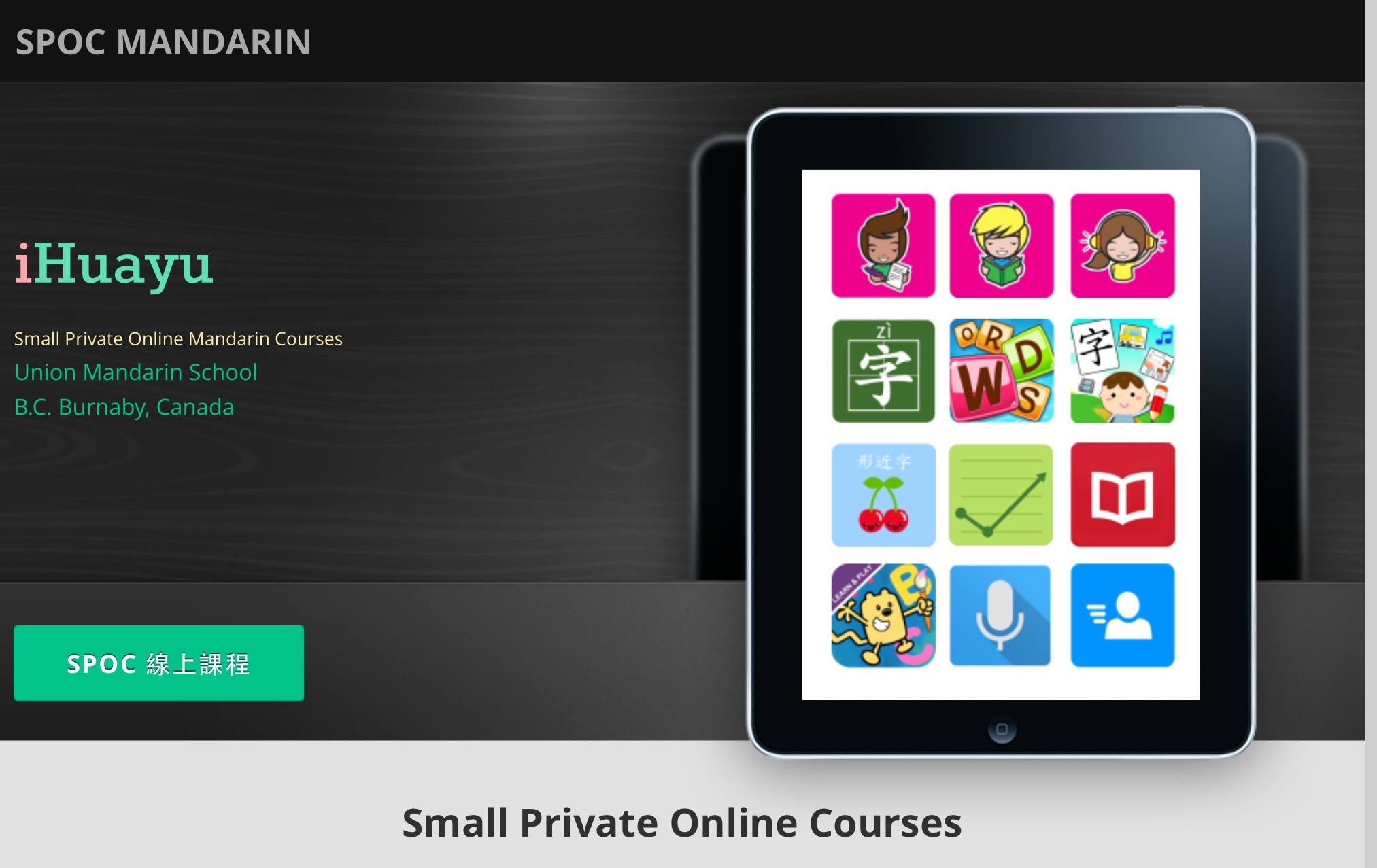 MOBILE SPOCs線上課程 ─ 無縫式行動學習不只侷限在學校,無遠弗屆行動學習延伸至家庭,各類載具iPad/iPhone/Smart Phone/Android Pad輕鬆上網,本校行動翻轉學習iHuayu SPOC課程,總計三十九門課程新學年全新上線。