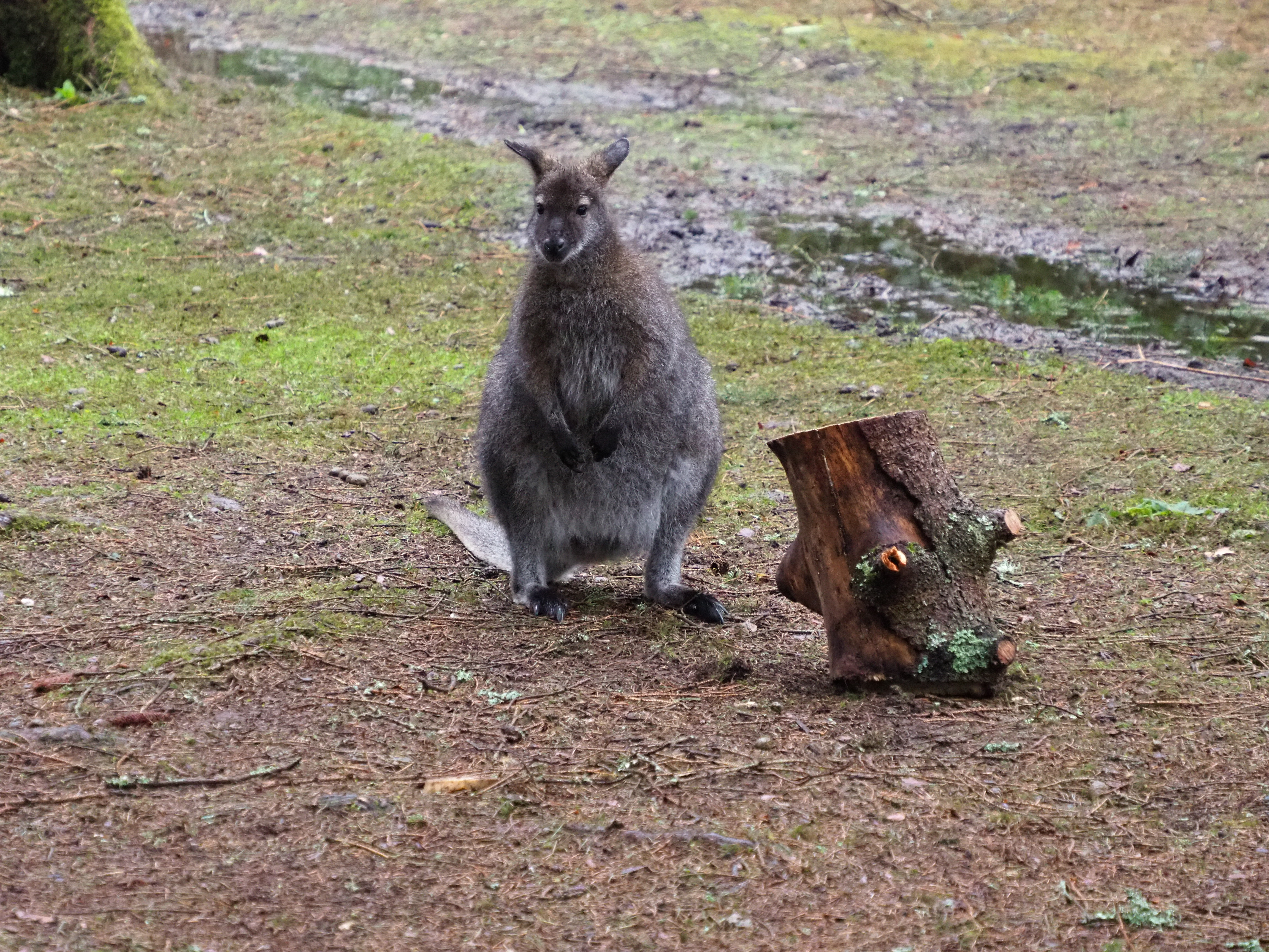 8 free roaming wallabies are free roaming (this part of the park has air lock gates so they don’t escape). They are tame enough to come fairly close, but not so close as you can pet them.