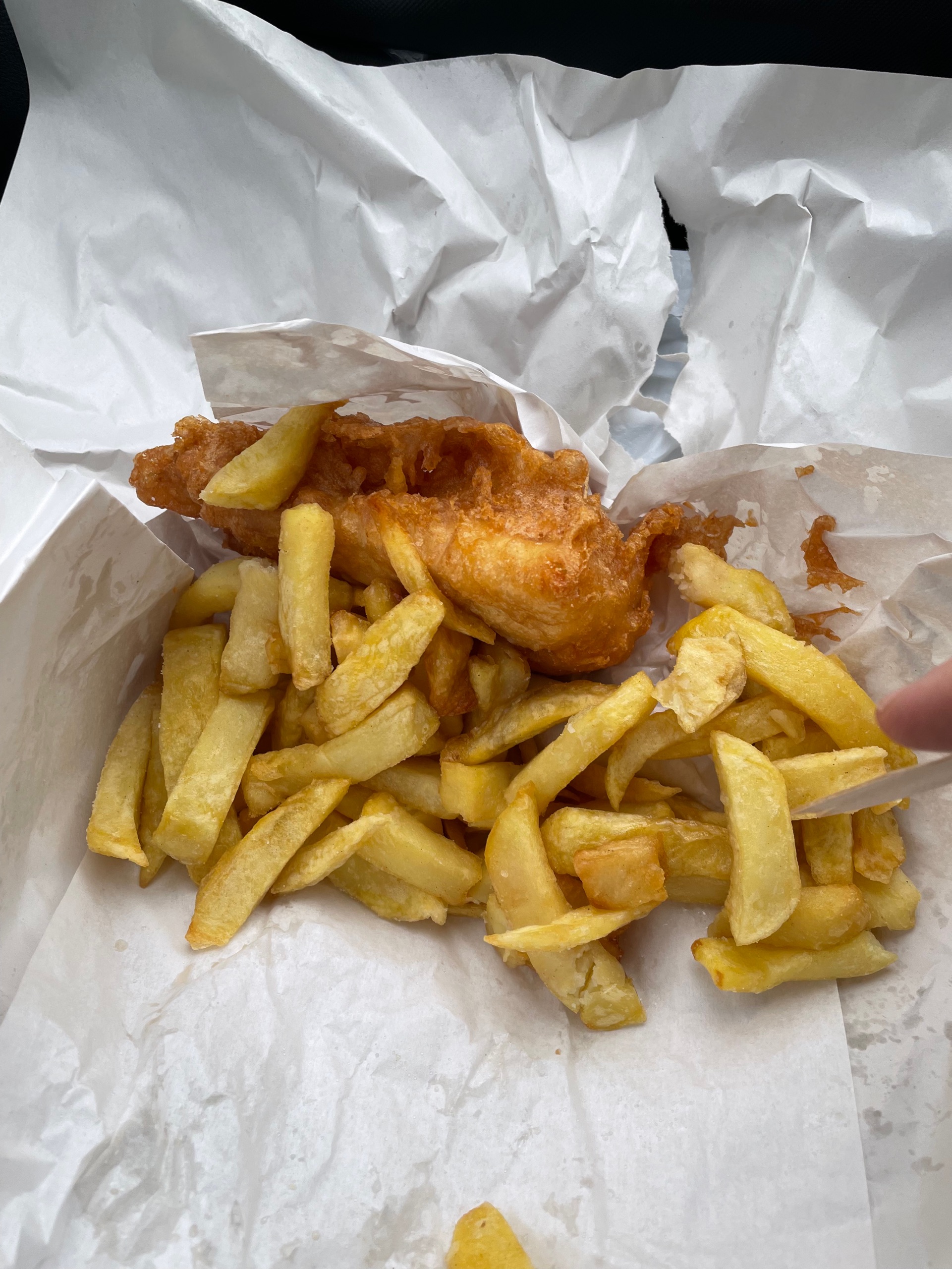The fish was so fall-apart soft that I found it almost impossible to eat with a wooden chip shop for, so I ended up with incredibly fishy greasy fingers. Worth it though.