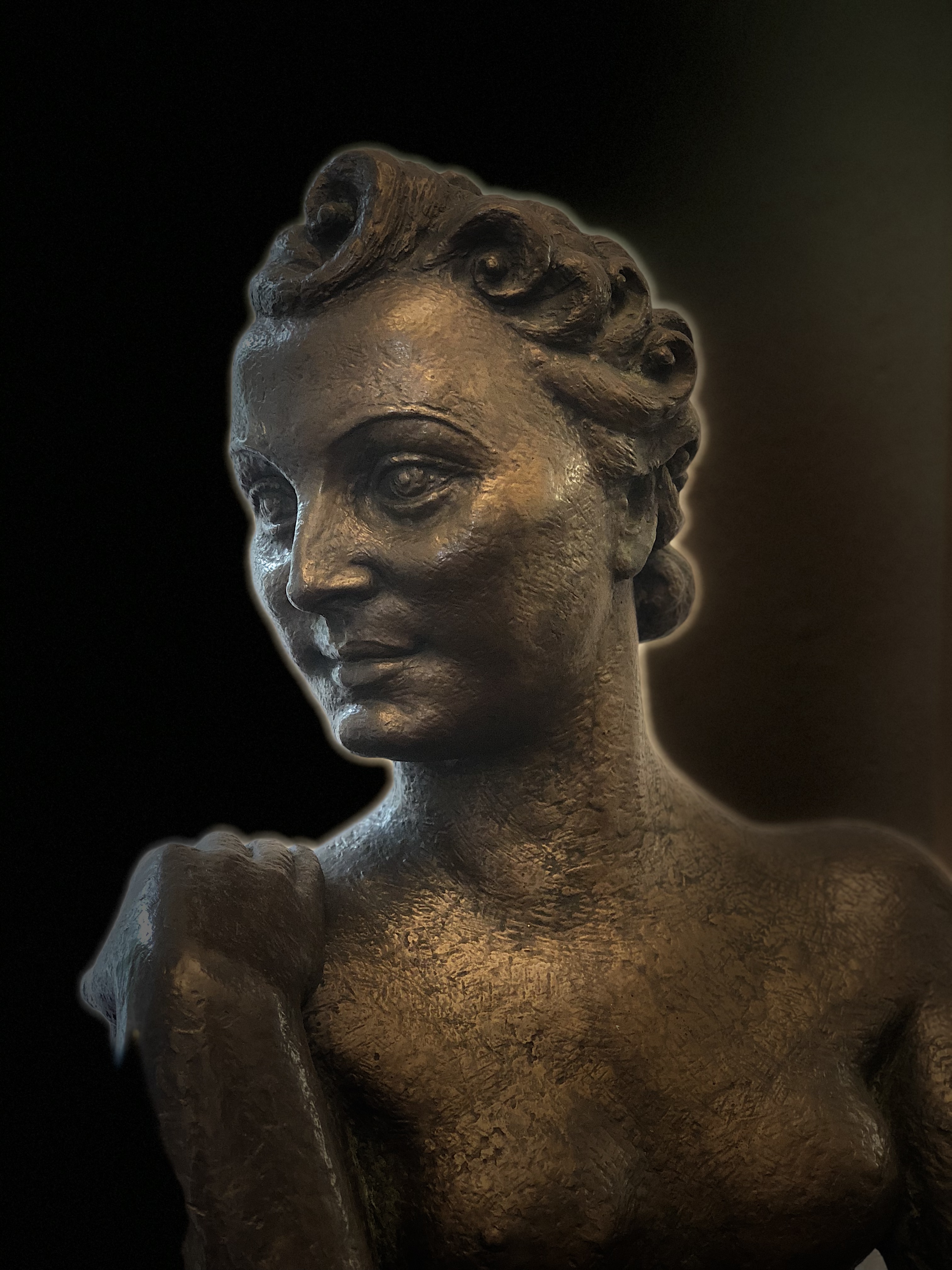 I think, maybe this is a good opportunity to use some of those iPhone X portrait modes that never seem to work. Accordingly, I get to make this bust of a woman look like she's from a Ready Brek advert.