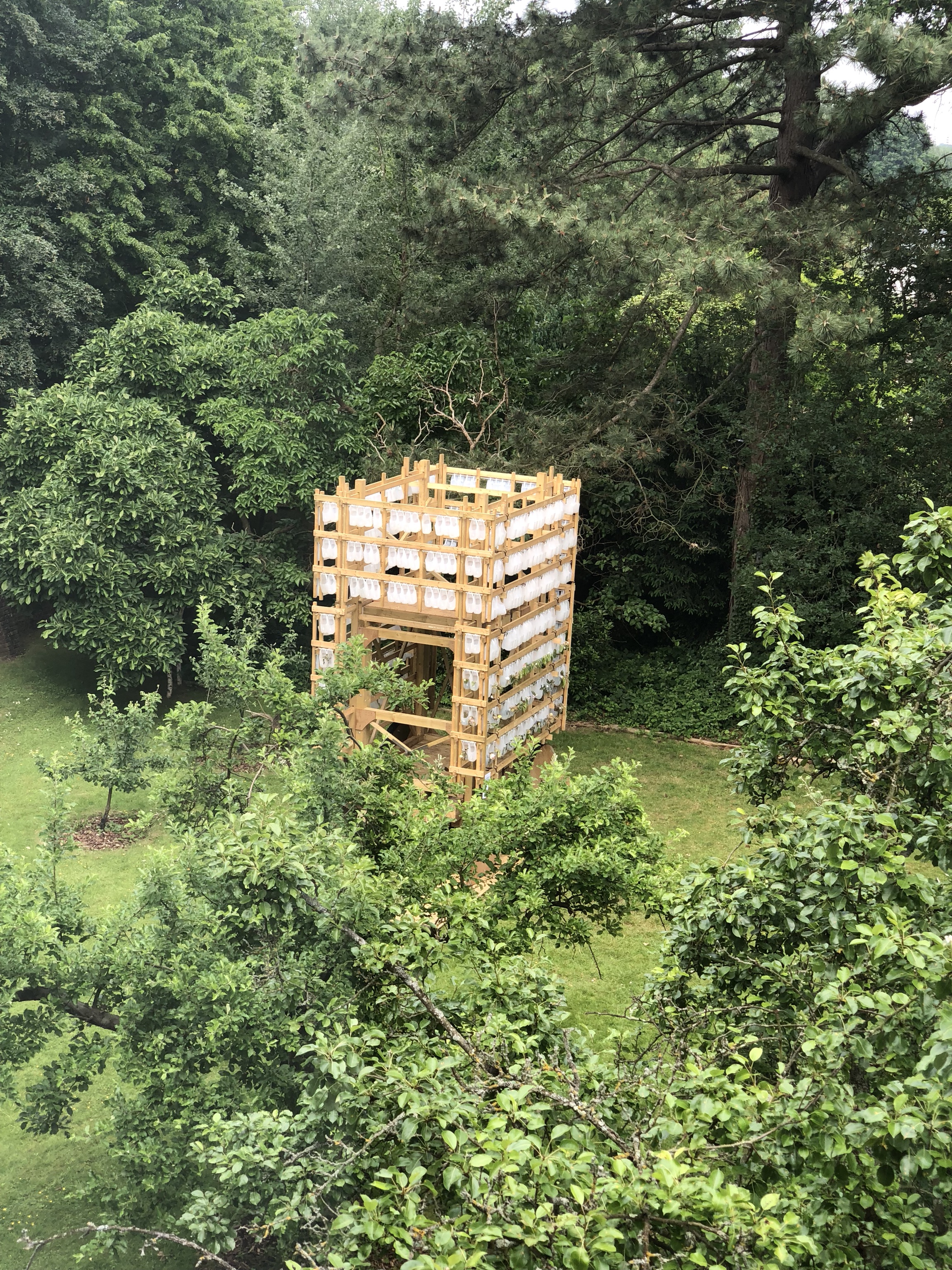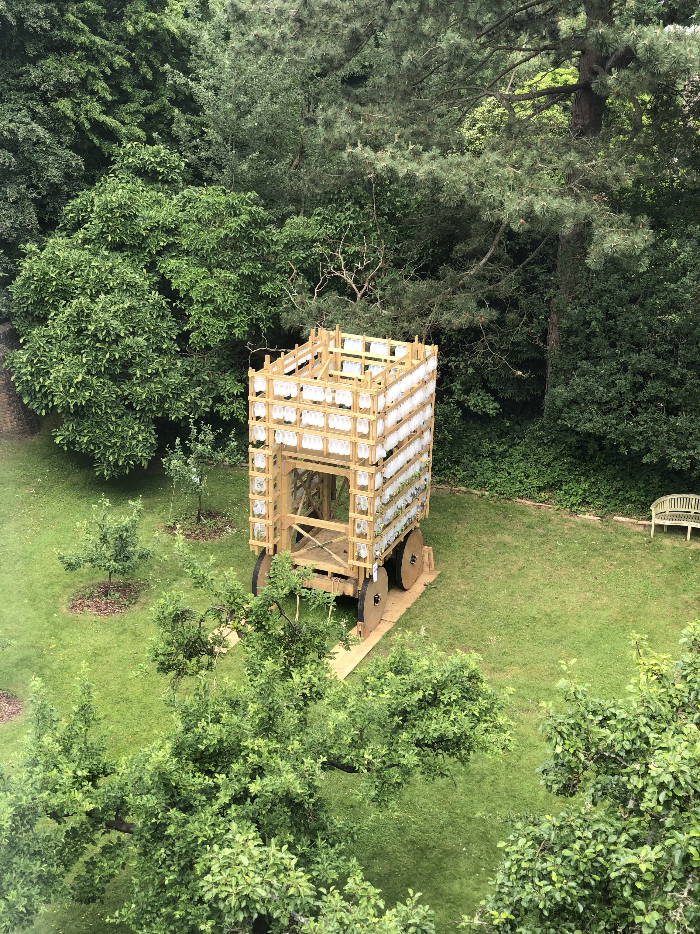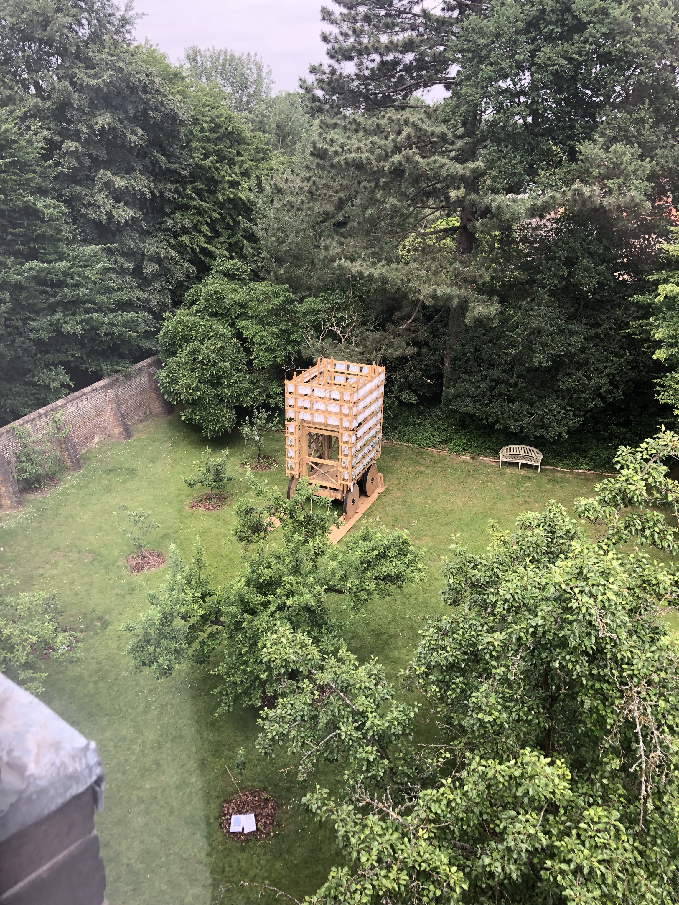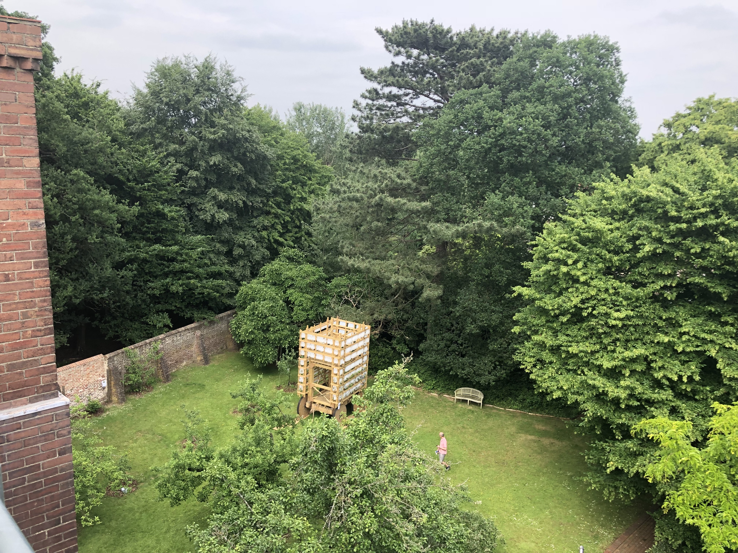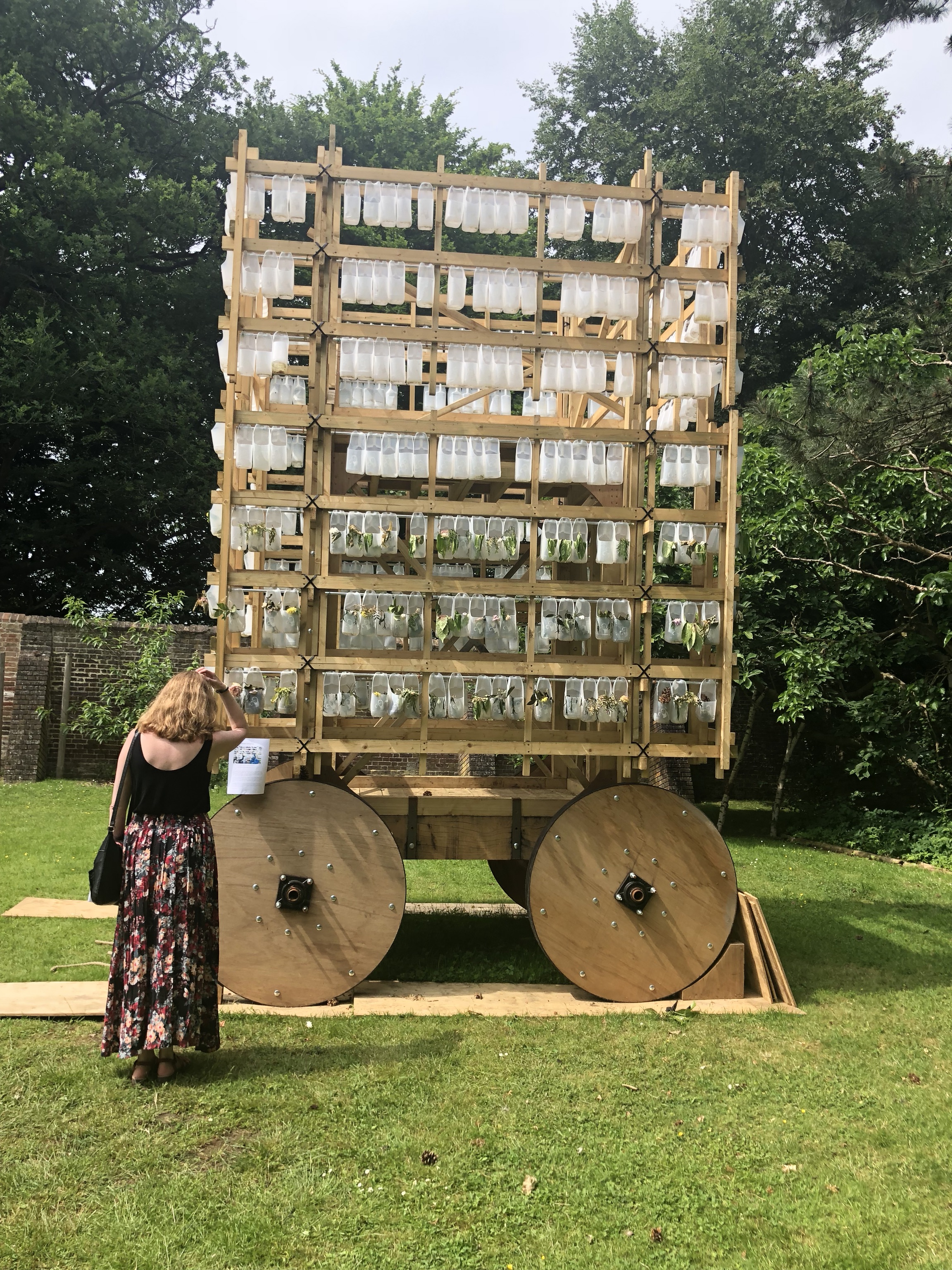 What the garden thing means in practice, here, is that we get a single page map listing 6 trees and a big Yatis. That's that thing above, with Helen scratching her head wondering "what the fuck is this?". It's a Yatis. Apparently. Neither Google nor DuckDuckGo will back me up on this but I'll persevere with the claim anyway. It's a big artistic thing made by the architectural department of Kingston college or uni, I can't recall. Didn't take much notice, did I? Apart from looking at it from numerous angles throughout our visit.