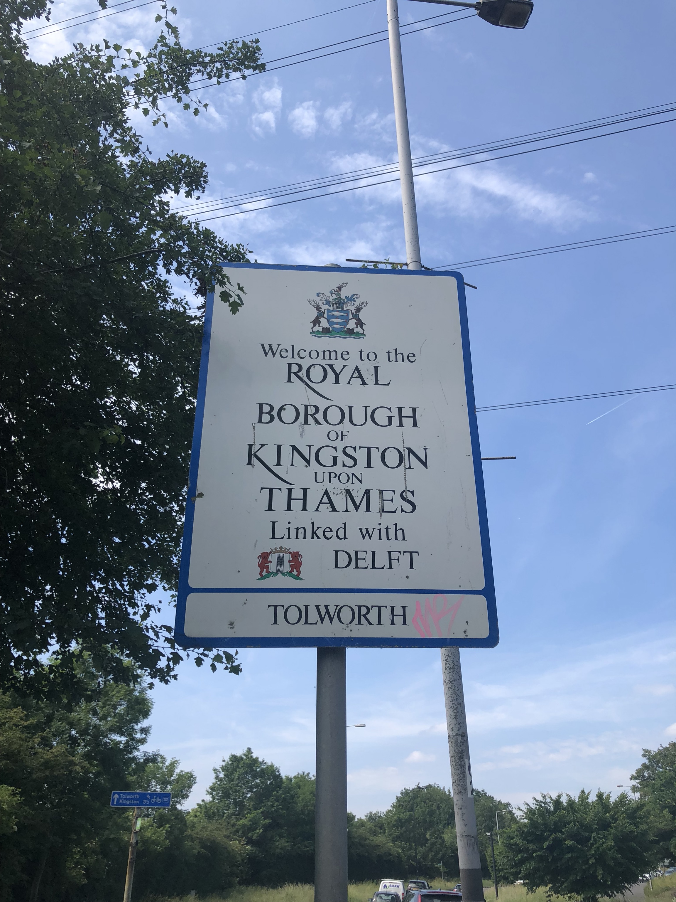 Tolworth station is the wrong place to get off. It's OK for the garden centre, but the welcome sign is about half or three quarters of a mile further along, just walking next to a very busy A240 with nothing else nice to see. It was hot and I was still feeling like shit, but hey, here's a welcome, I always like welcomes.