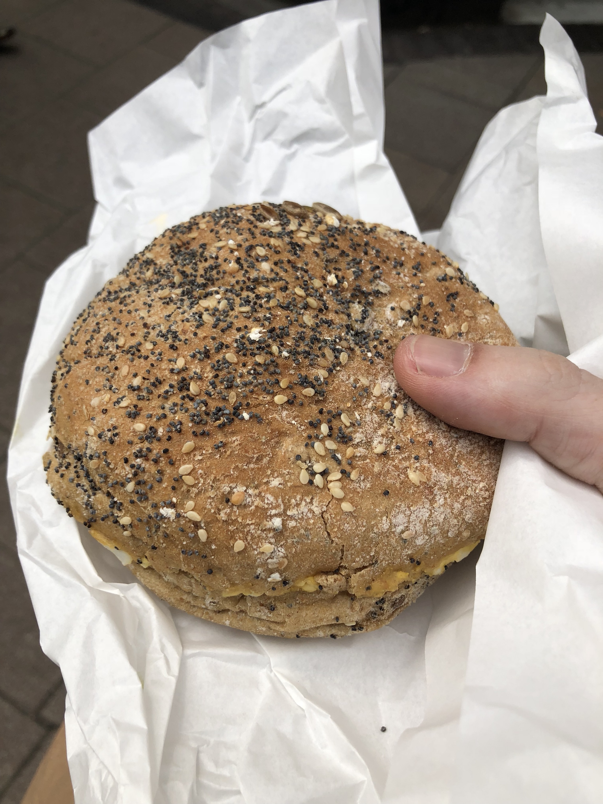 So we've reached 2pm and all I've eaten is a banana, the calories from which I more than burnt while out doing parkrun. Helen's had nothing. Accordingly we are both absolutely starving, so lack-of-picnic be damned, let's go to The Press Room and buy some pastel de nata plus an egg mayo with avocado bun.