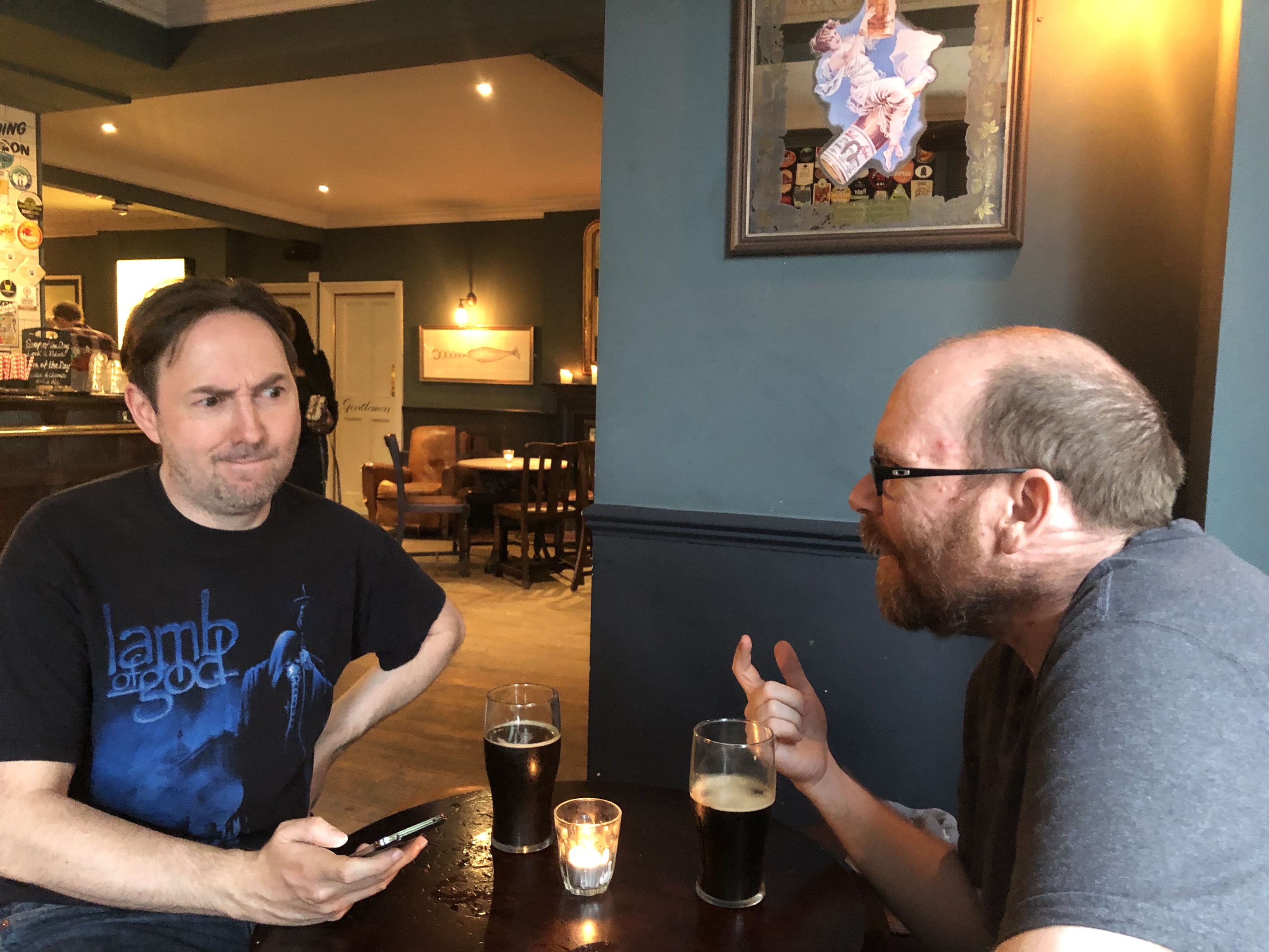 Now, pub time. An even more difficult task would be finding somewhere to drink we weren't already familiar with, so we didn't even try, instead going to the Albion to have a drink with my ex-flatmate Wooj. They do good beer at the Albion.