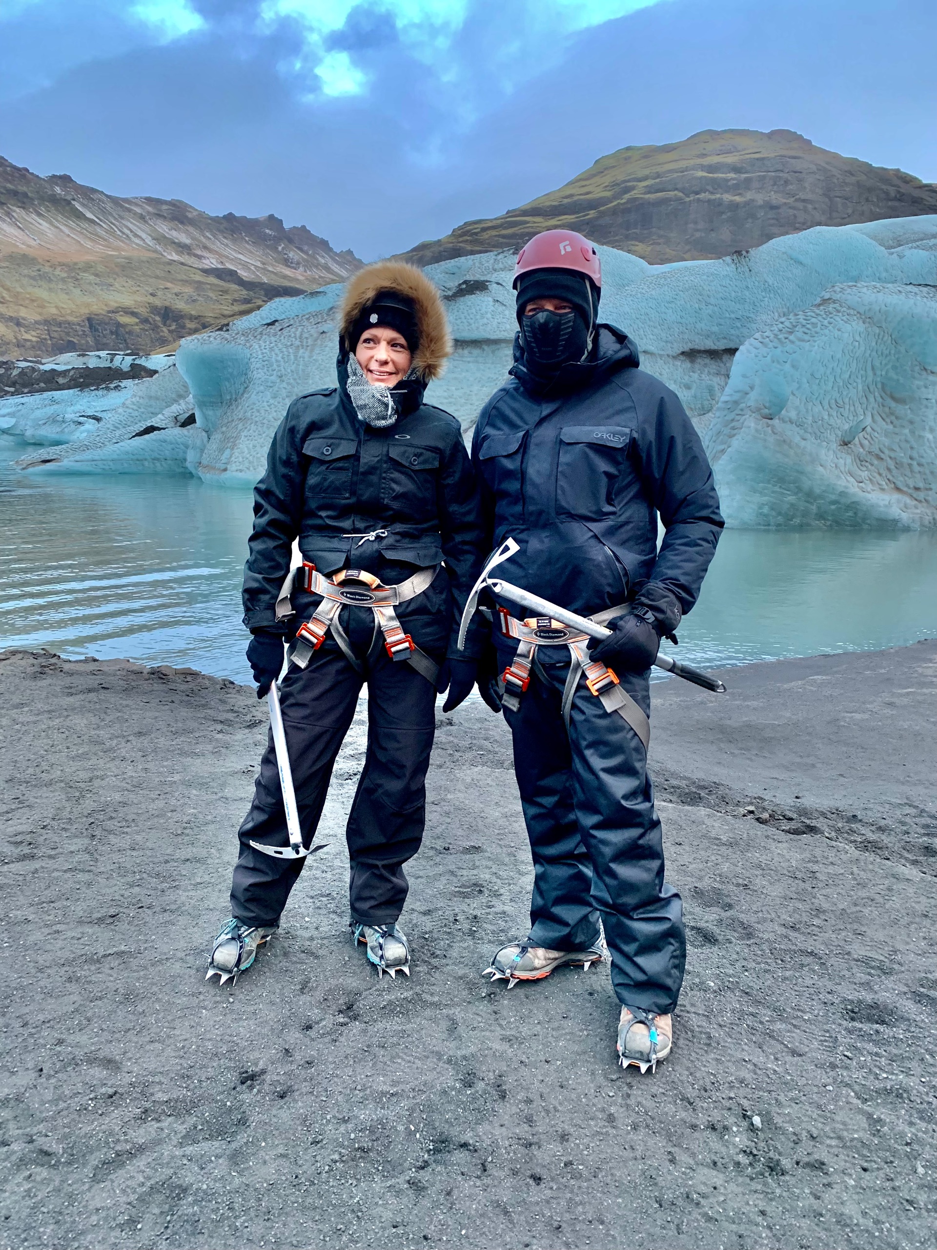 - *Optional Glacier Hiking on Sólheimajökull (from Skogar) - (From $114.00) Learn how to walk safely on the ice of the Sólheimajökull glacier, explore the ice formations and crevices. The ice flows from the larger Myrdalsjokull glacier to Sólheimajökull, an outlet glacier. The icy landscape with bright, blue caves and ridges is a unique hiking experience, one that is rapidly changing due to climate change.