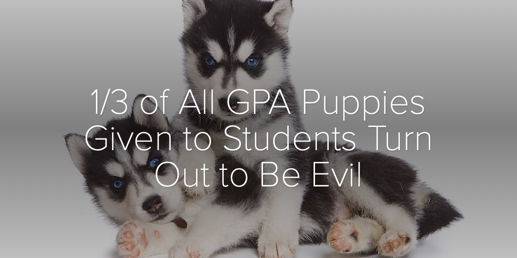 In what can only be described as dichotomy in motion, at least a third of all the puppies presented to Florida Tech students have been discovered to be evil.