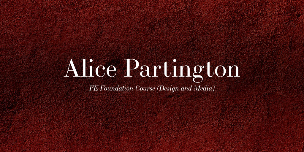 I confirm that the published work for the Unit 1 assessment of my UAL (Awarding Body) Foundation Diploma is all my own work and does not include any work completed by anyone other than myself (except where credited) and sources have been appropriately referenced. (Alice Partington, Date 29/10/22)