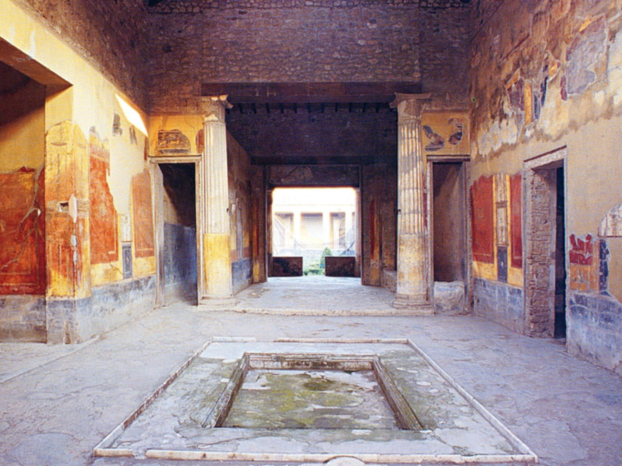 Attorno all'atrium sono dislocate le altre stanze, ognuna delle quali ha una sua funzione: il tablinum era la stanza principale di soggiorno utilizzata come sala di rappresentanza; i cubicula servivano solo come camere da letto; le alae erano i locali di servizio. Attraversando un corridoio (andron), si accede alla seconda parte della domus, il peristylium, un giardinetto circondato da portici e decorato con colonne, piante, statue e fontane. Intorno al peristylium si aprono altri ambienti: il triclinium (la sala da pranzo), altri cubicula, la cucina, il bagno e latrine private, gli oeci (sale per i ricevimenti)